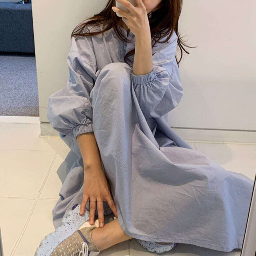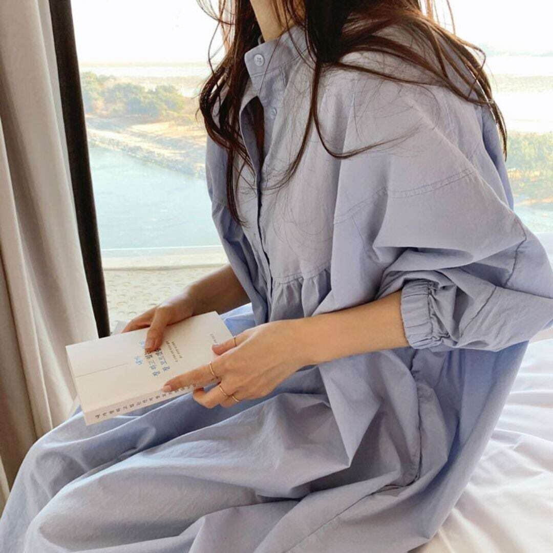オーバーサイズライトブルーシャツワンピース