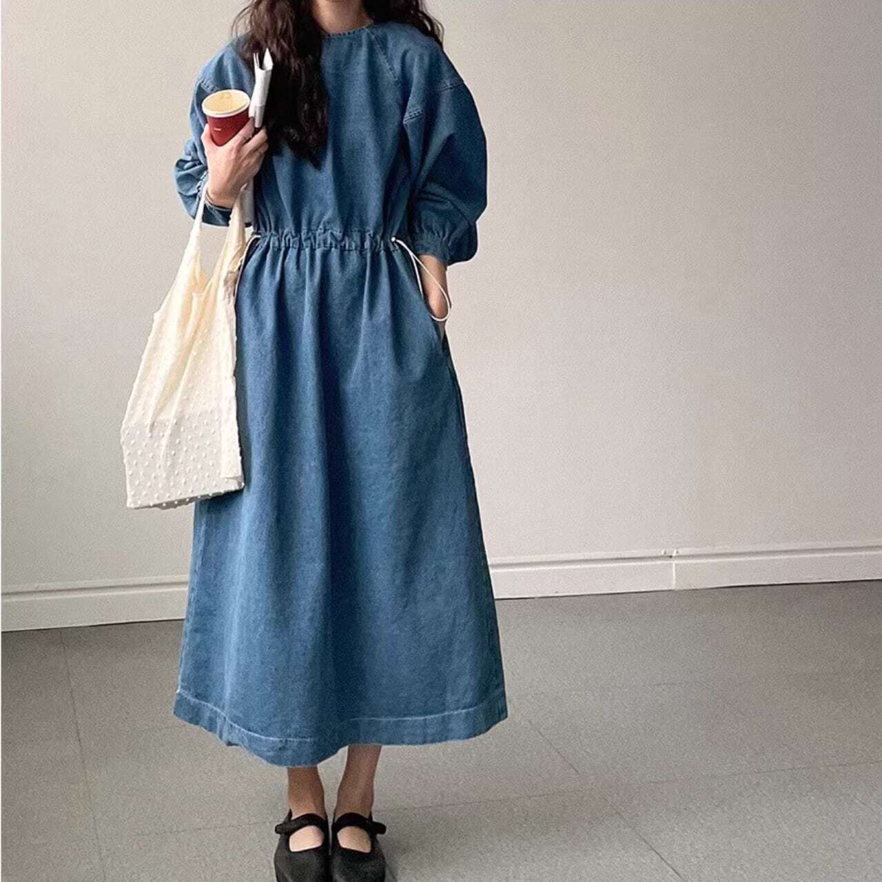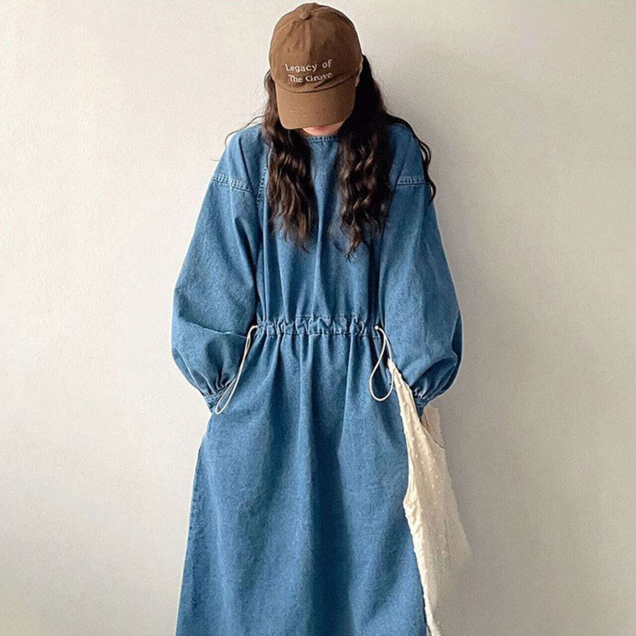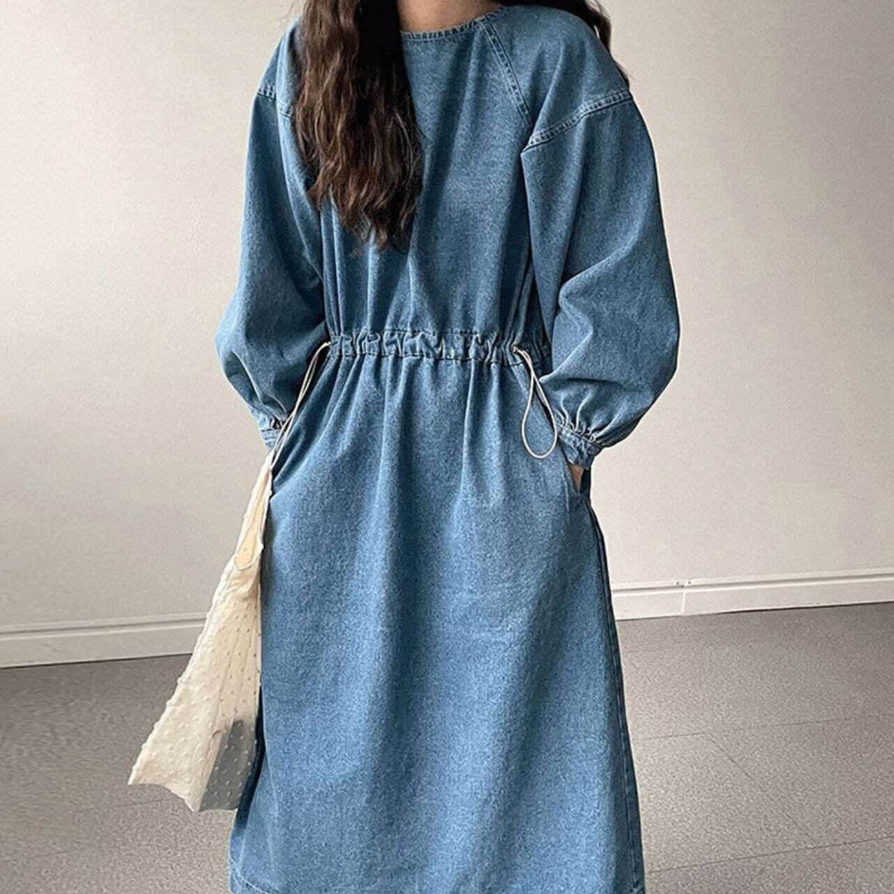デニムボリューム袖ワンピース