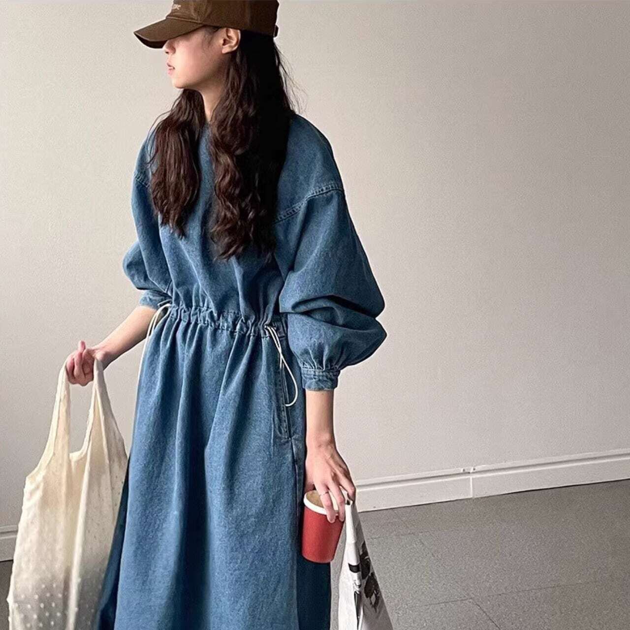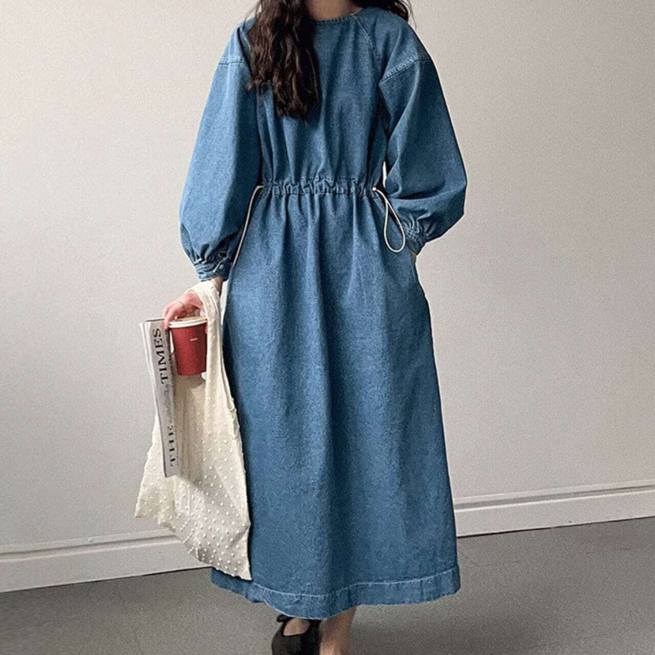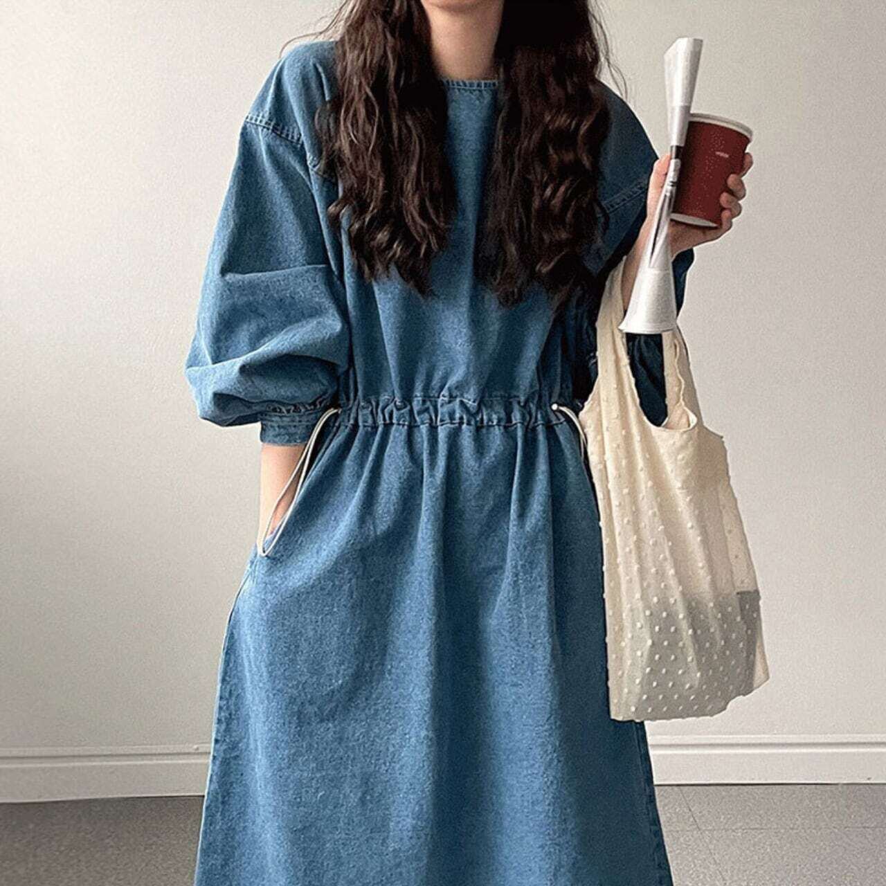 デニムボリューム袖ワンピース