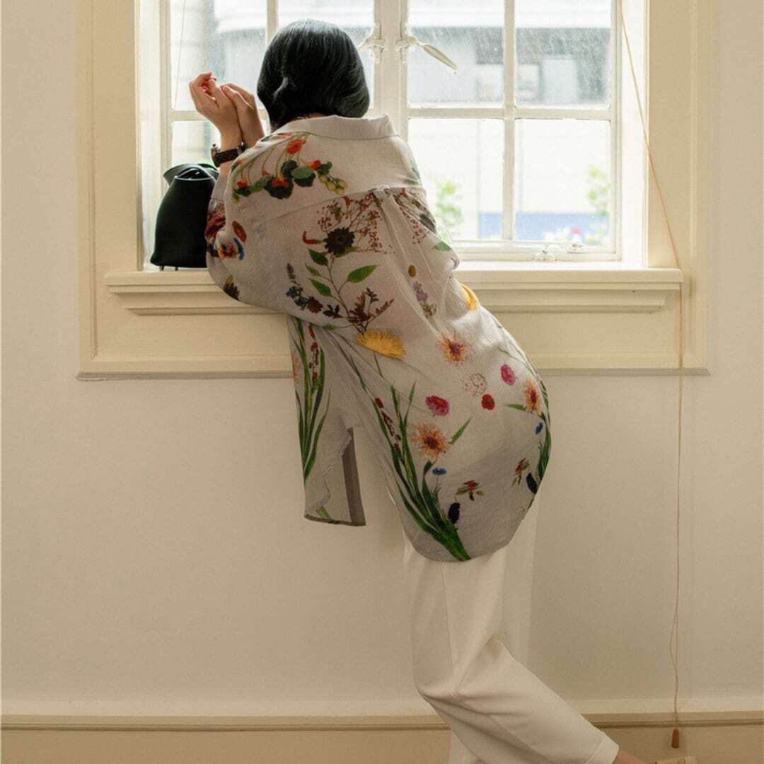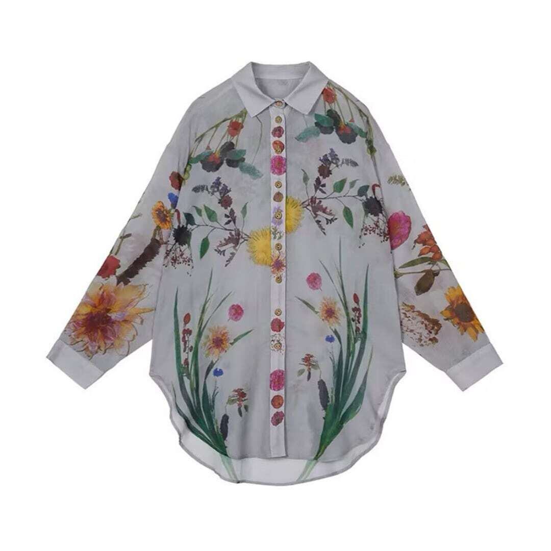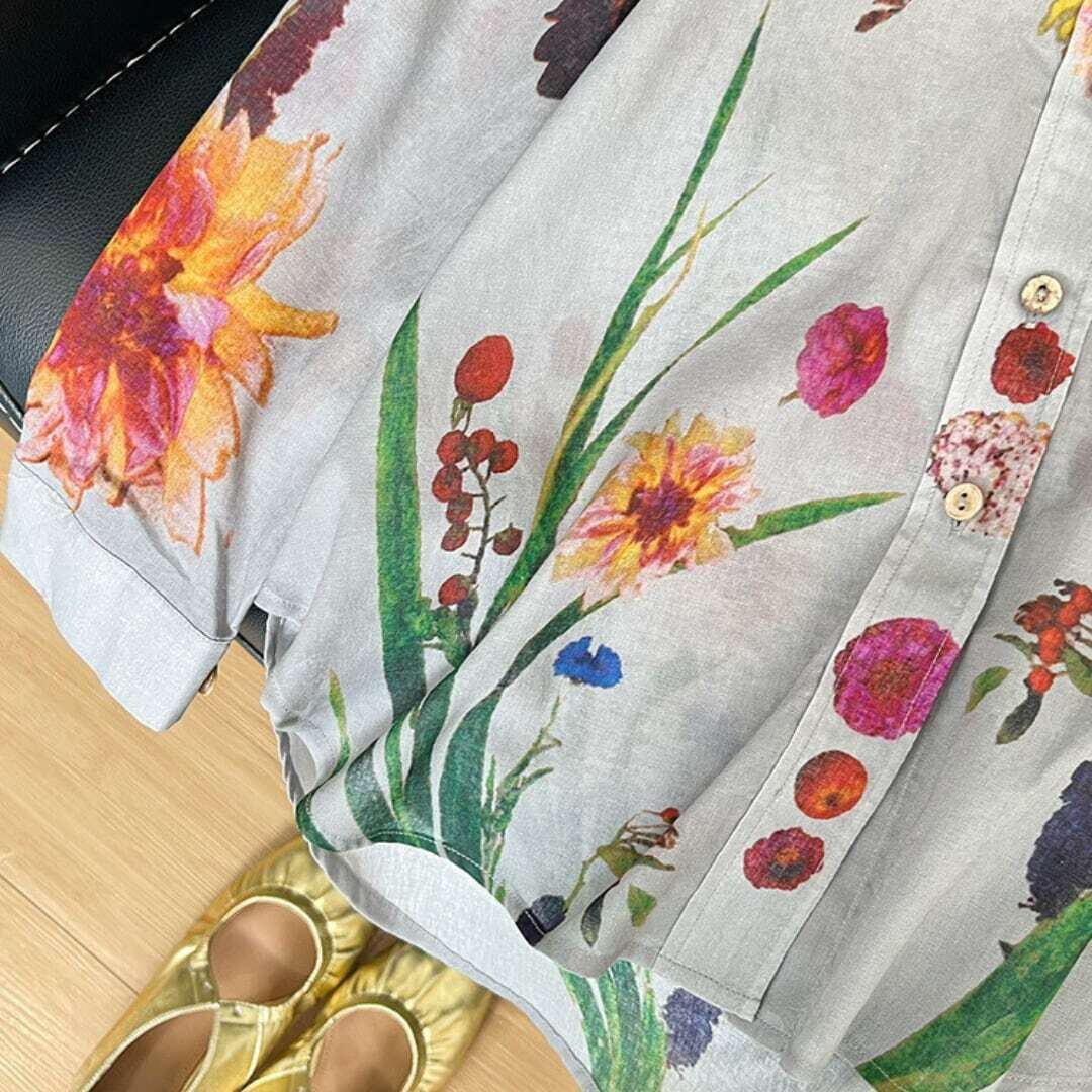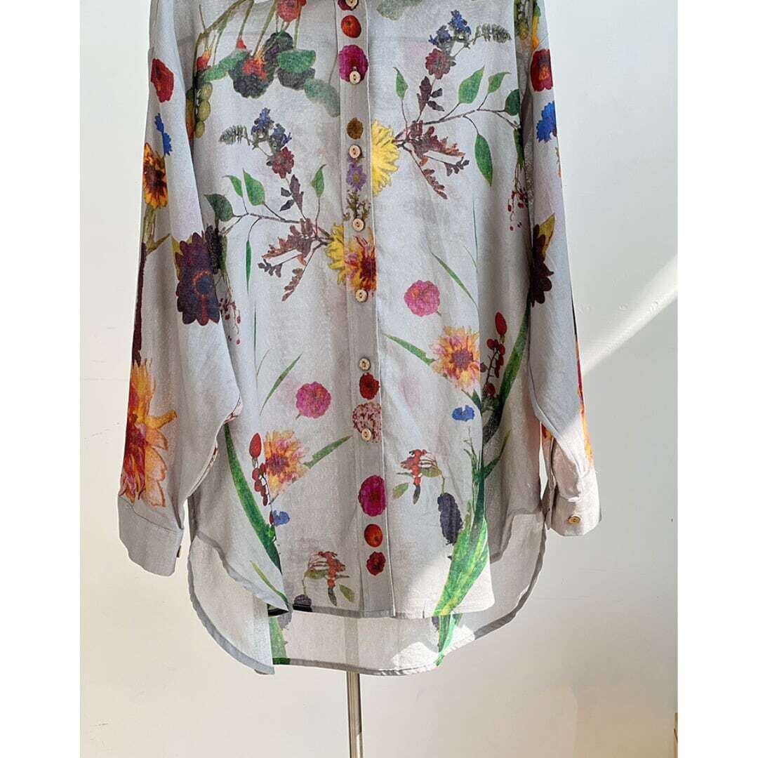 ヴィンテージボタニカルアートプリントシャツ
