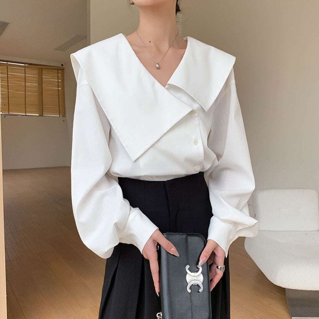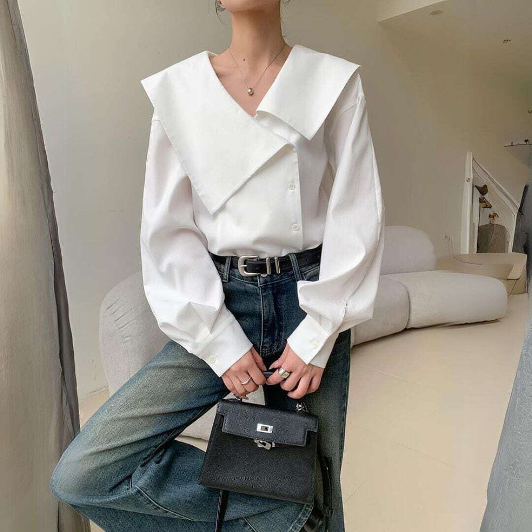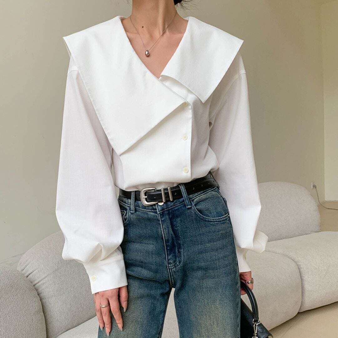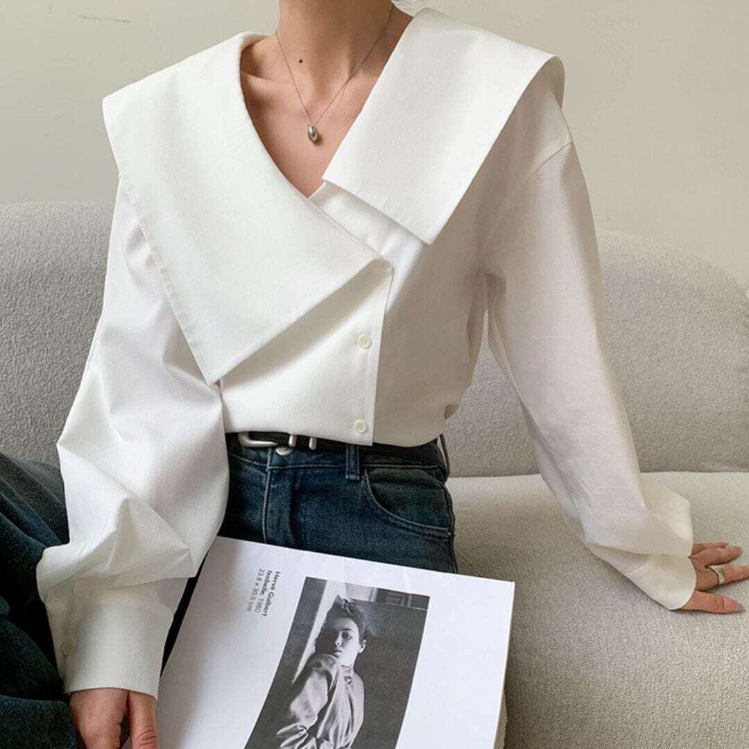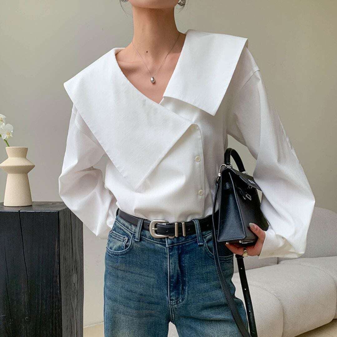 アシメントリービックカラーホワイトシャツ