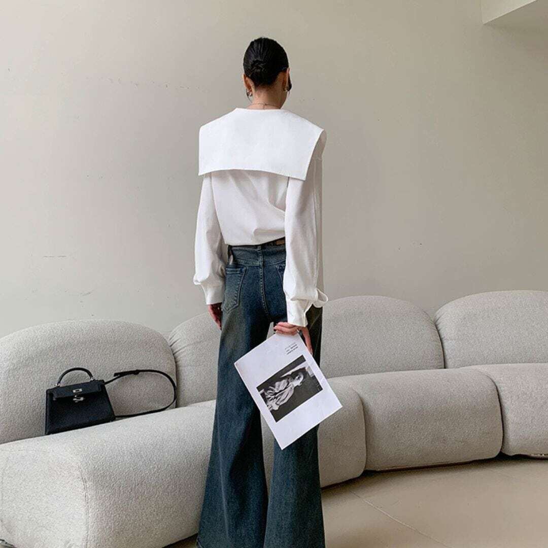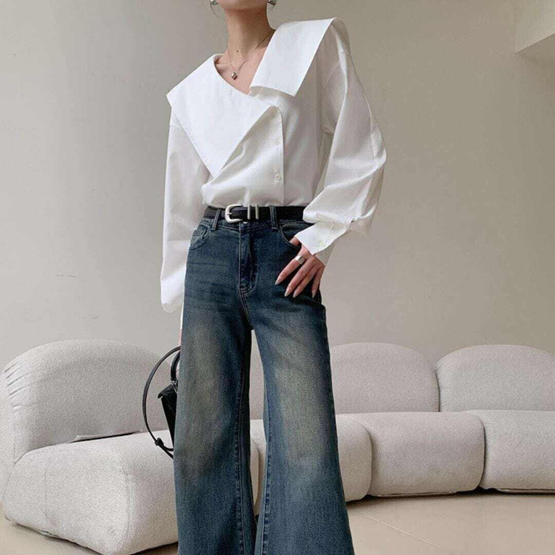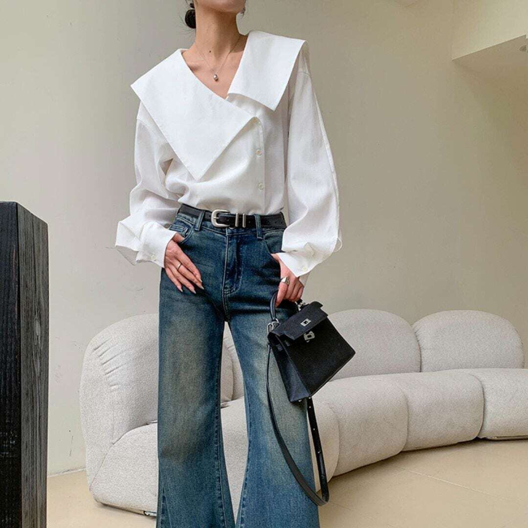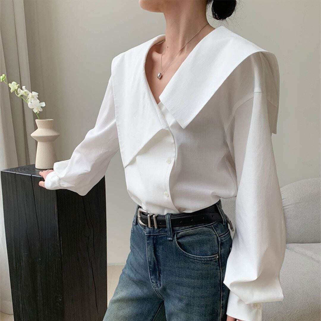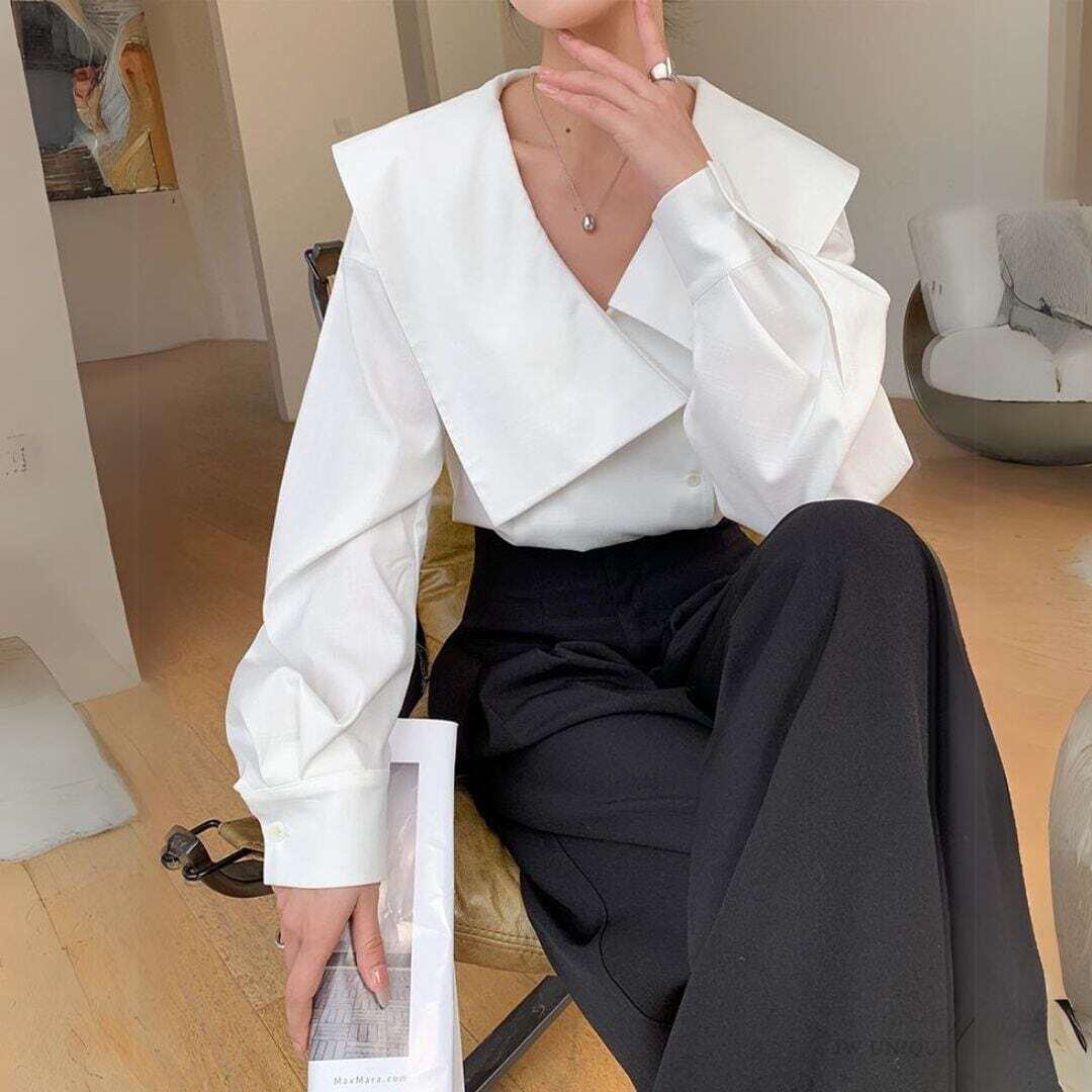 アシメントリービックカラーホワイトシャツ