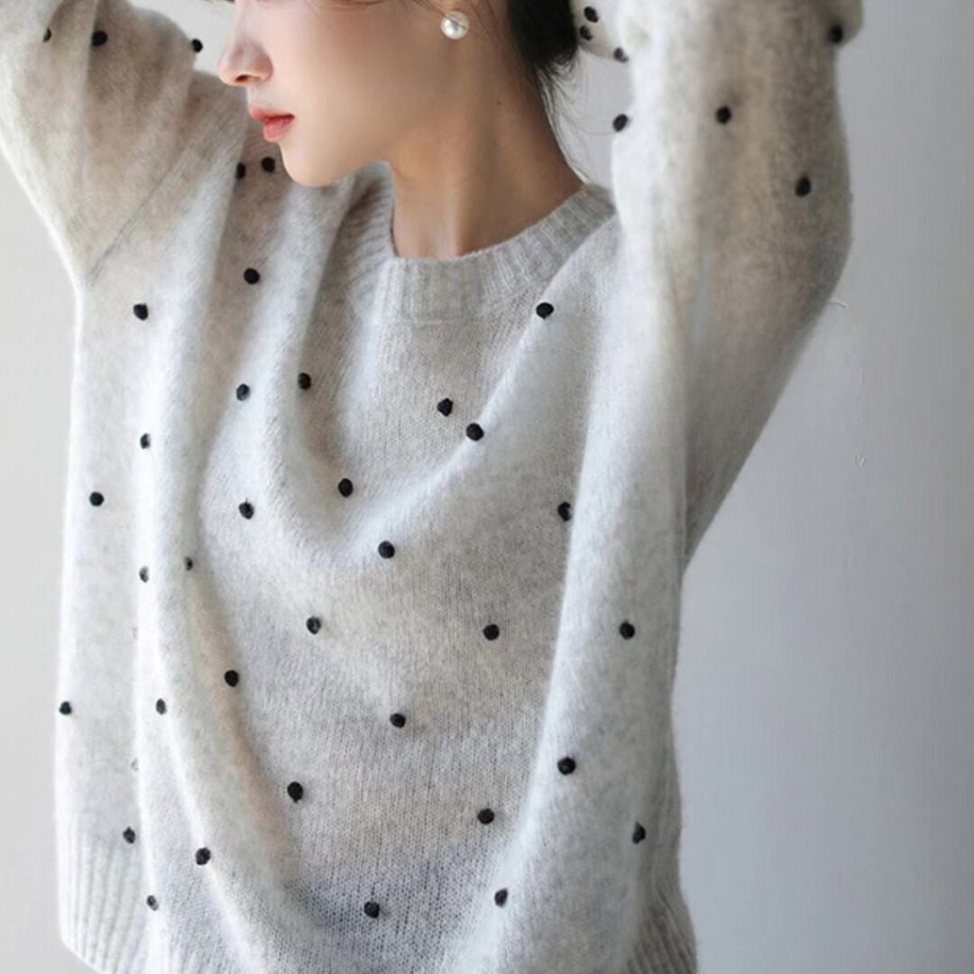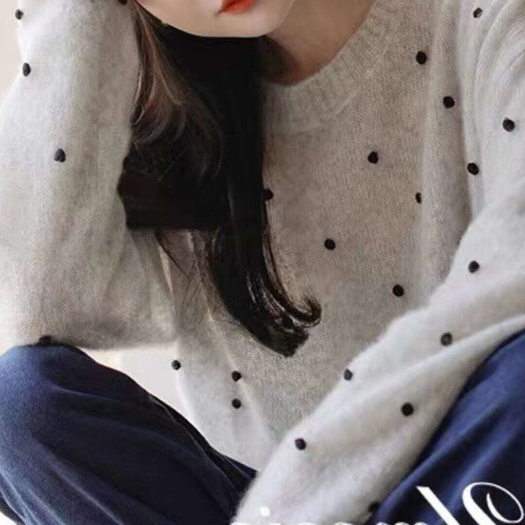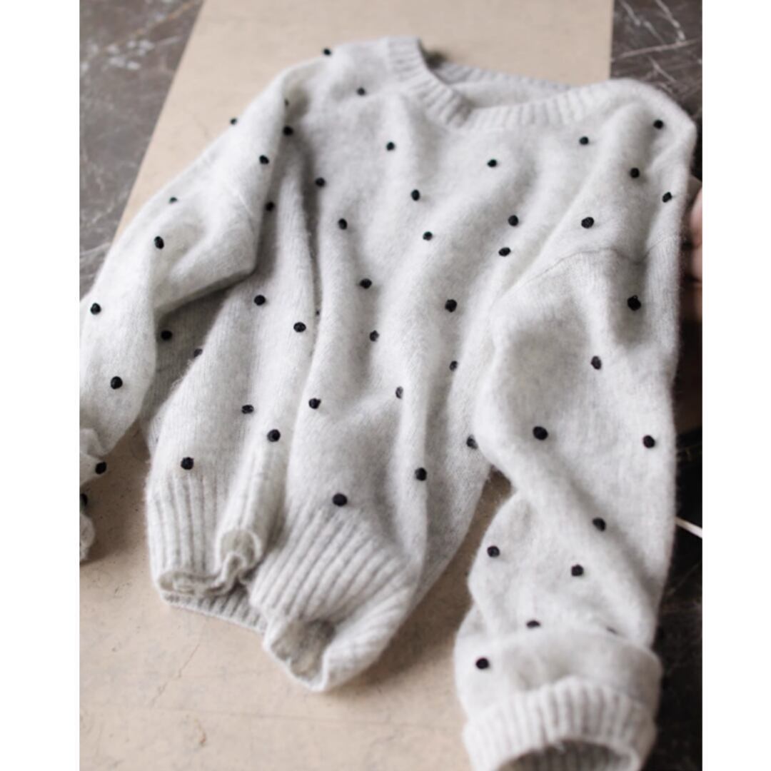 ブラックドットニットトップス
