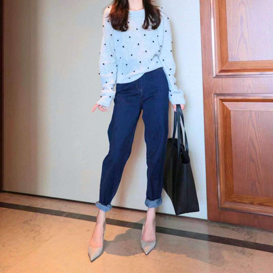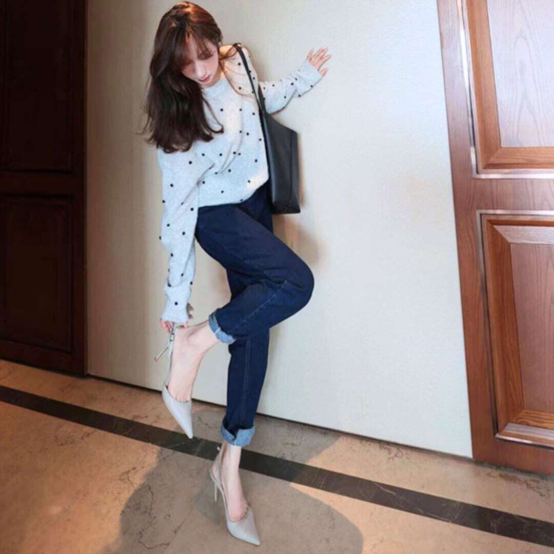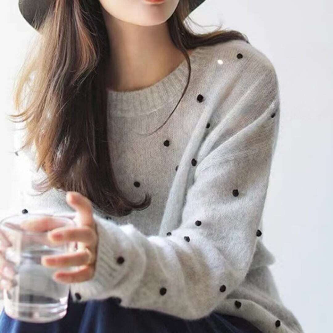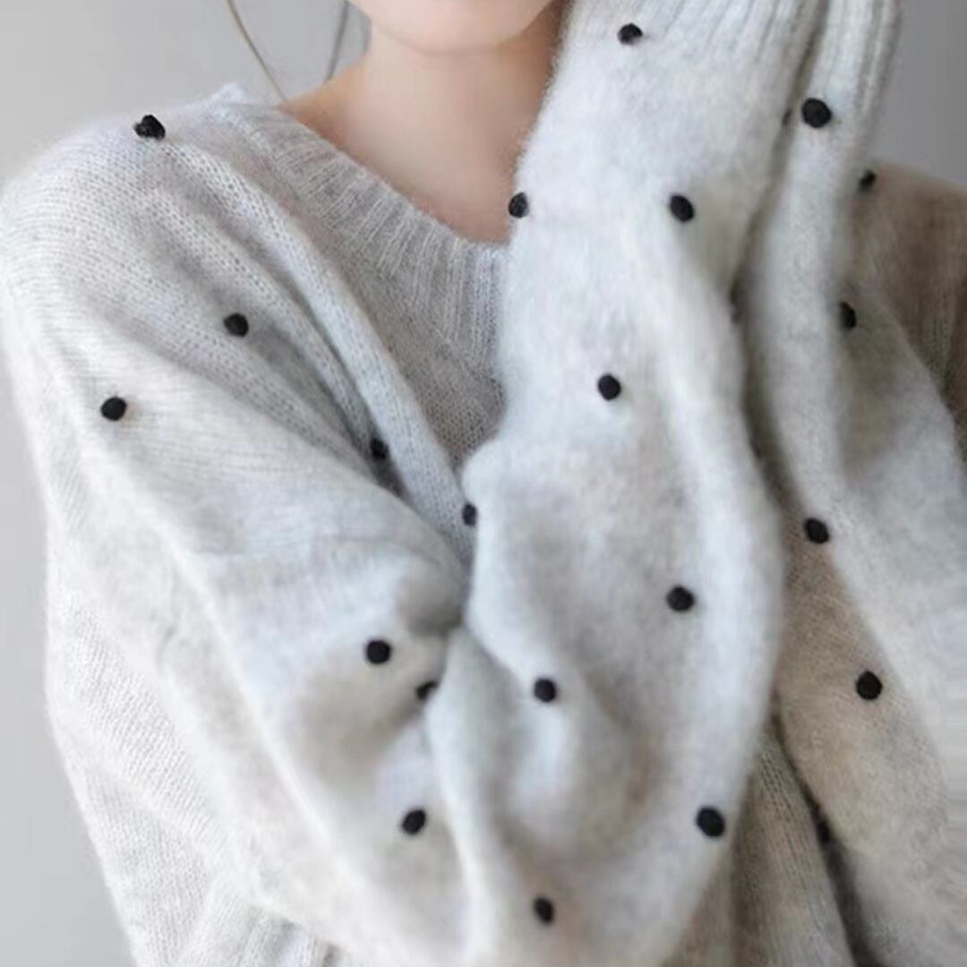 ブラックドットニットトップス