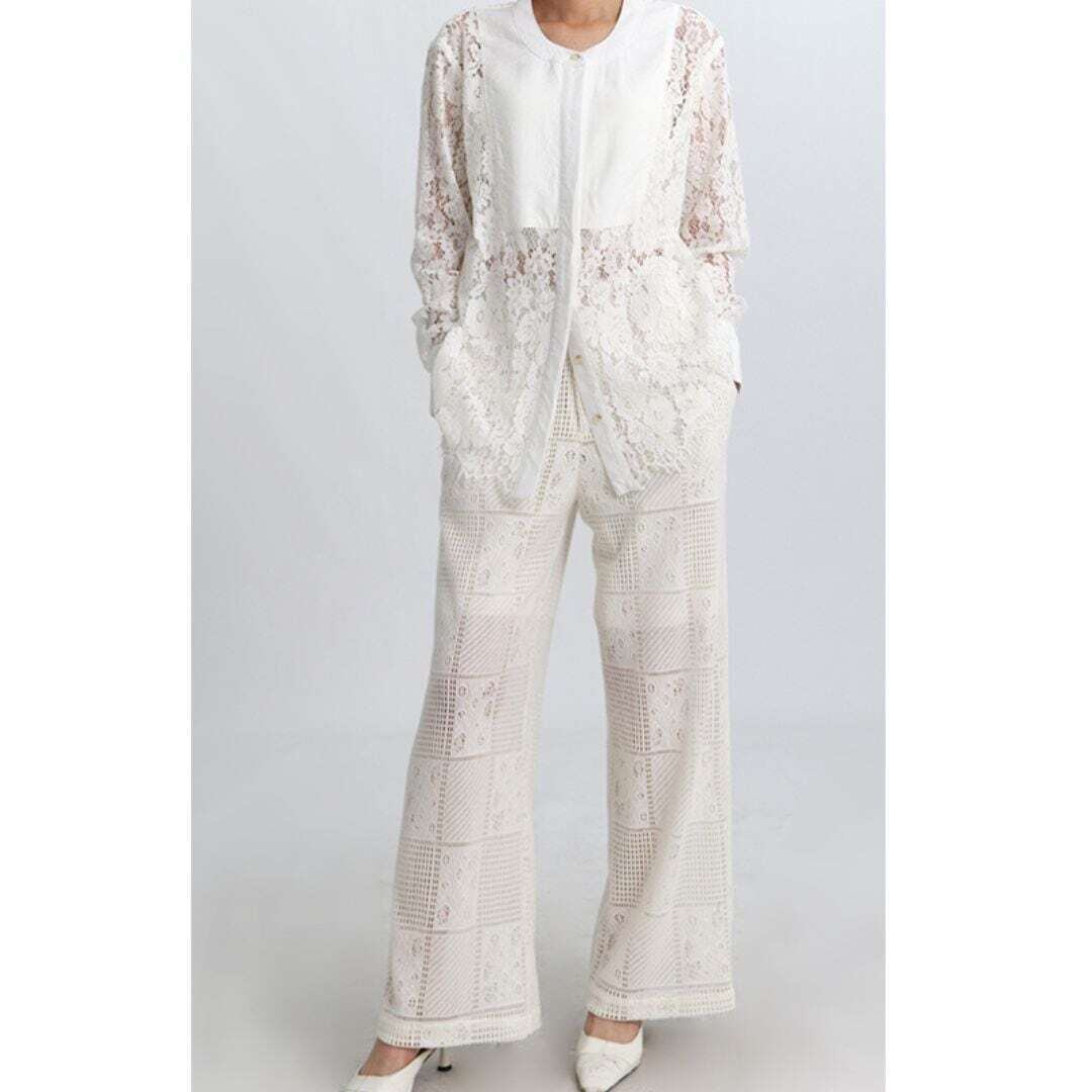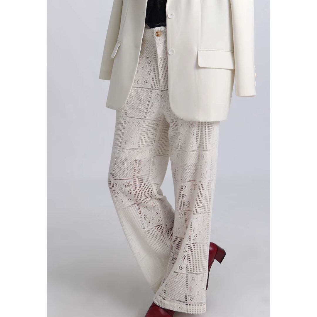 パッチワークレースワイドパンツ