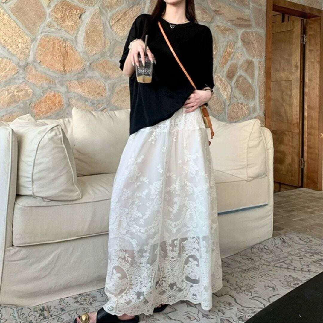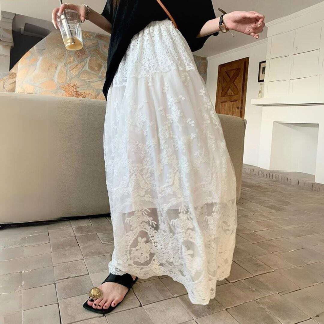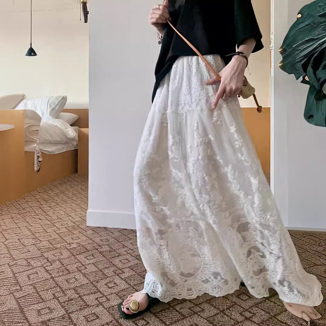 クラシカルデザイン総レースロングスカート