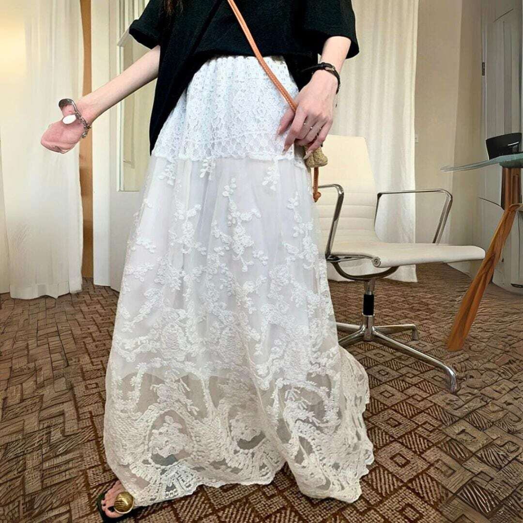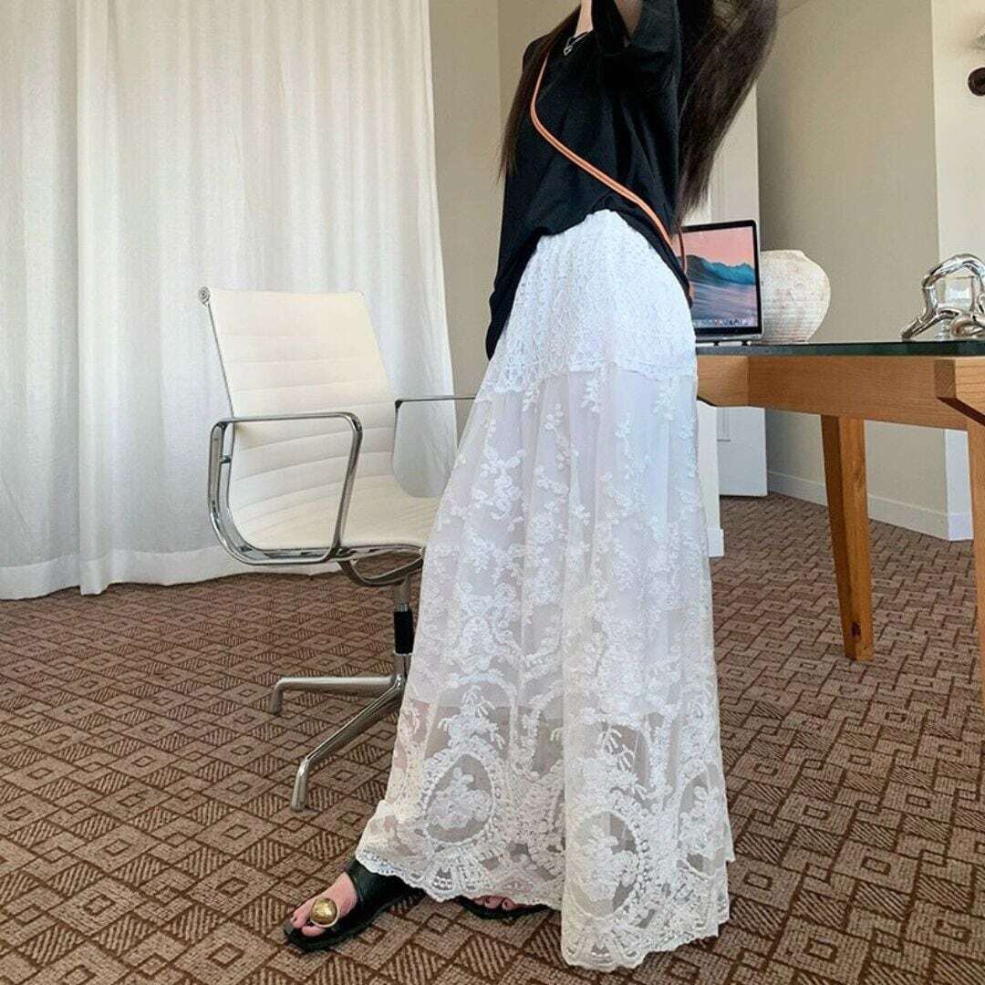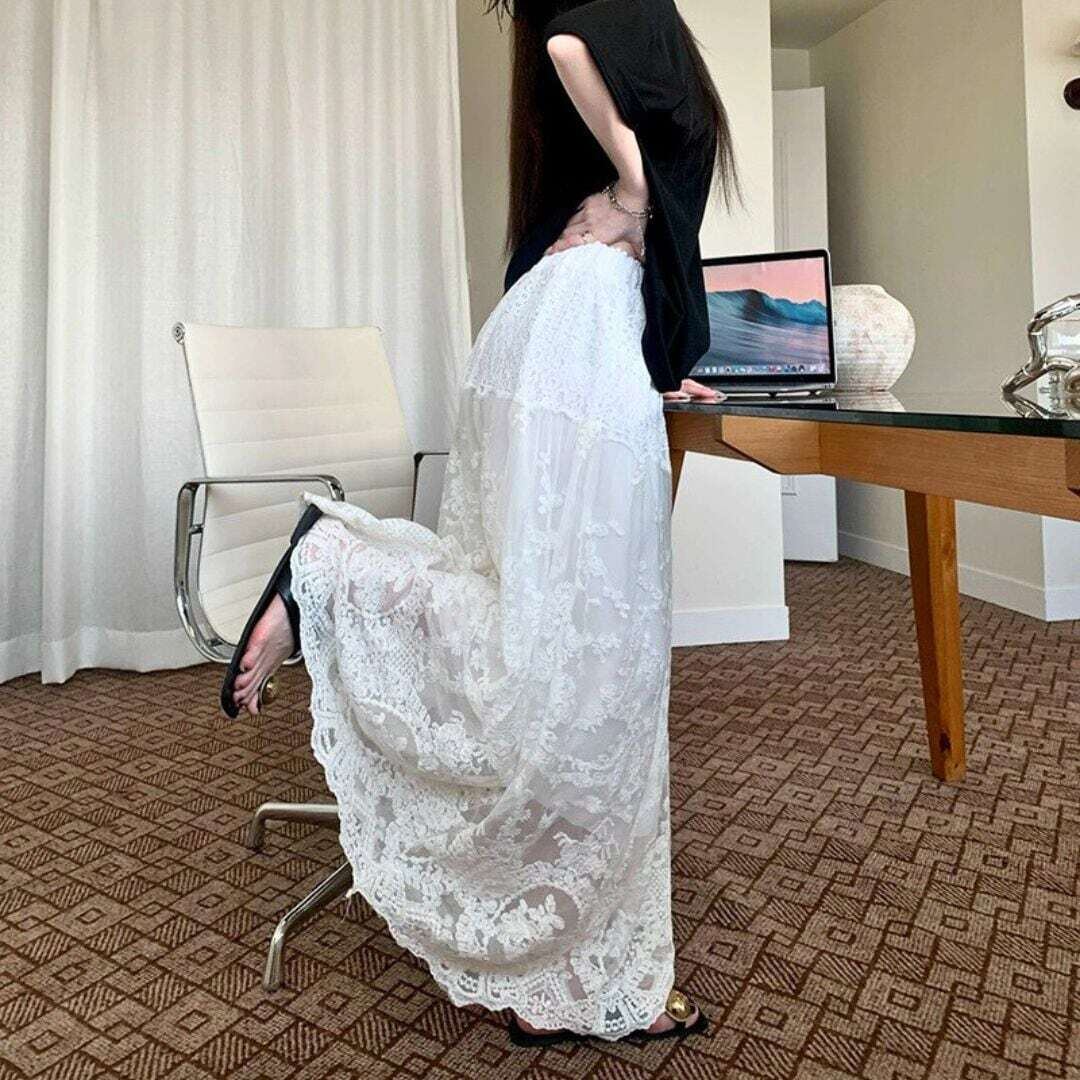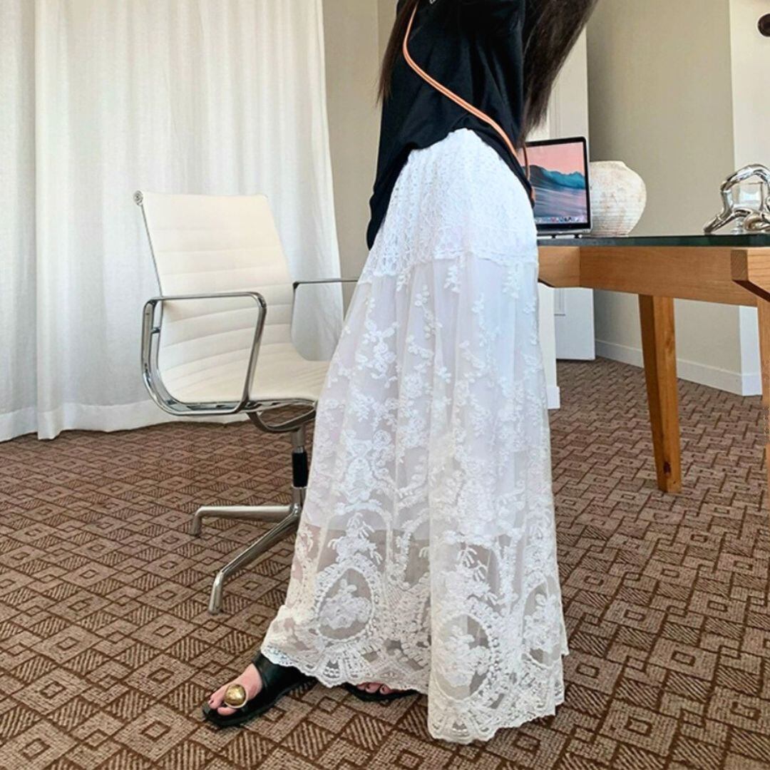 クラシカルデザイン総レースロングスカート