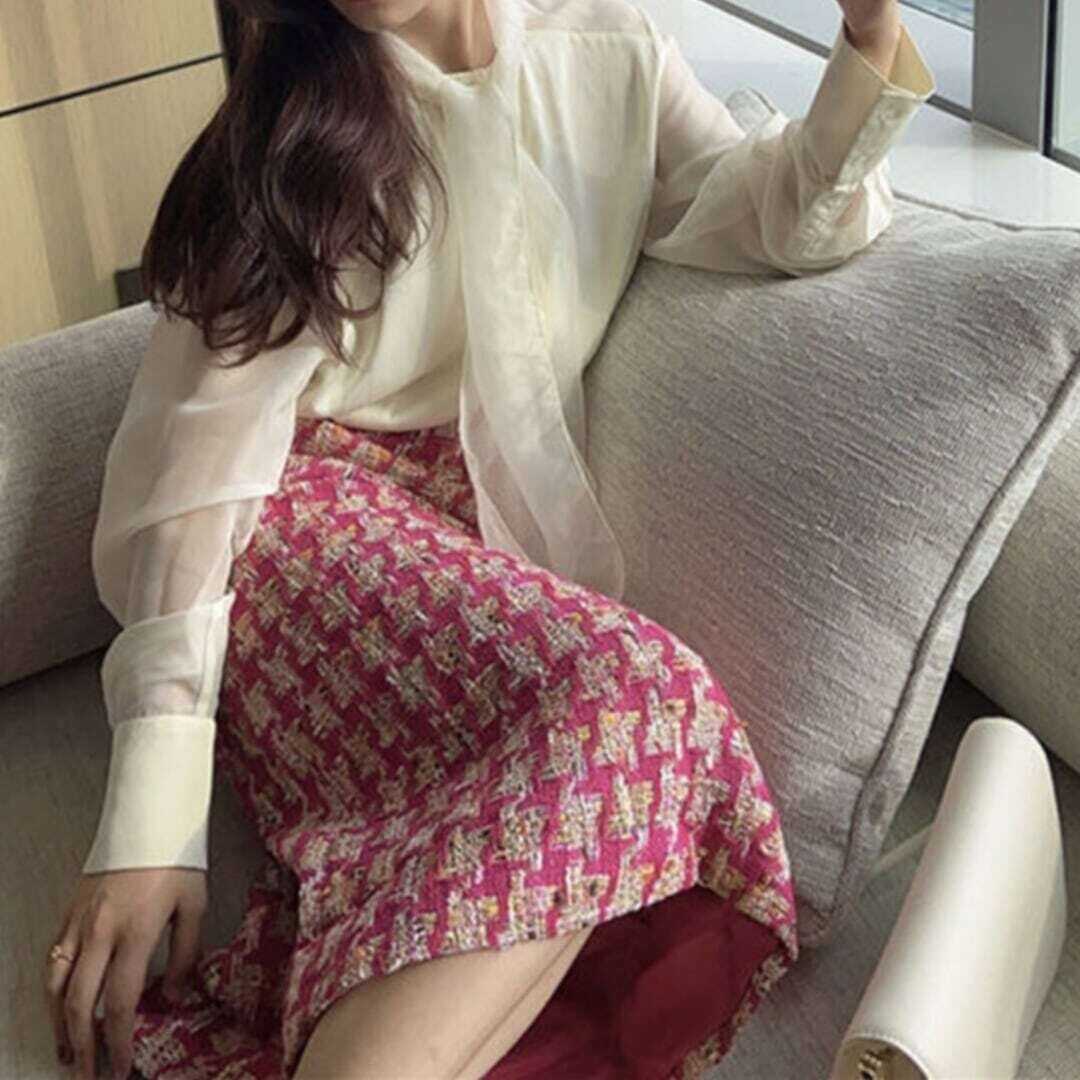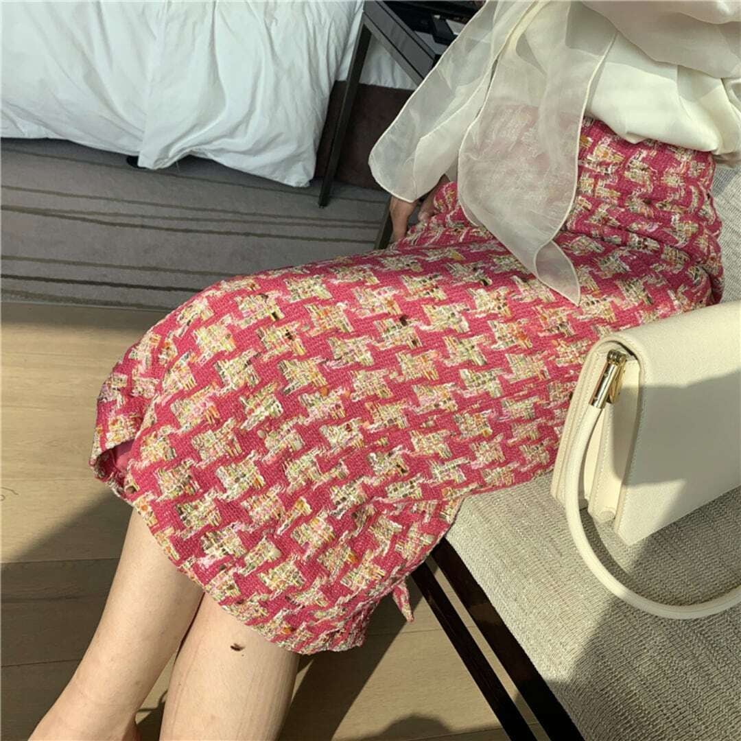 ピンクツイードミモレタイトスカート