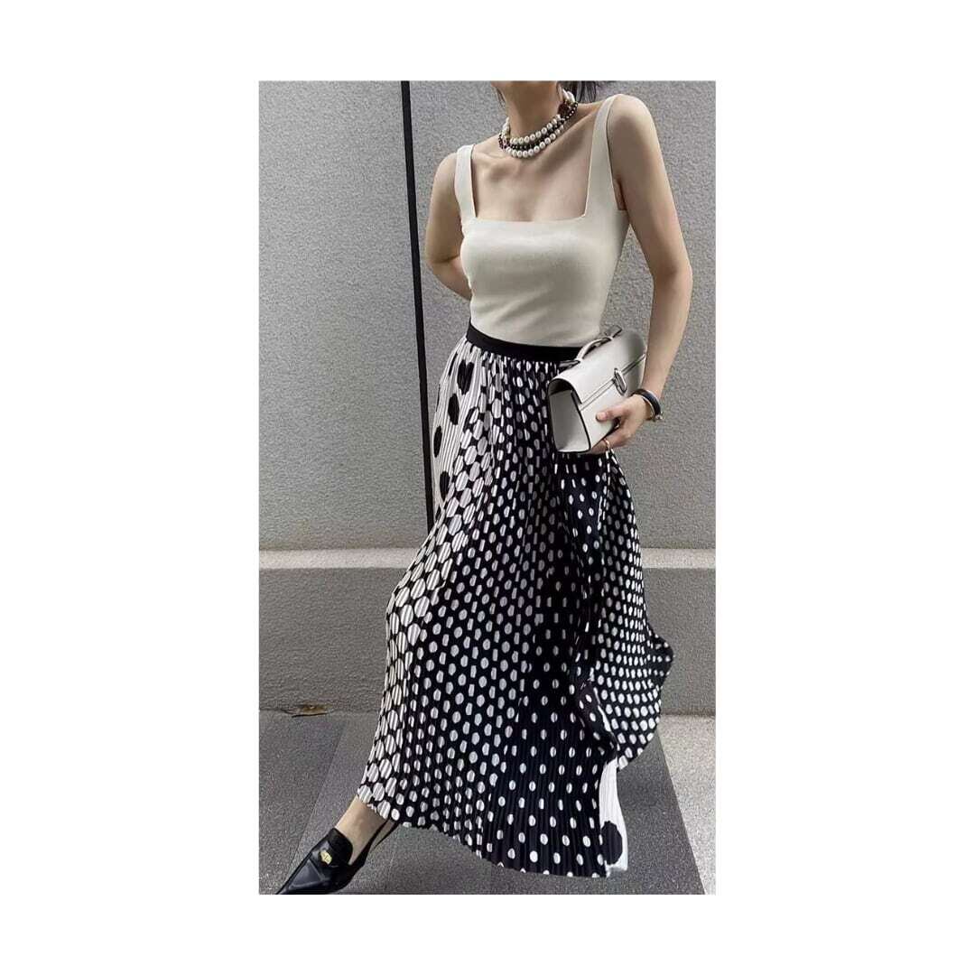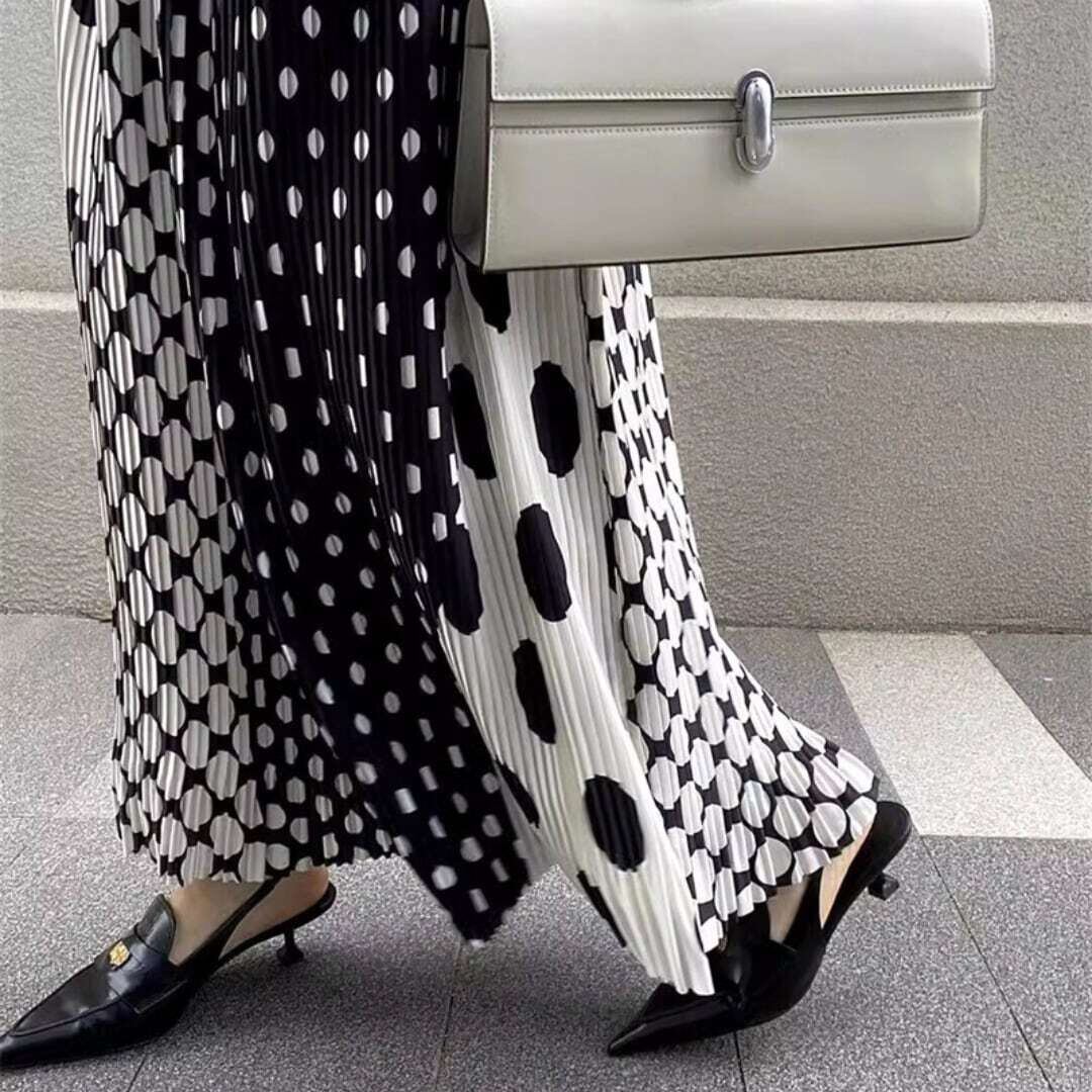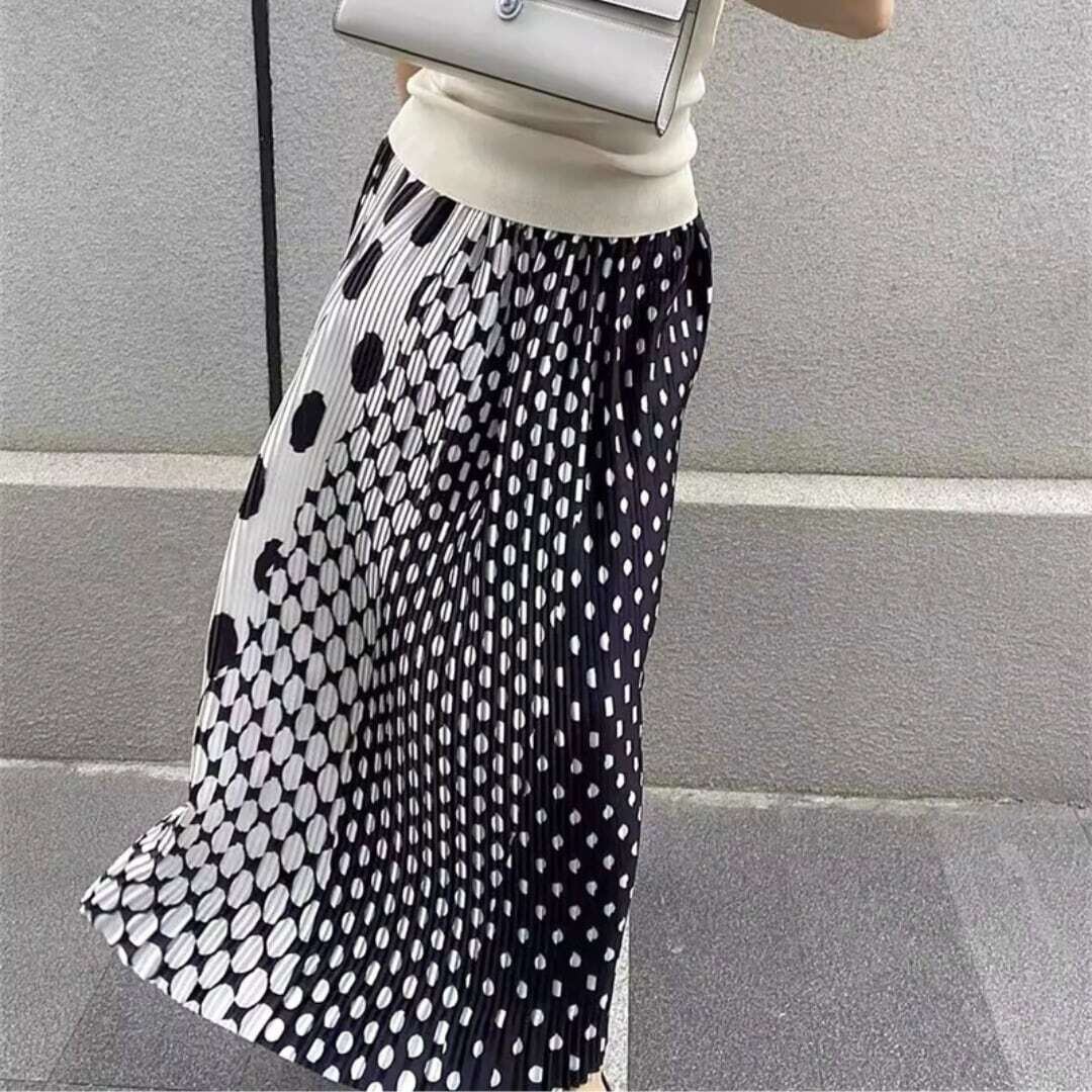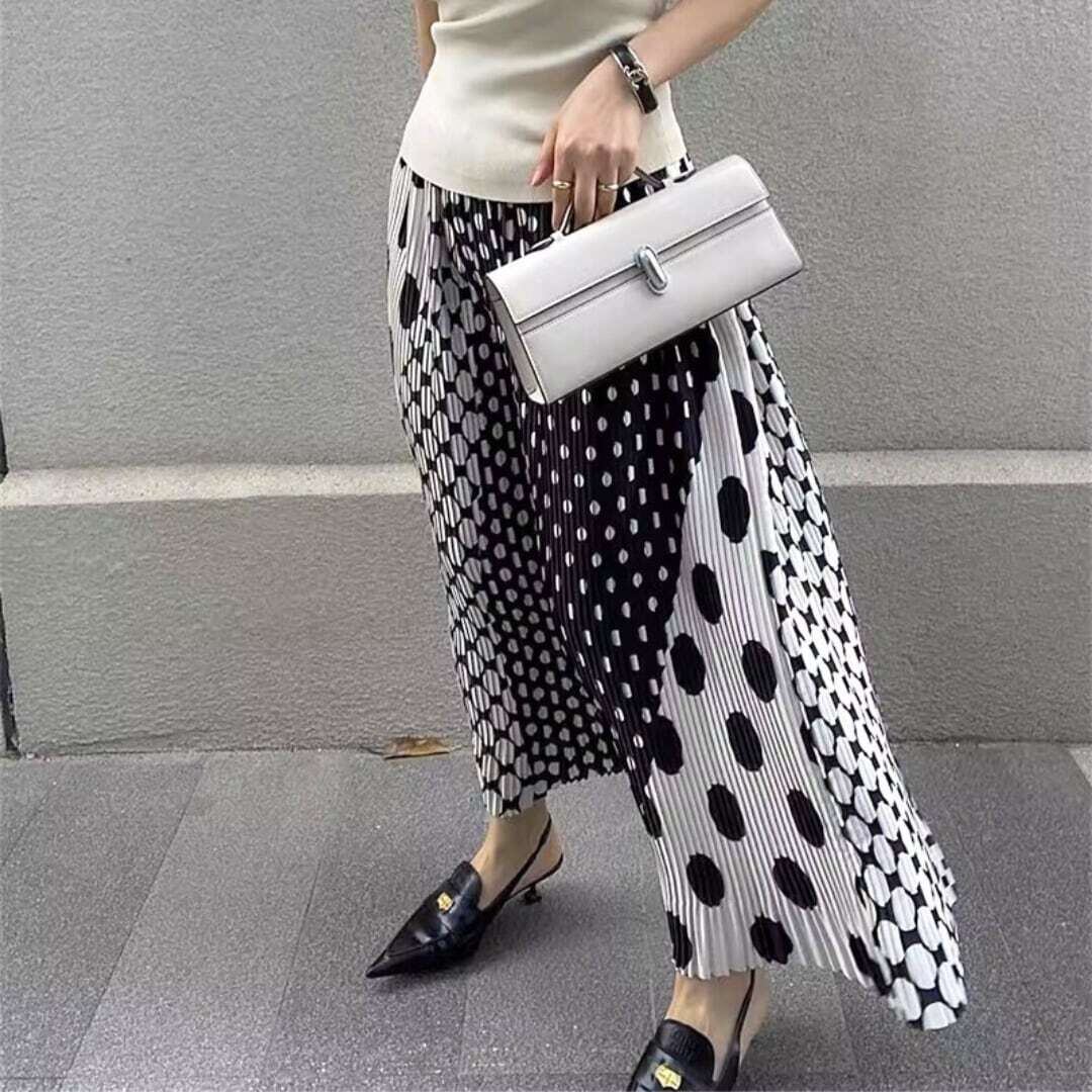 水玉ミックスデザインAラインスカート