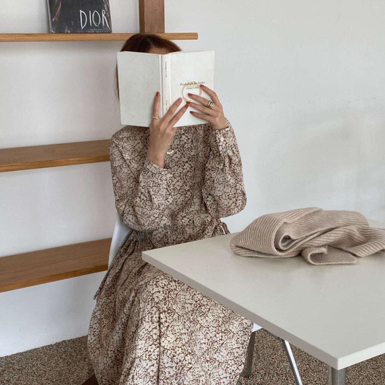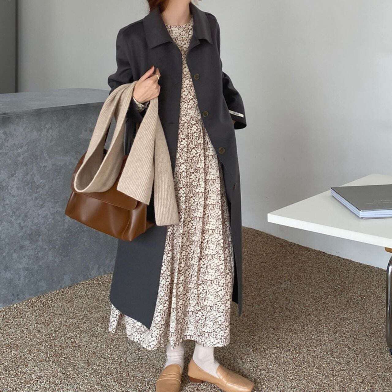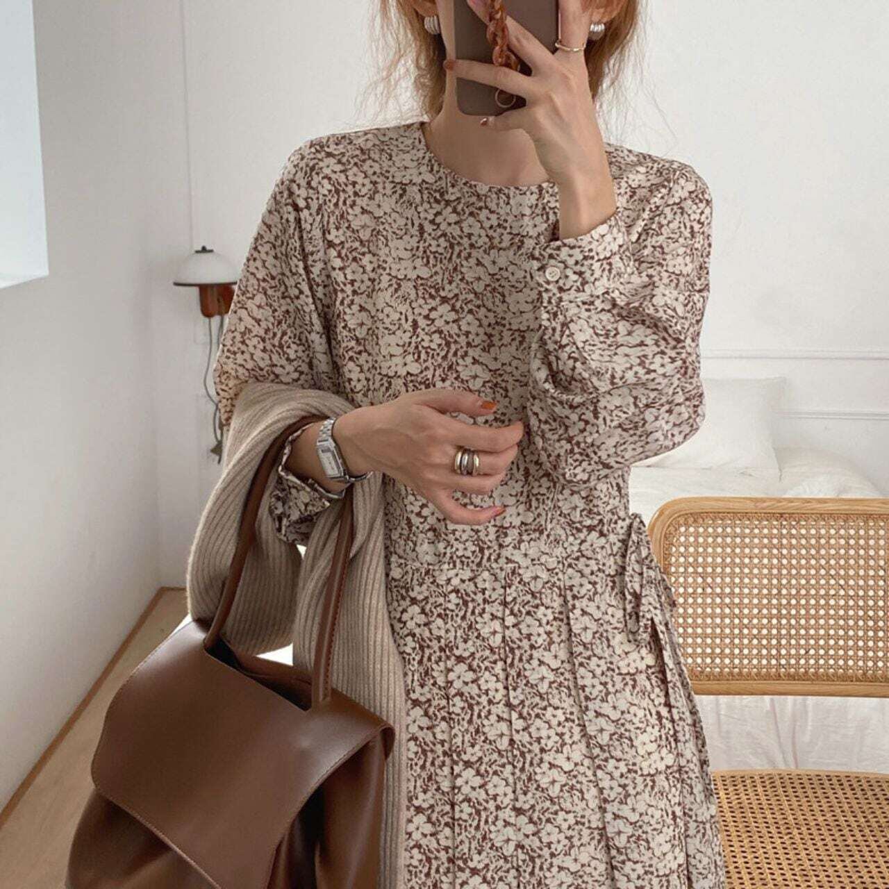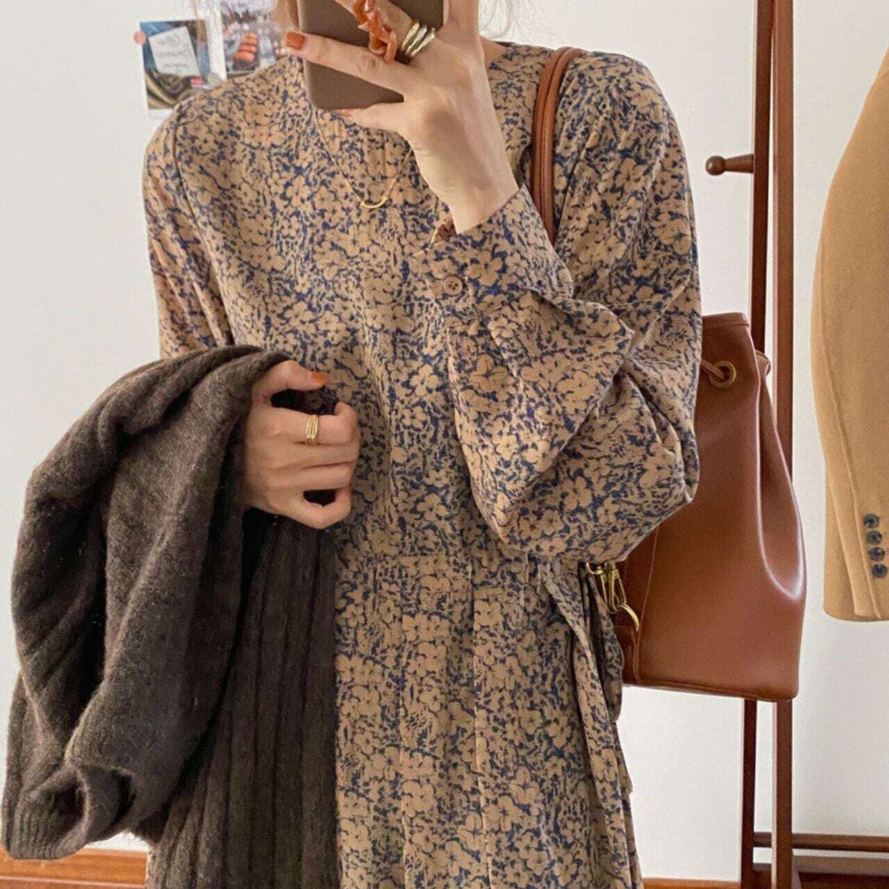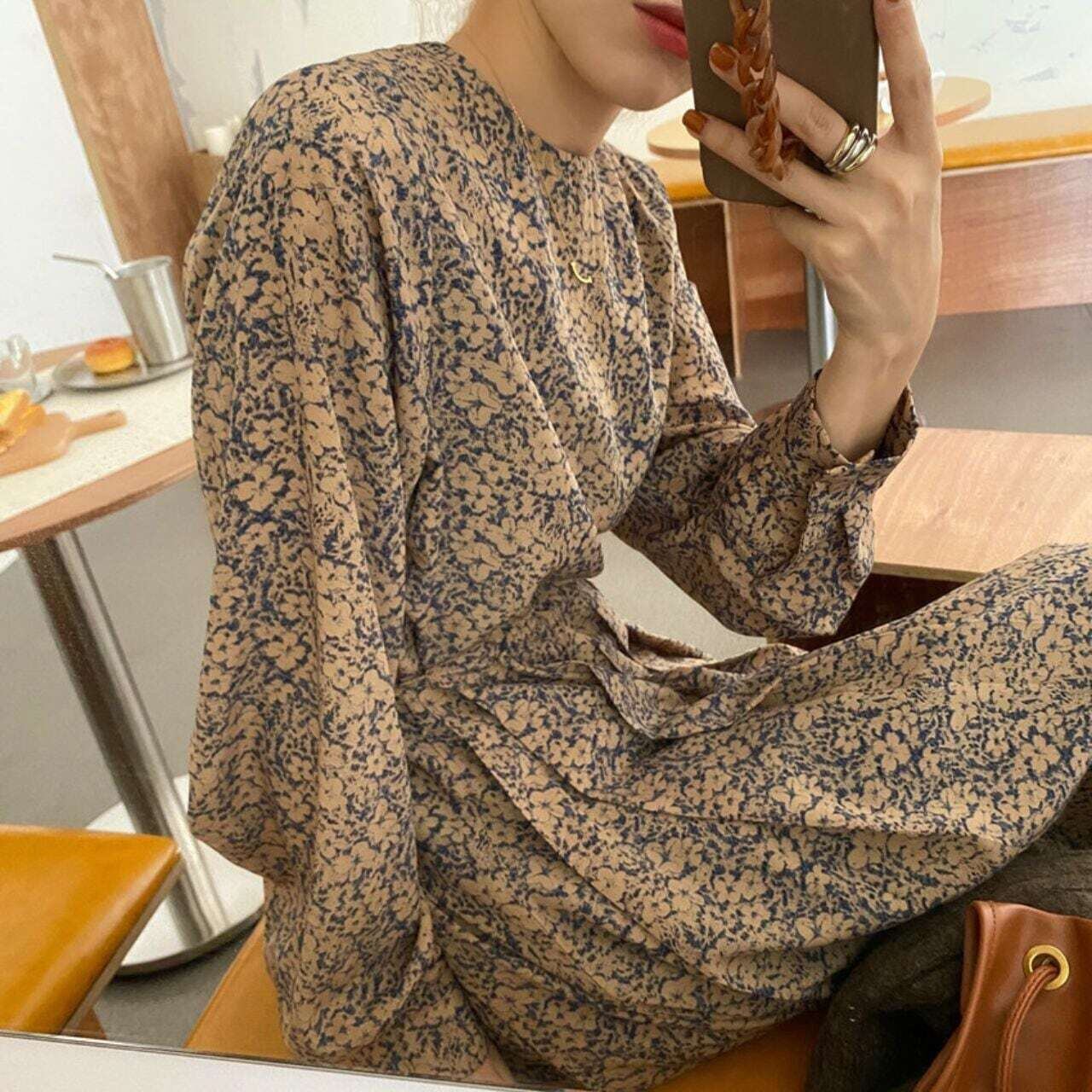 小花柄タックプリーツロングワンピース