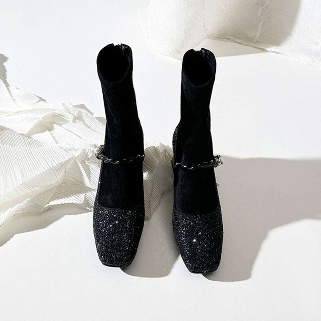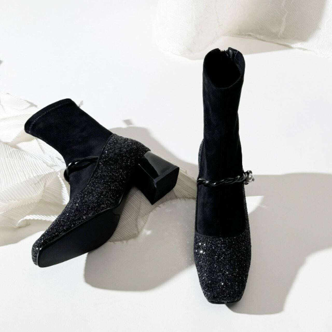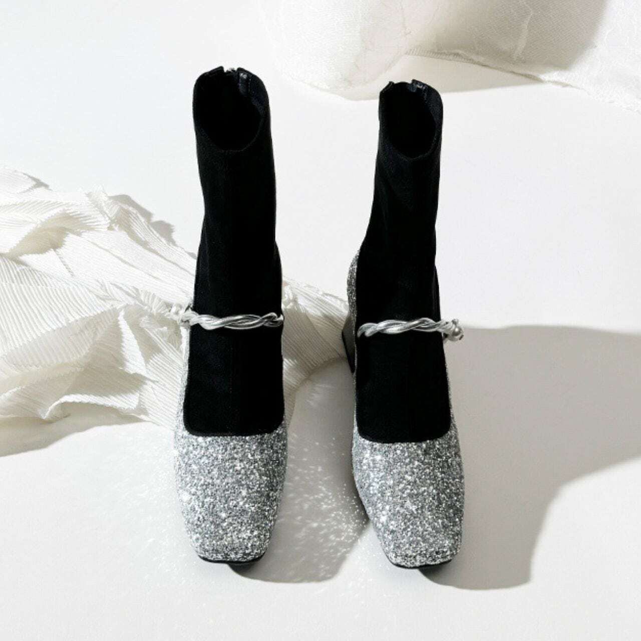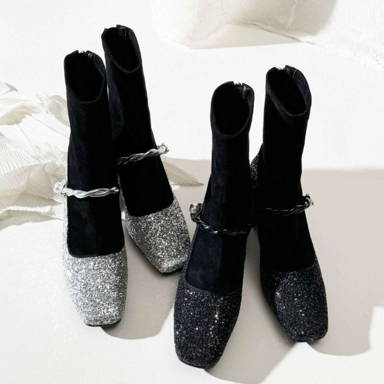 スクエアトゥグリッターパンプスブーツ