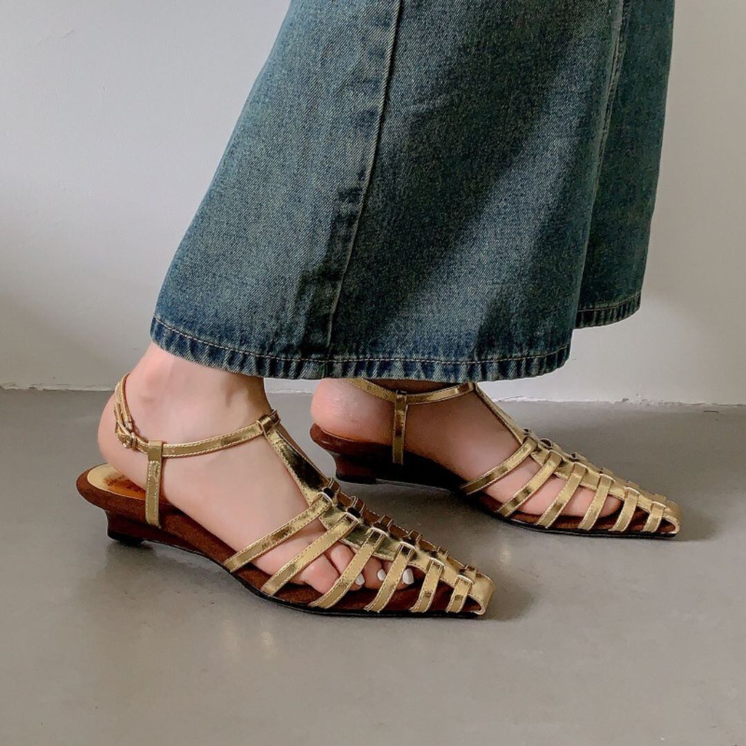 Tストラップポインテッドトゥグルカサンダル