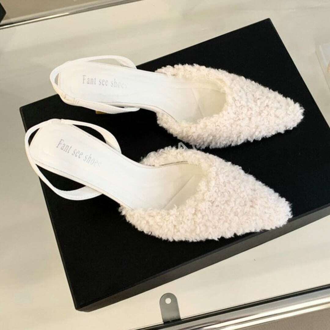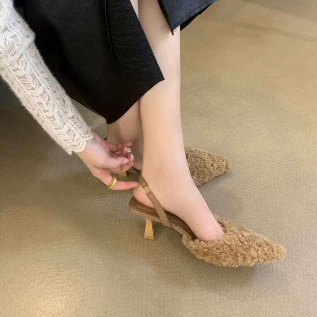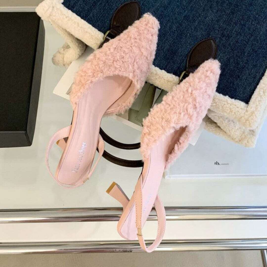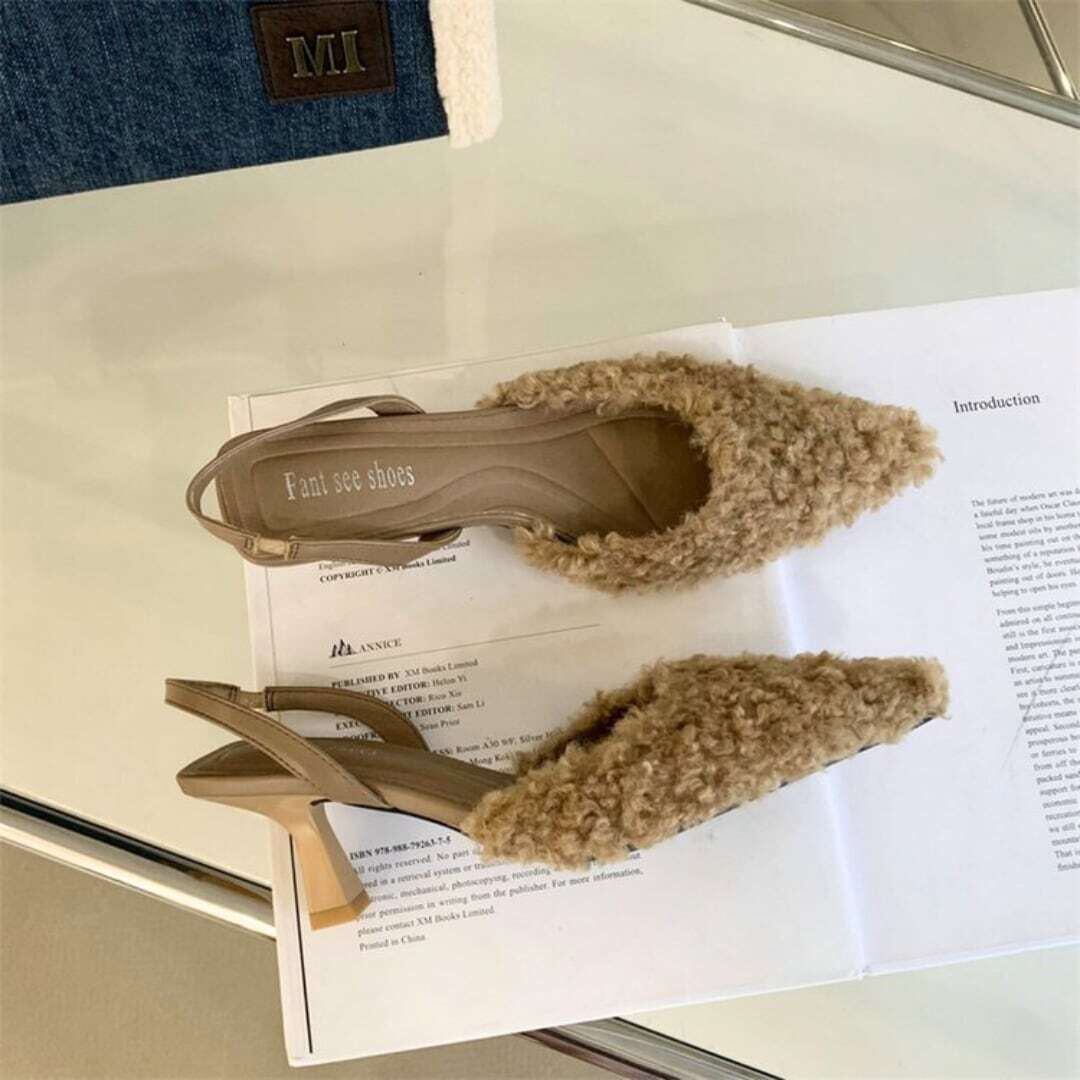 バックストラップ付ポインテッドトゥボアミュールサンダル