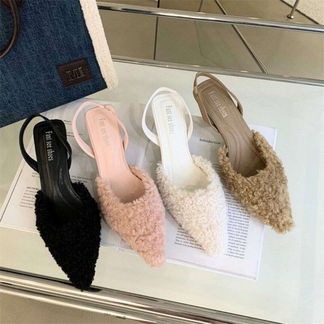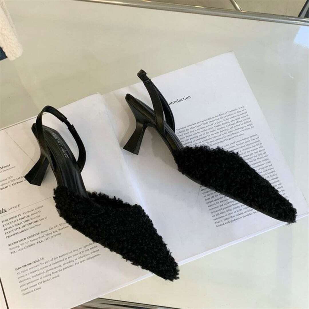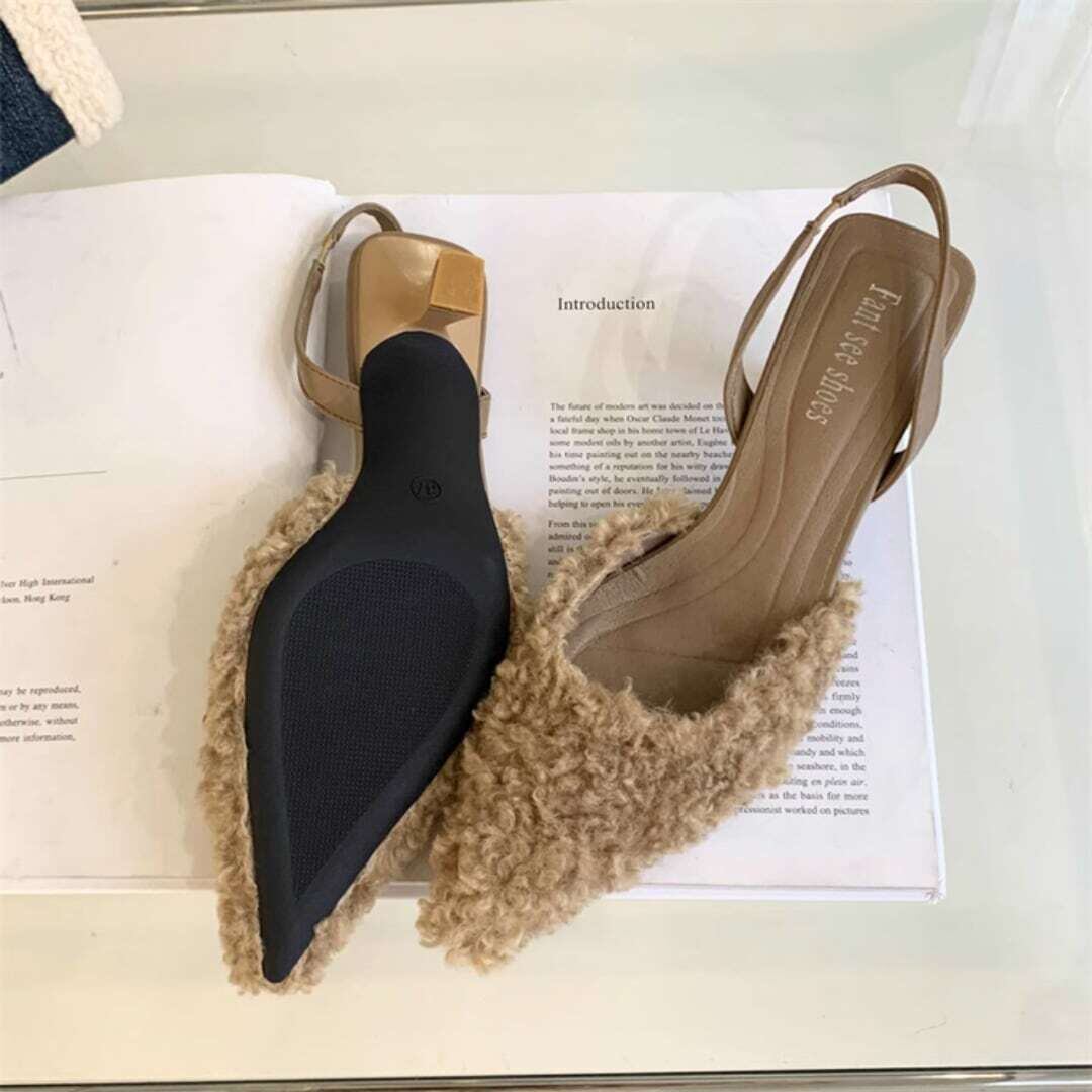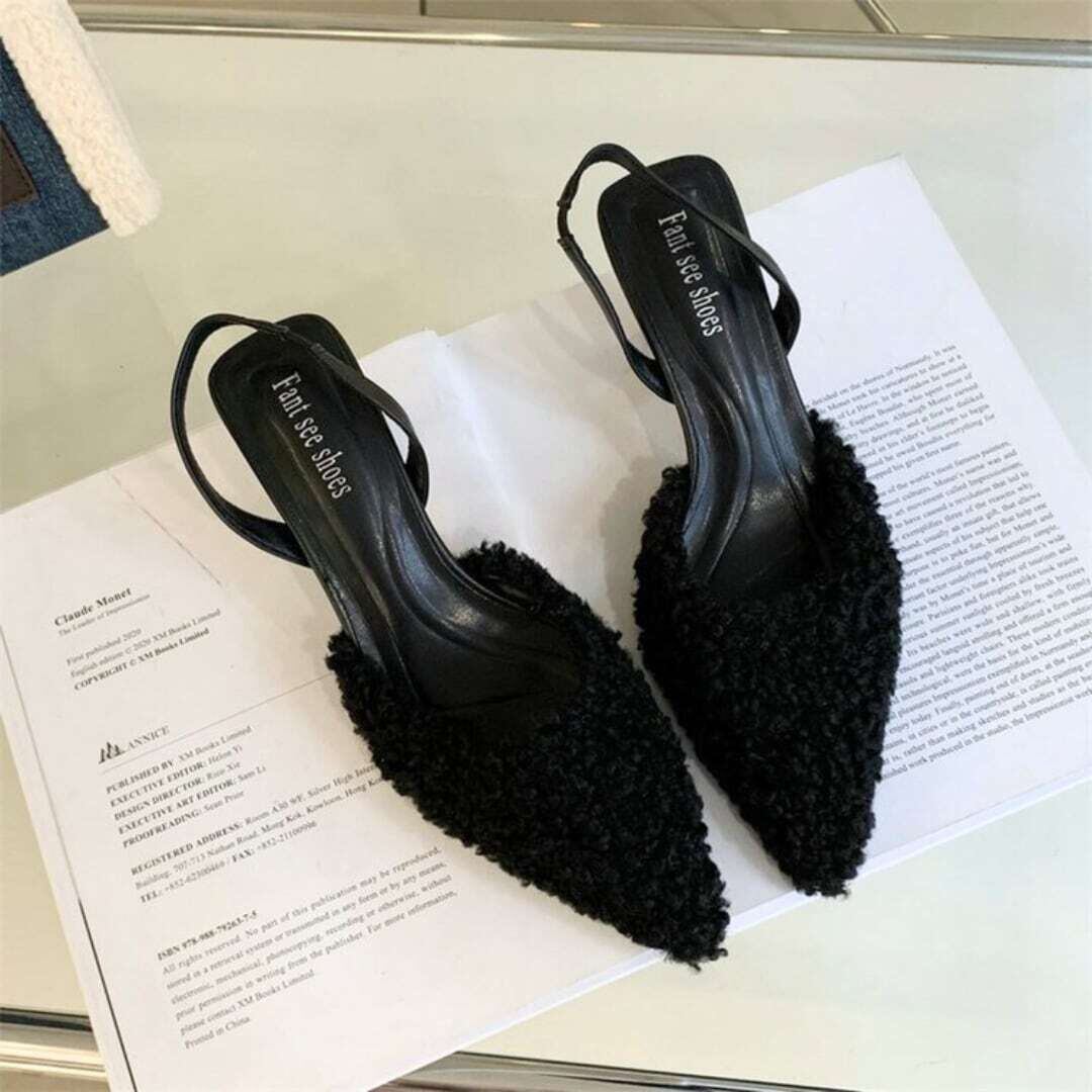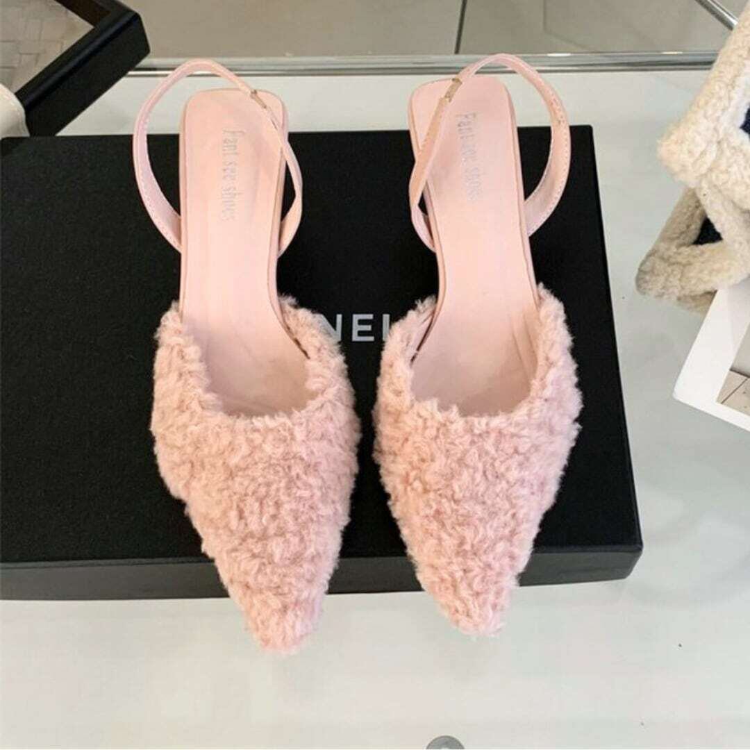 バックストラップ付ポインテッドトゥボアミュールサンダル