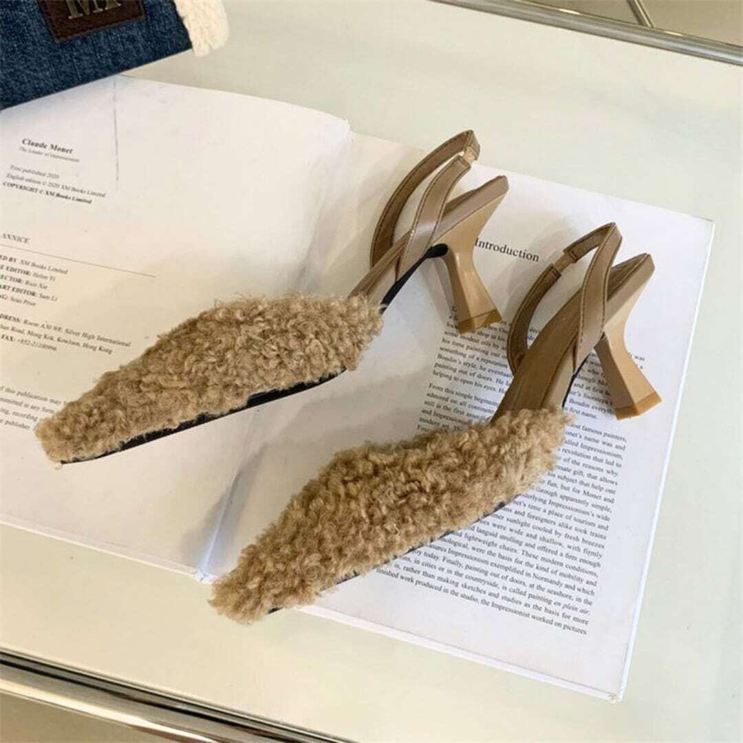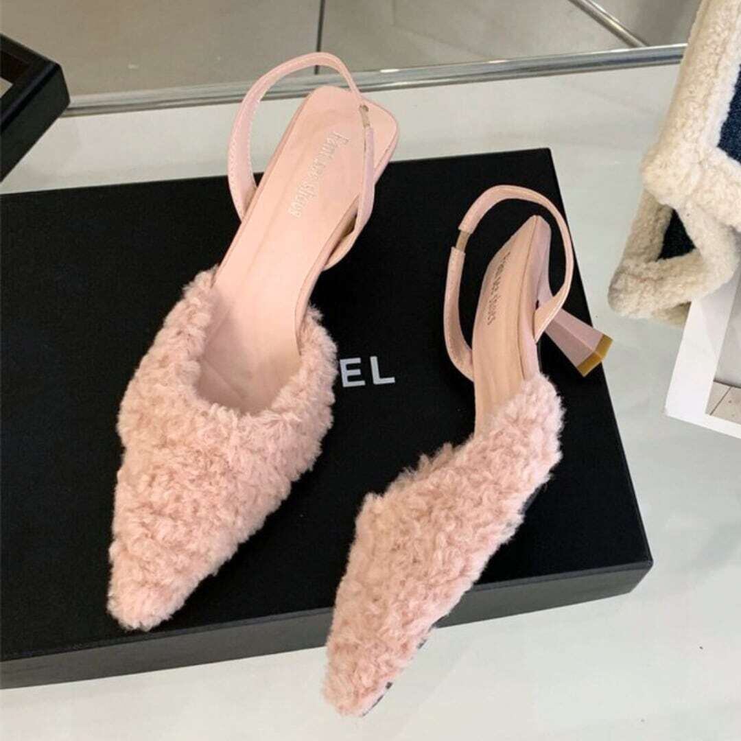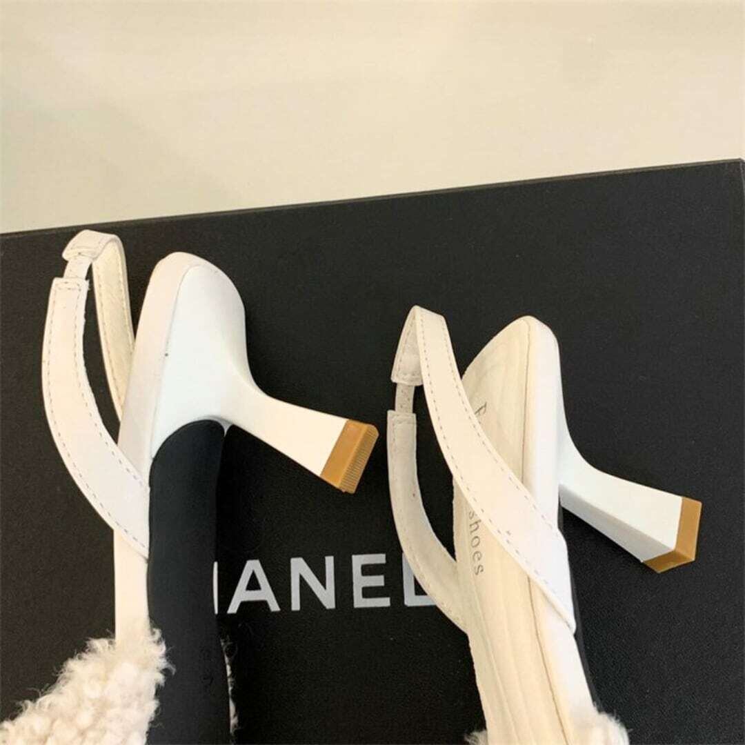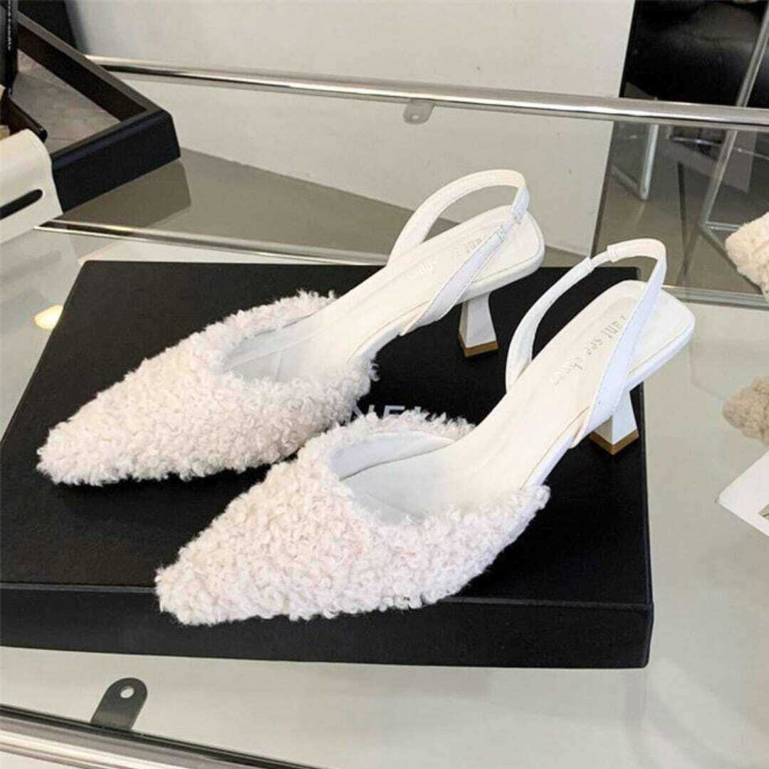 バックストラップ付ポインテッドトゥボアミュールサンダル