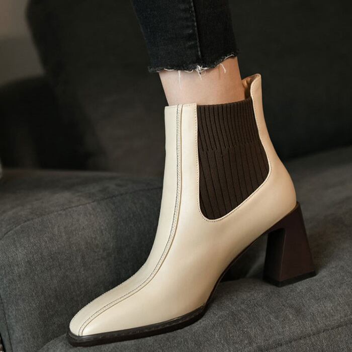 バイカラーストレッチショートブーツ