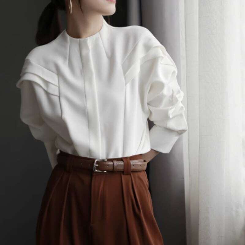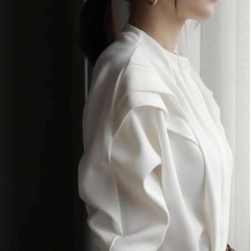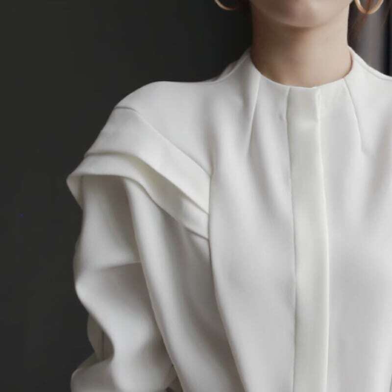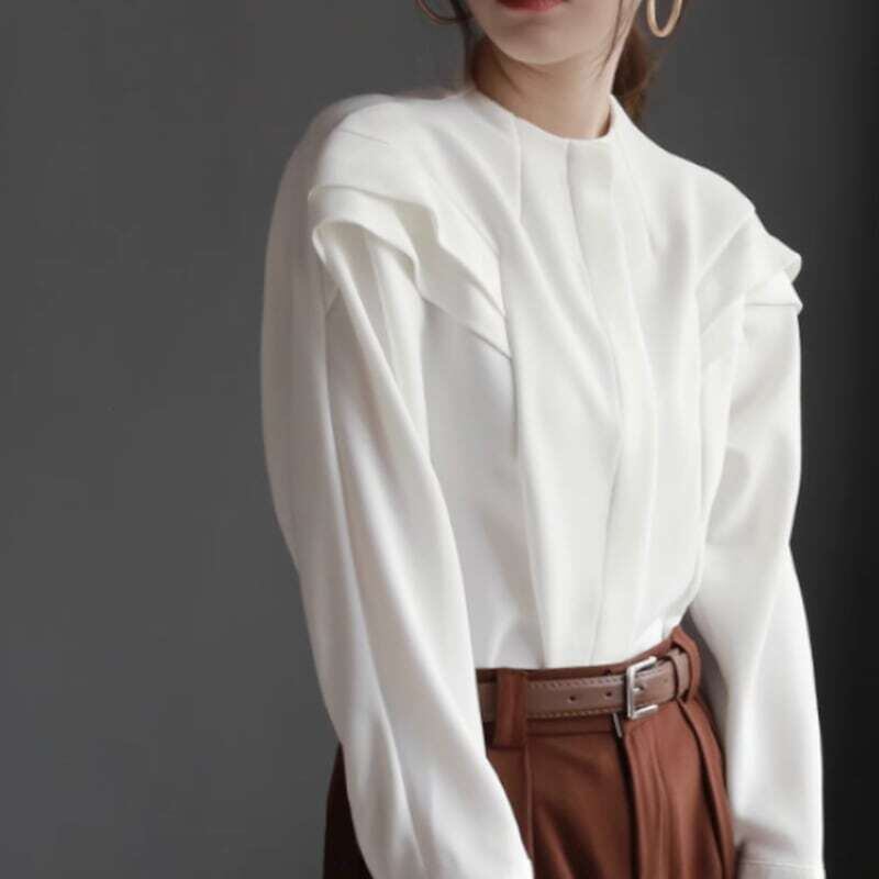Frill shoulder no collar design blouse
