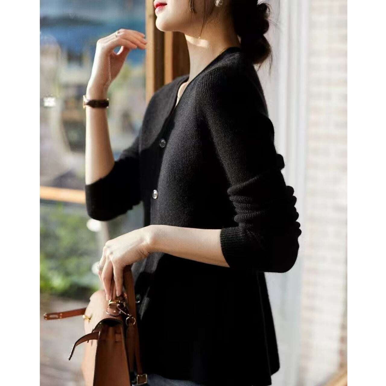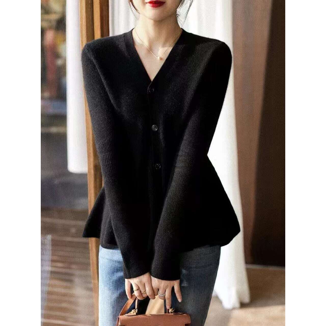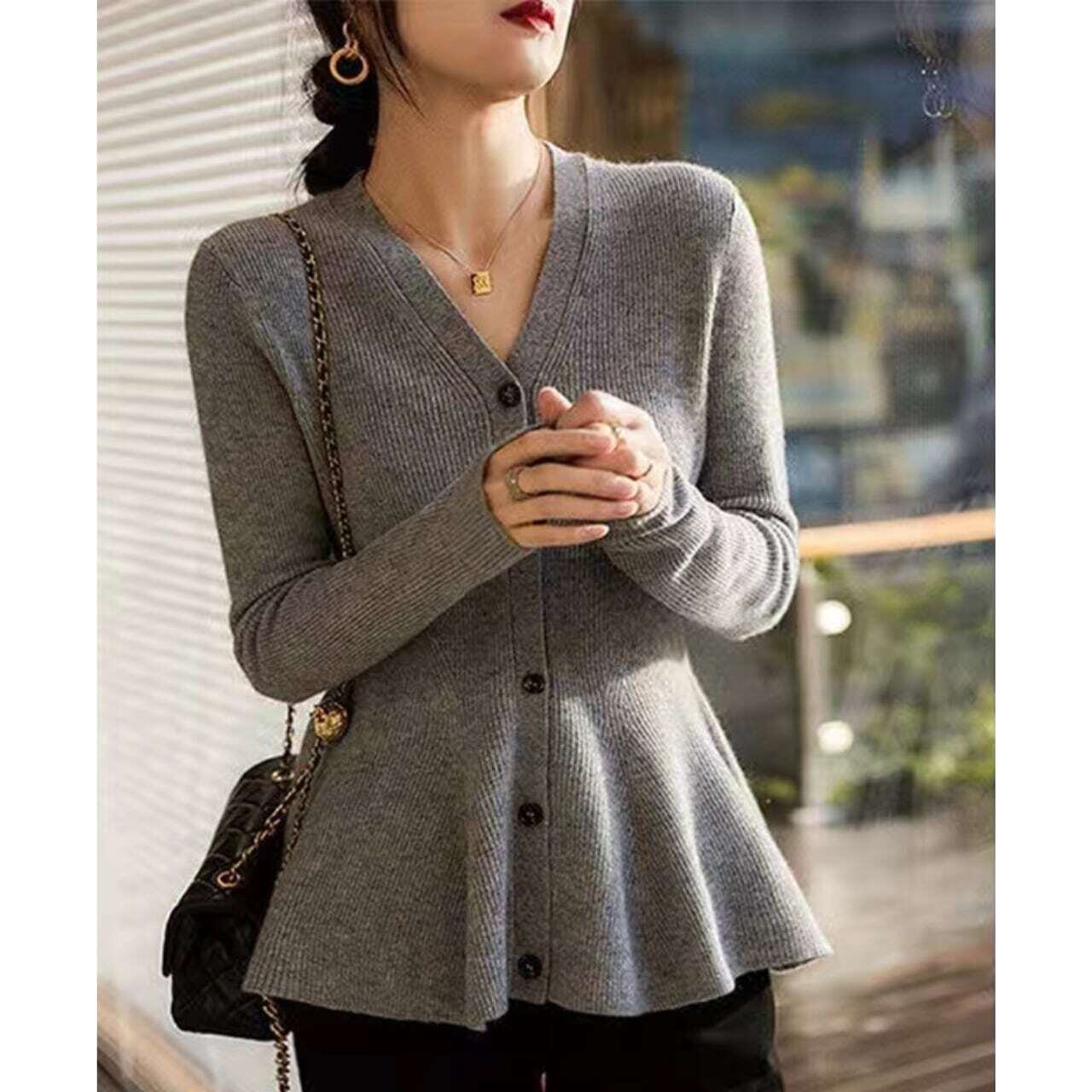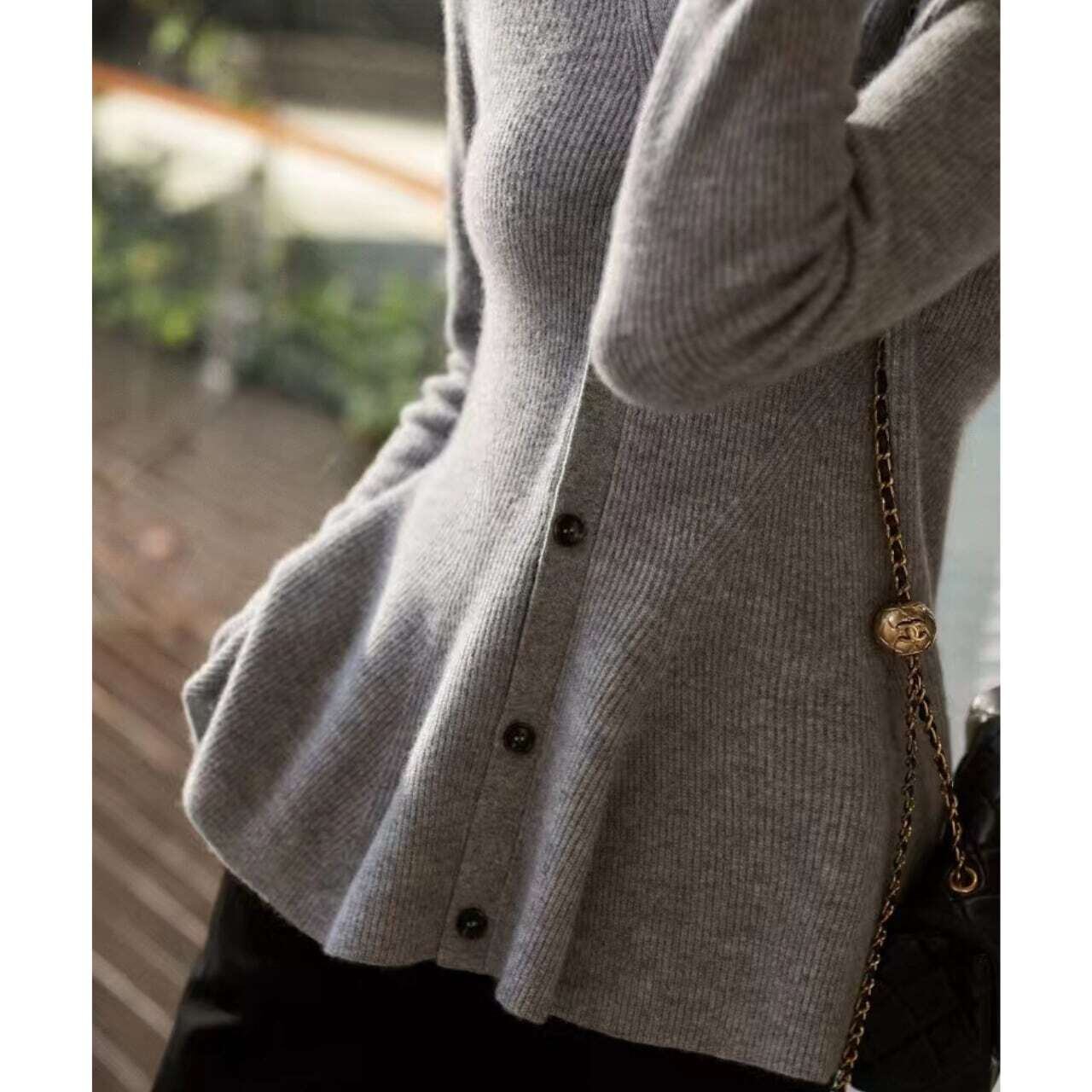 V-neck peplum knit cardigan Vネックペプラムニットカーディガン