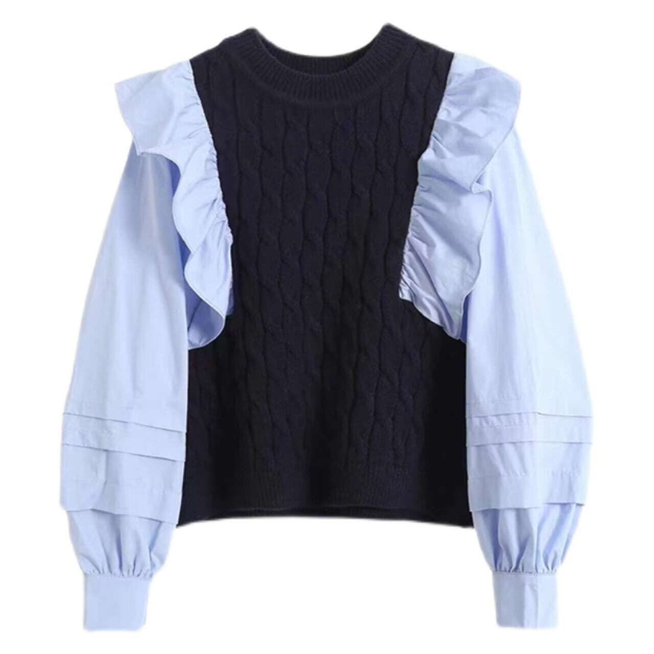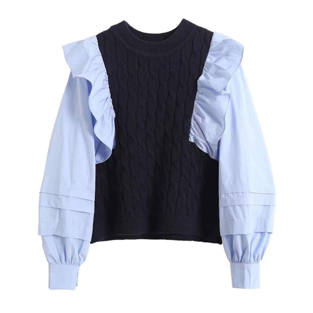 Fake layered knit frill blouse フェイクレイヤードニットフリルブラウス