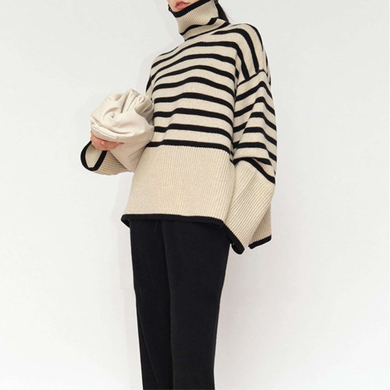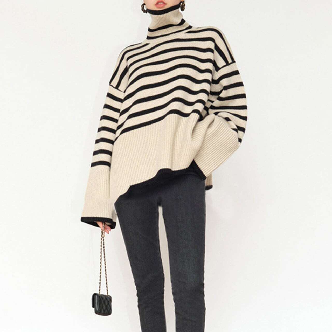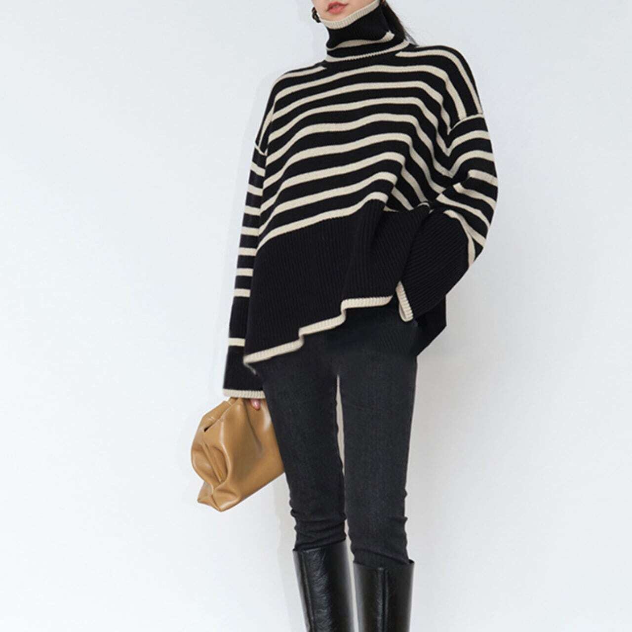 Striped turtle neck tunic knit ボーダータートルネックチュニックニット