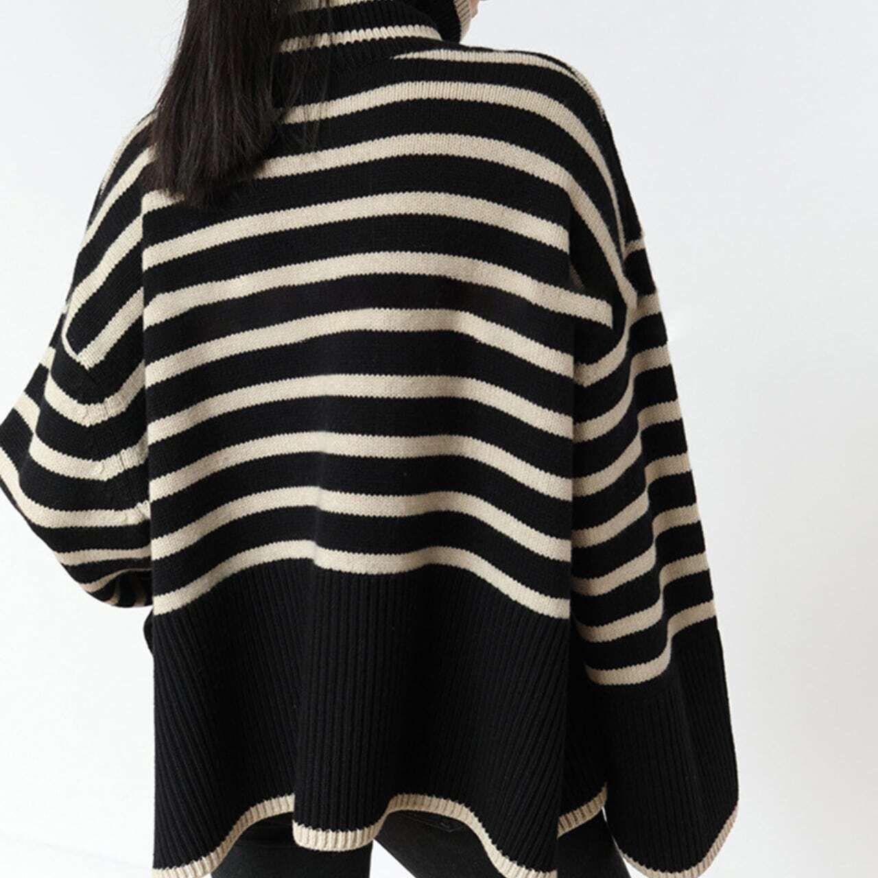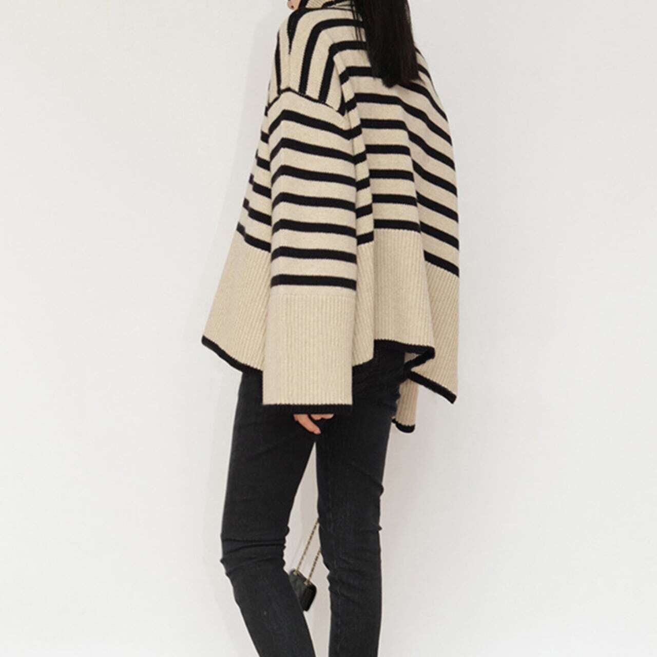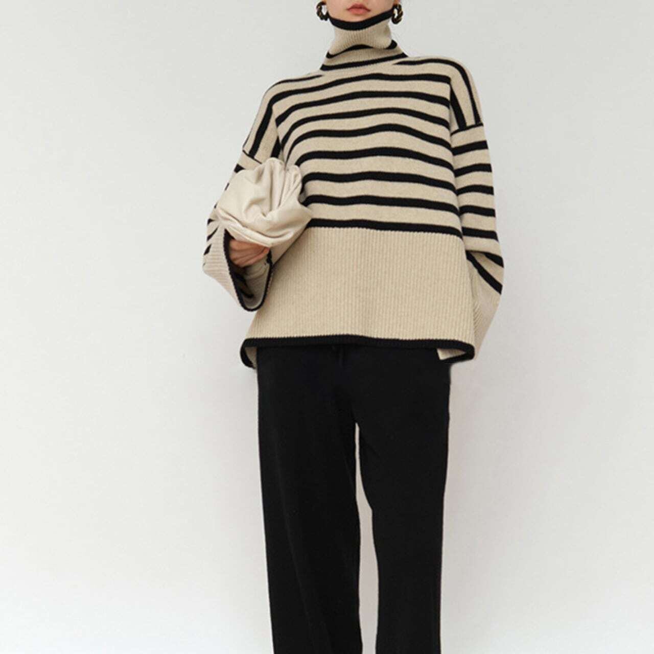 Striped turtle neck tunic knit ボーダータートルネックチュニックニット