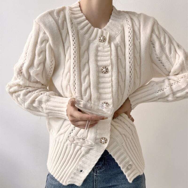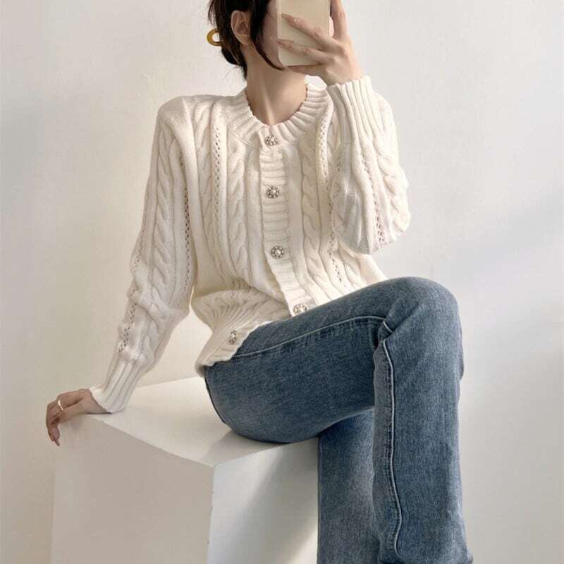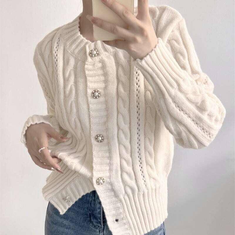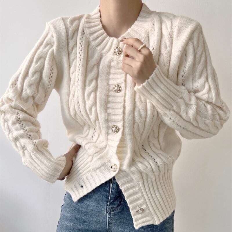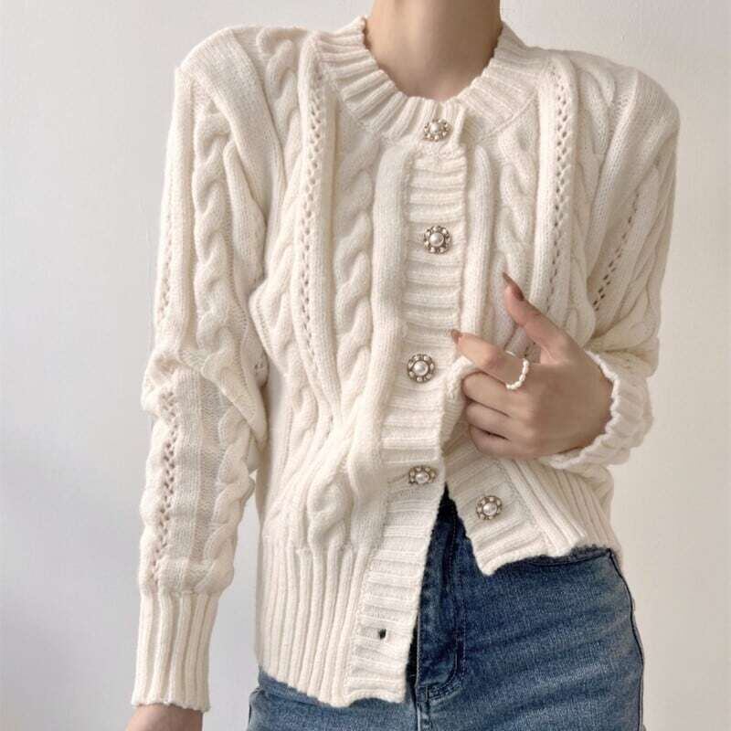 Pearl button cable knit cardigan パールボタンケーブルニットカーディガン