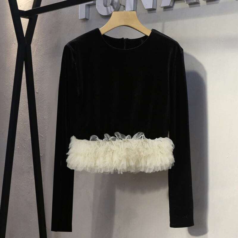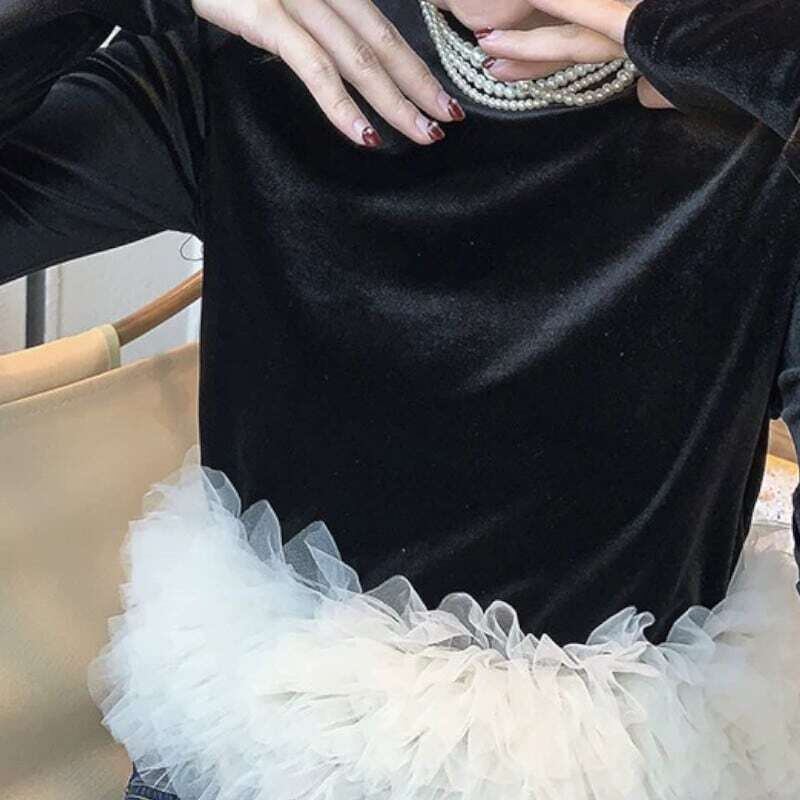 Hem tulle velor tops ヘムチュールベロアトップス