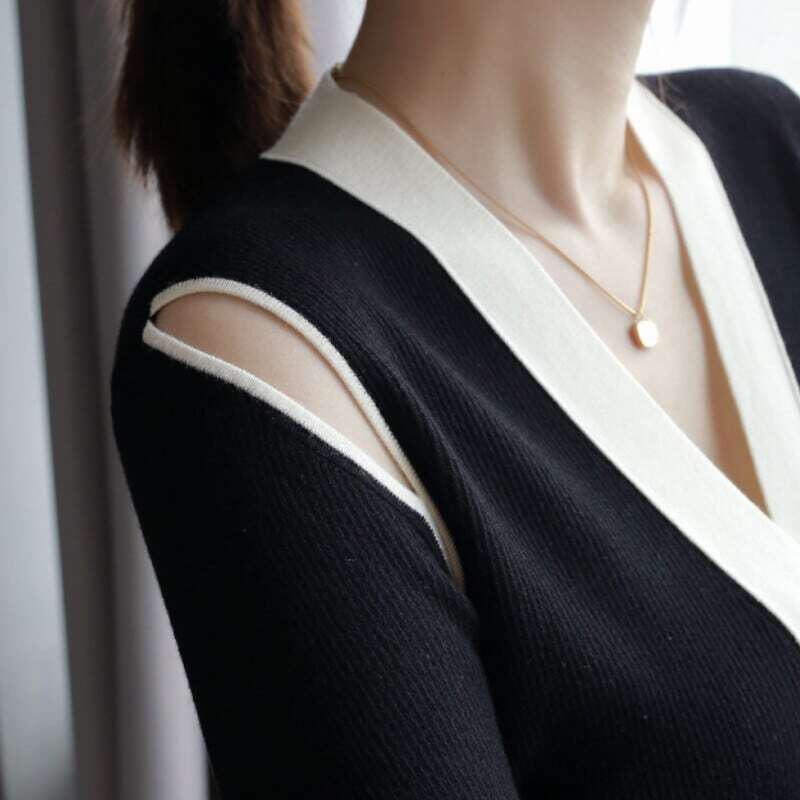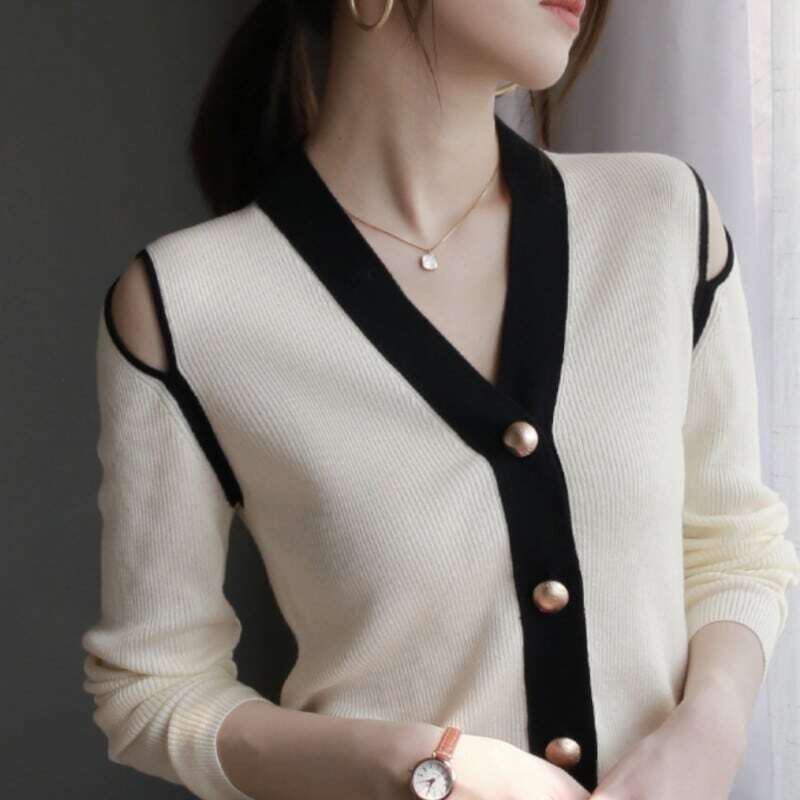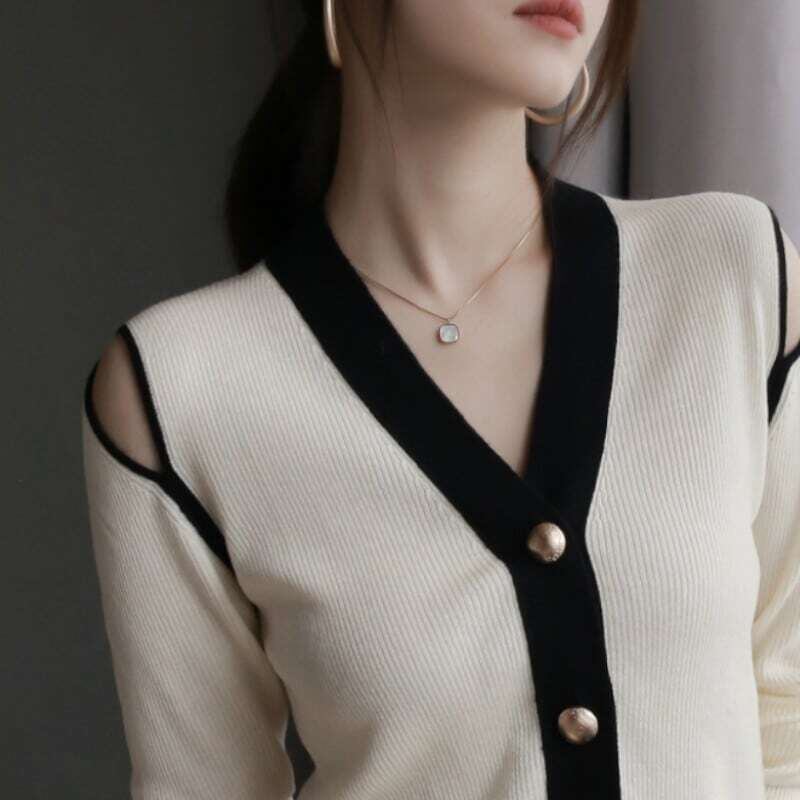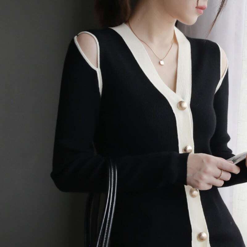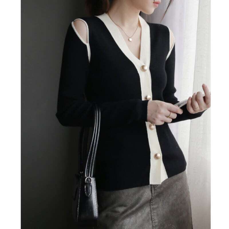 Off-shoulder V-neck knit cardigan オフショルダーVネックニットカーディガン