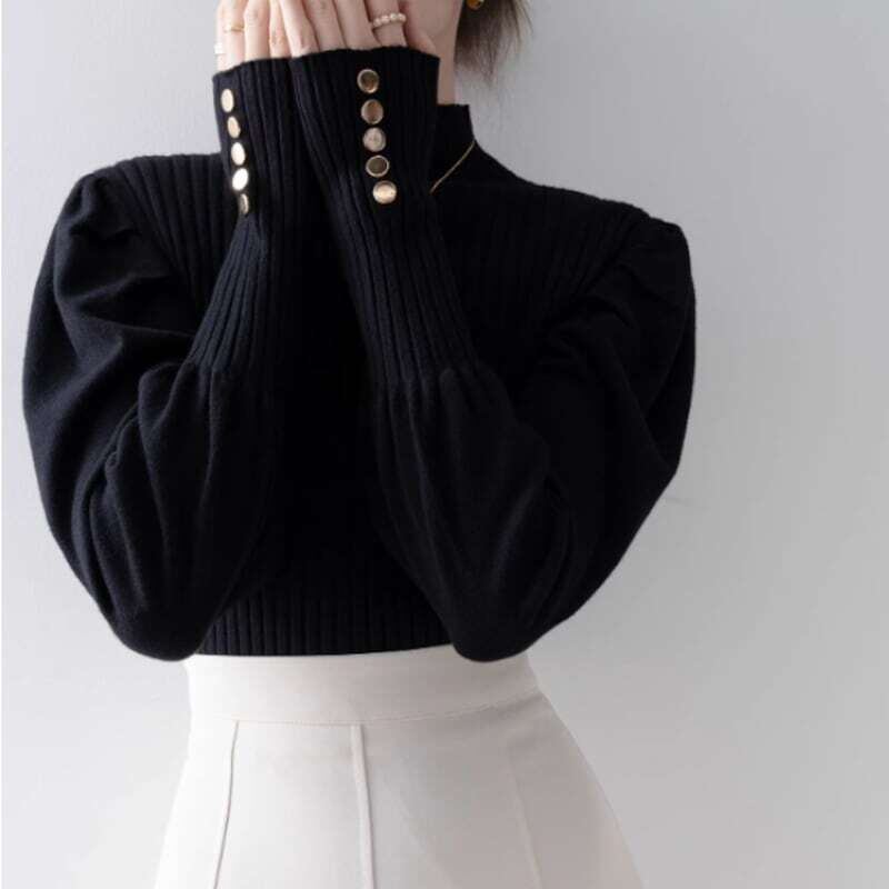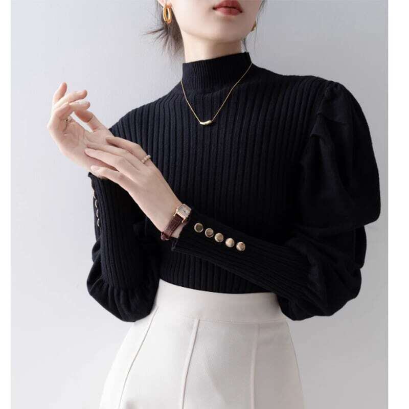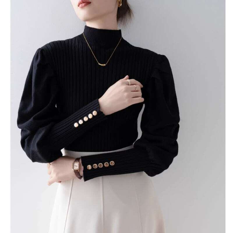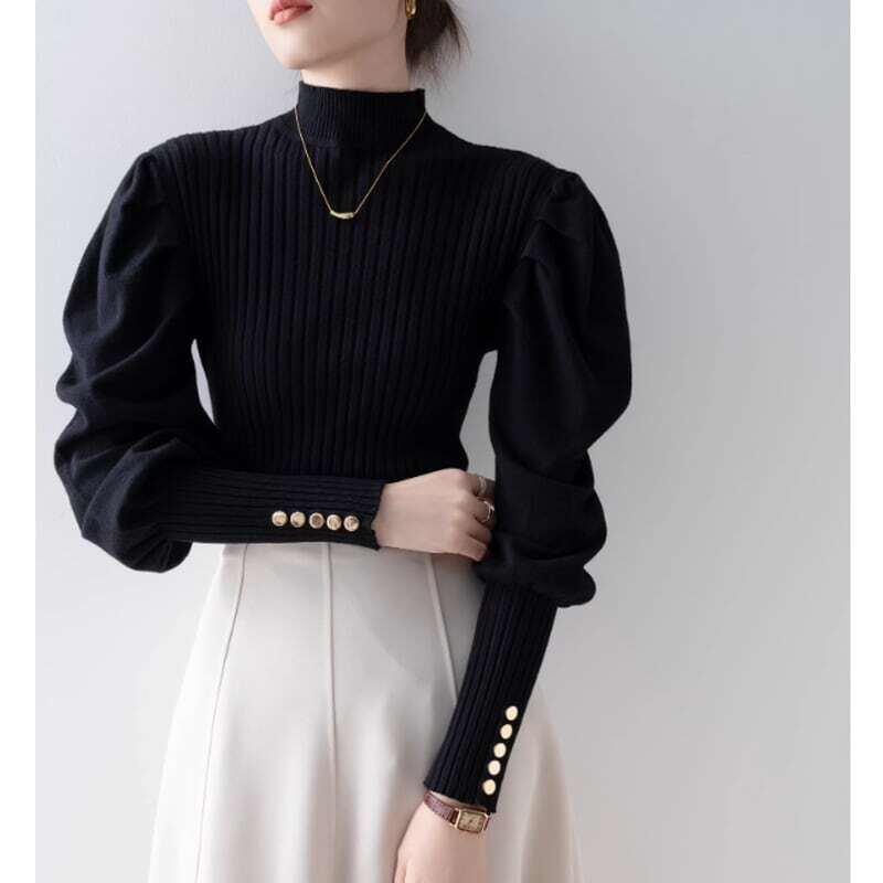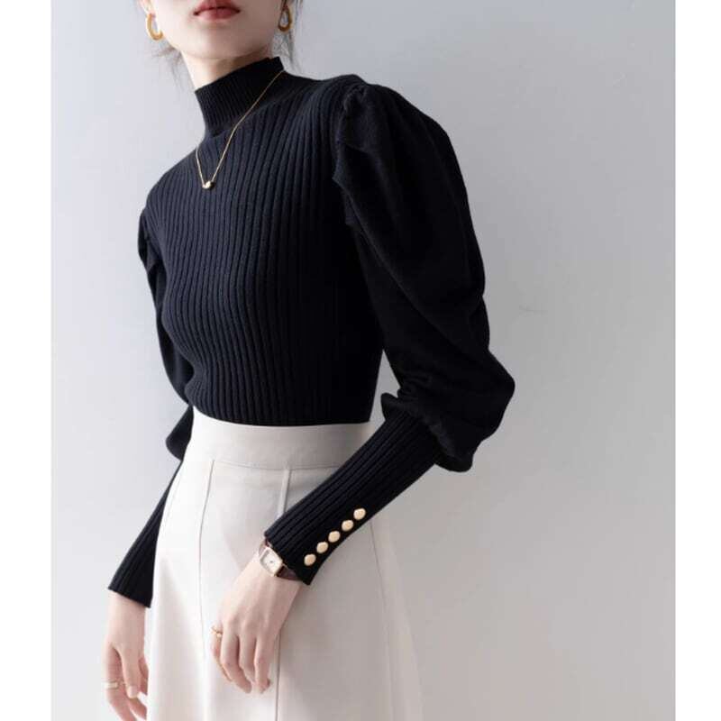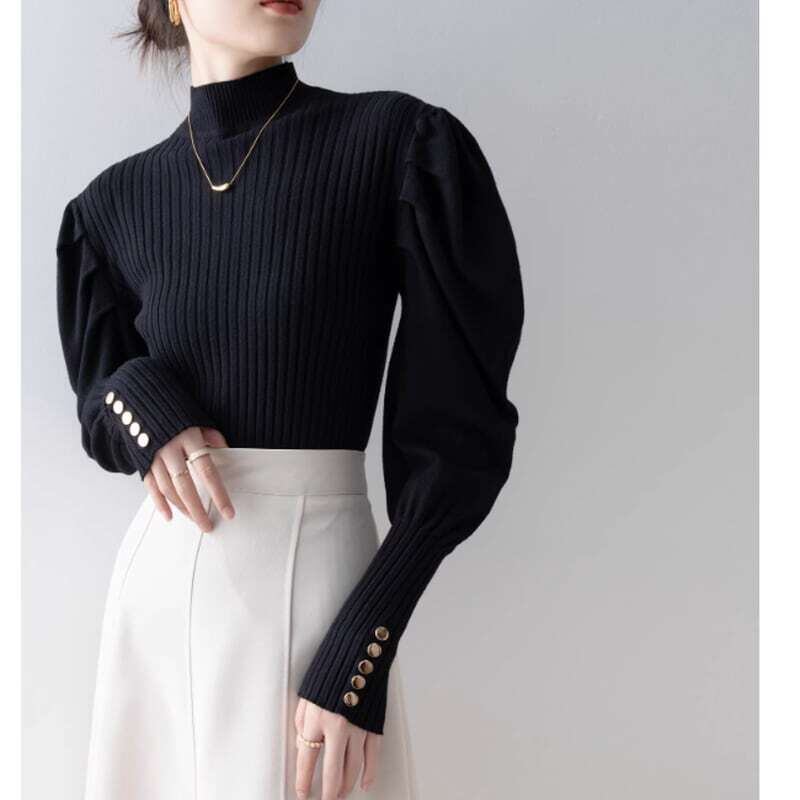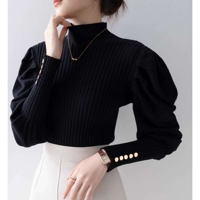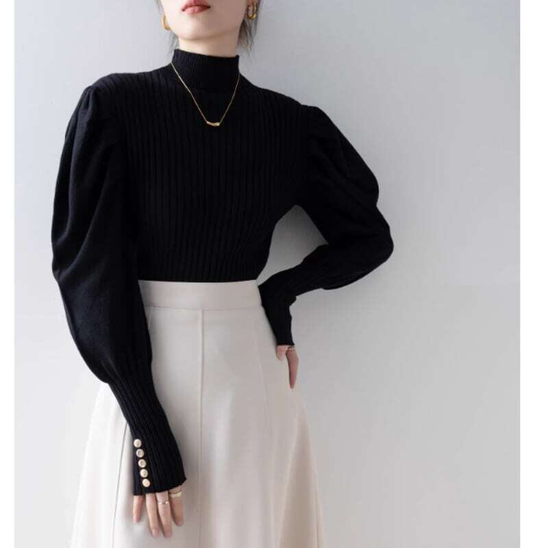Puff sleeve half turtle neck knit パフスリーブハーフタートルネックニット