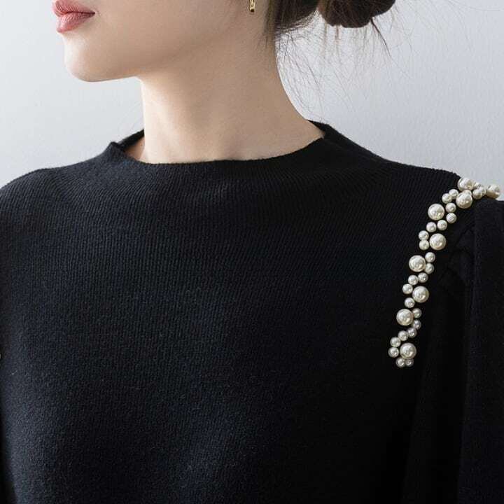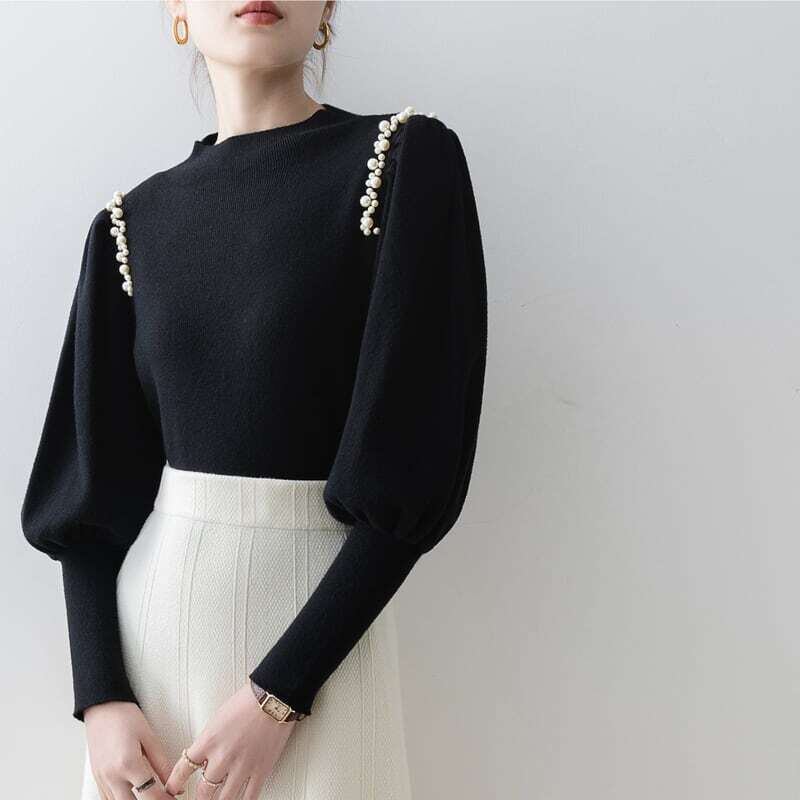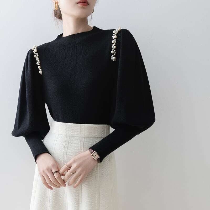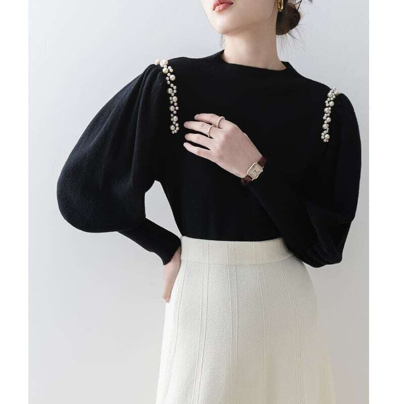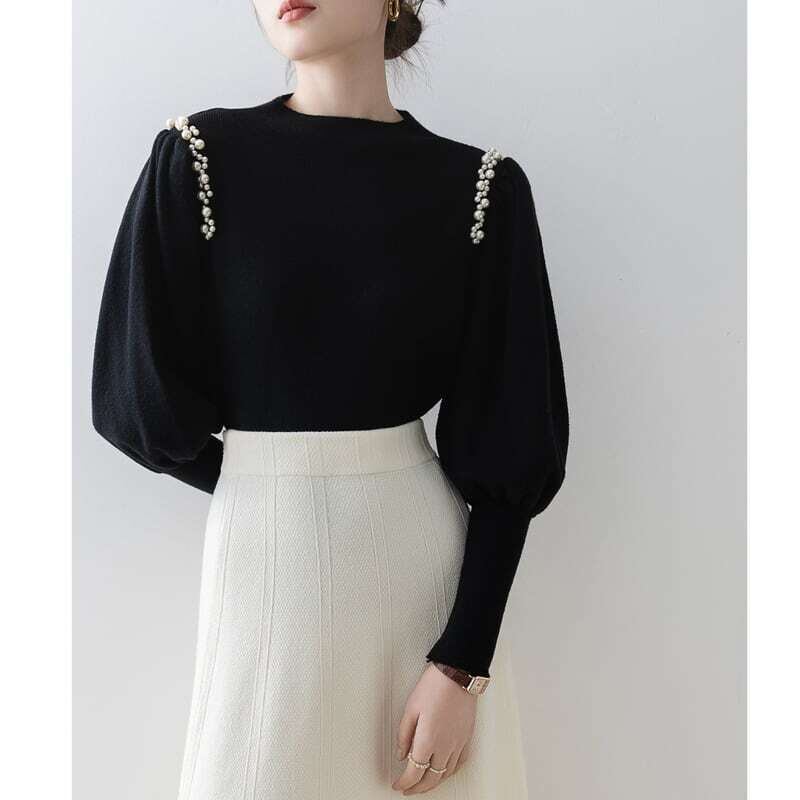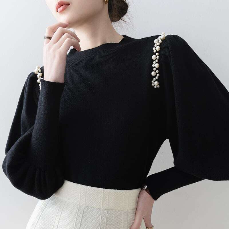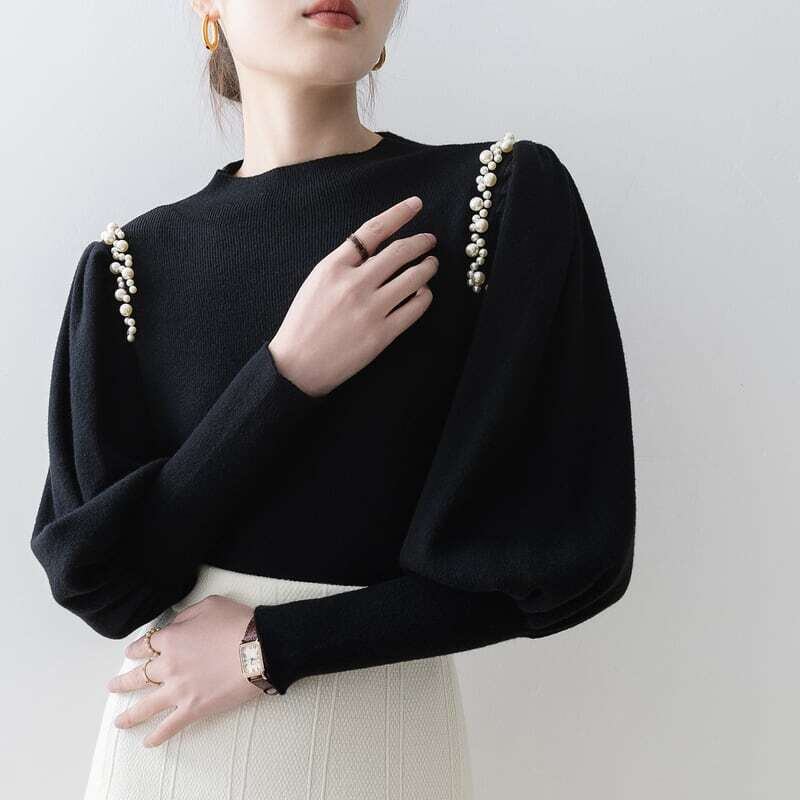 Pearl line shoulder lantern sleeve knit パールラインショルダーランタンスリーブニット