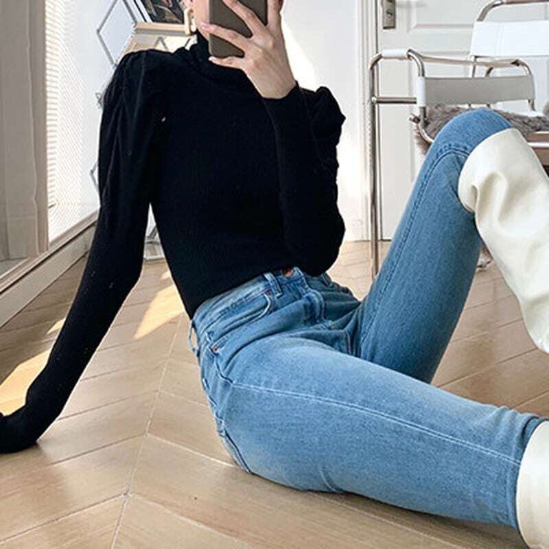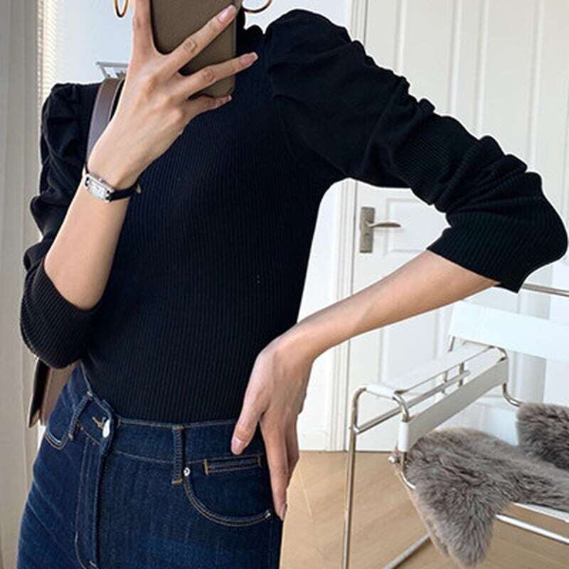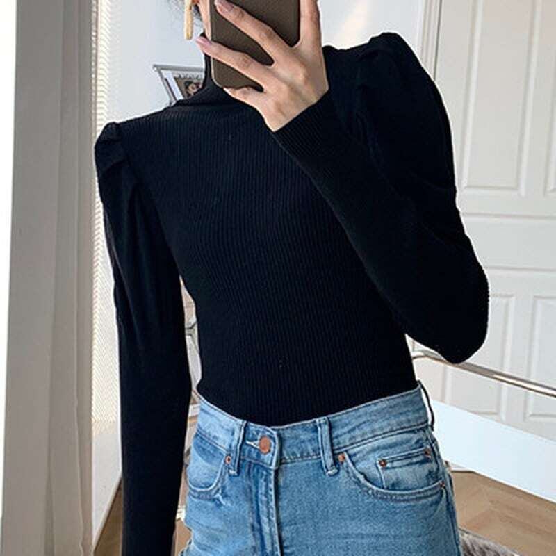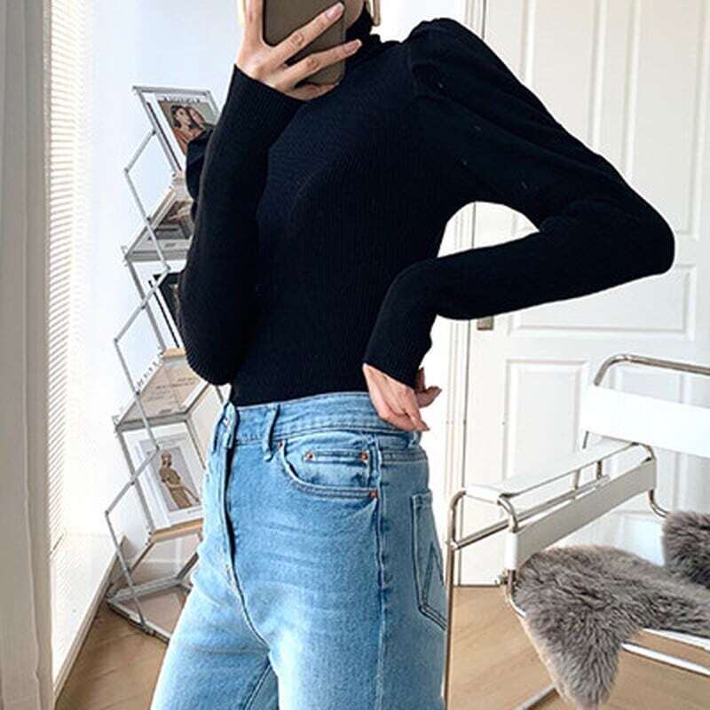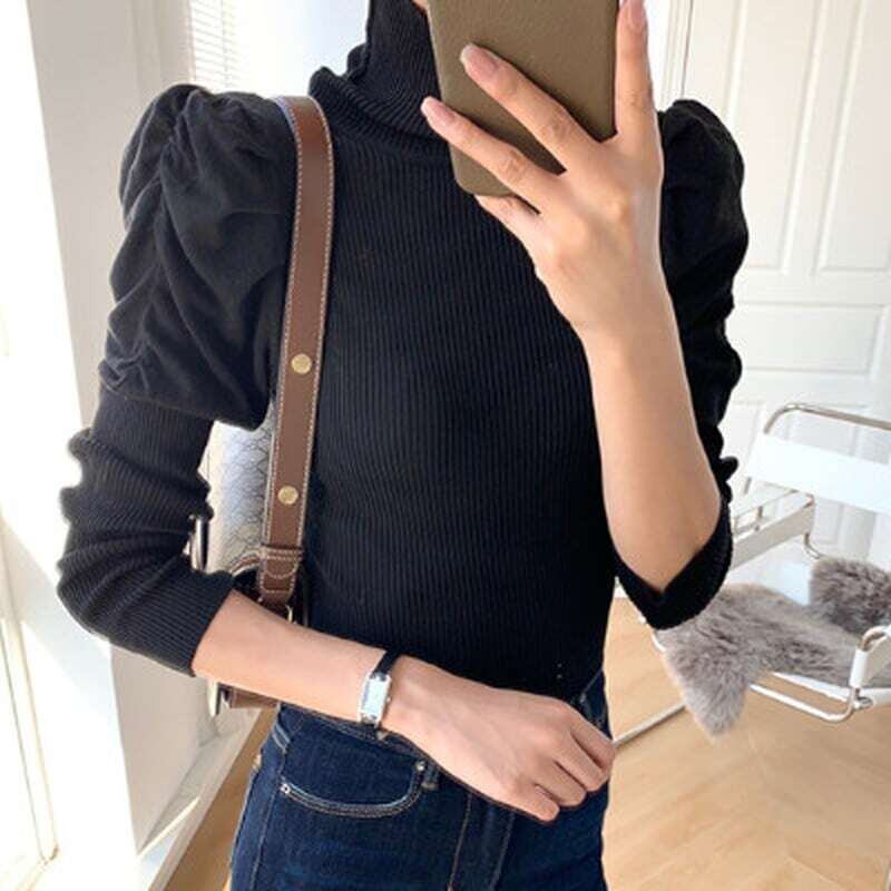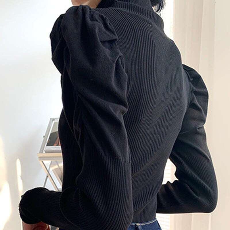 Puff sleeve rib high neck sweater パフスリーブリブハイネックセーター