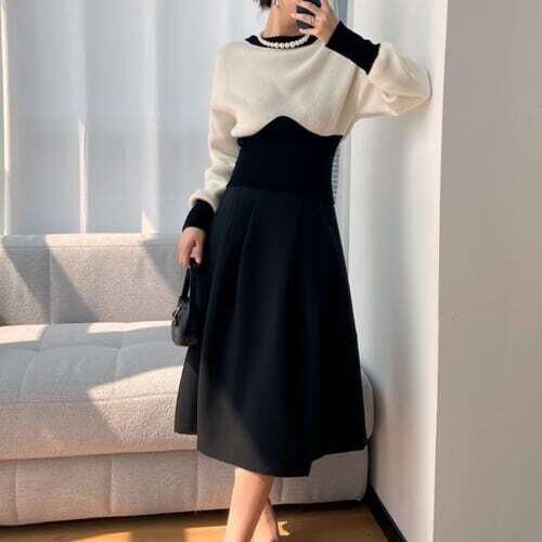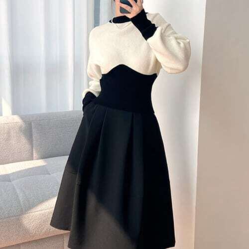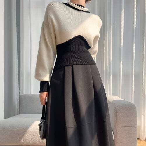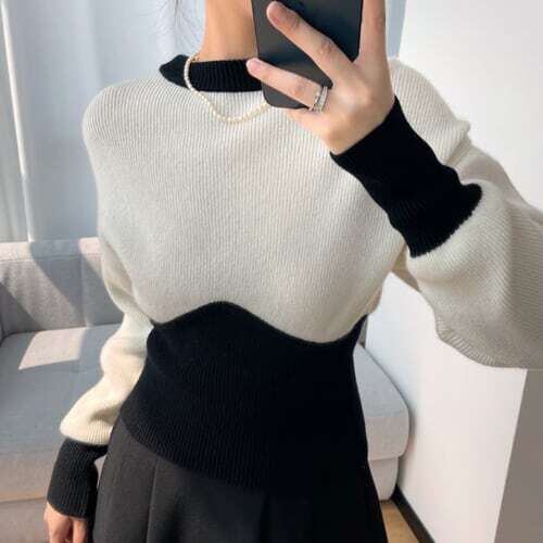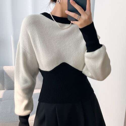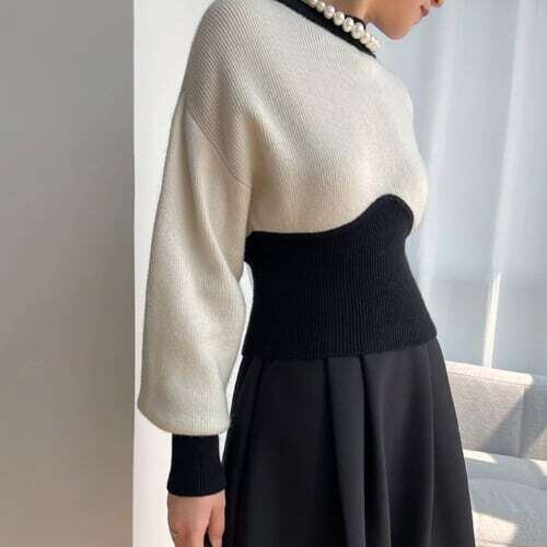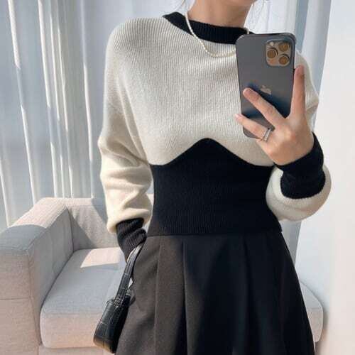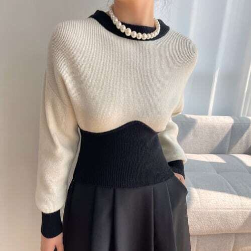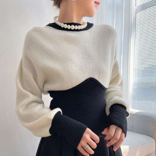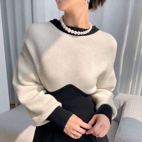 Bi-color switched round neck sweater バイカラー切り替えラウンドネックセーター