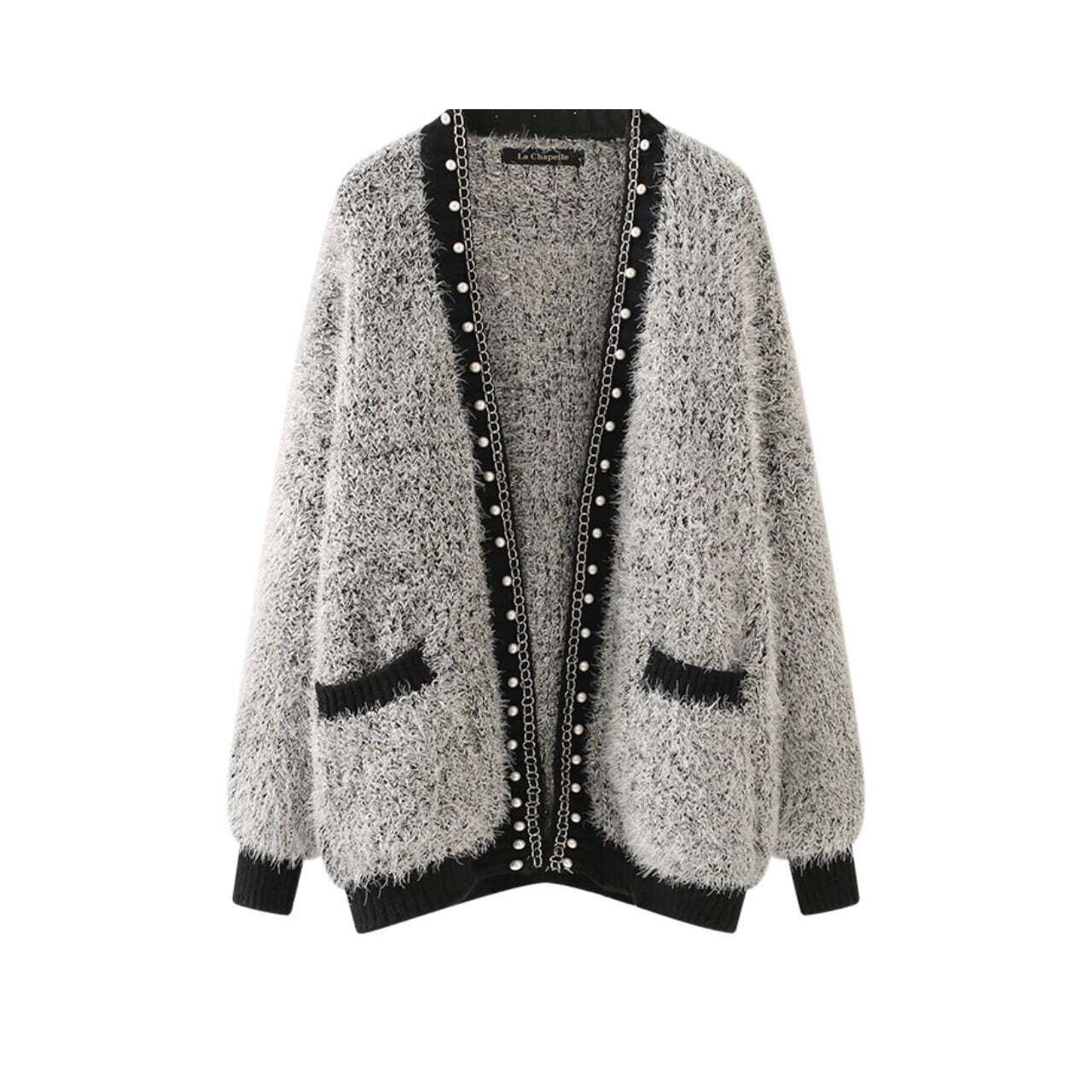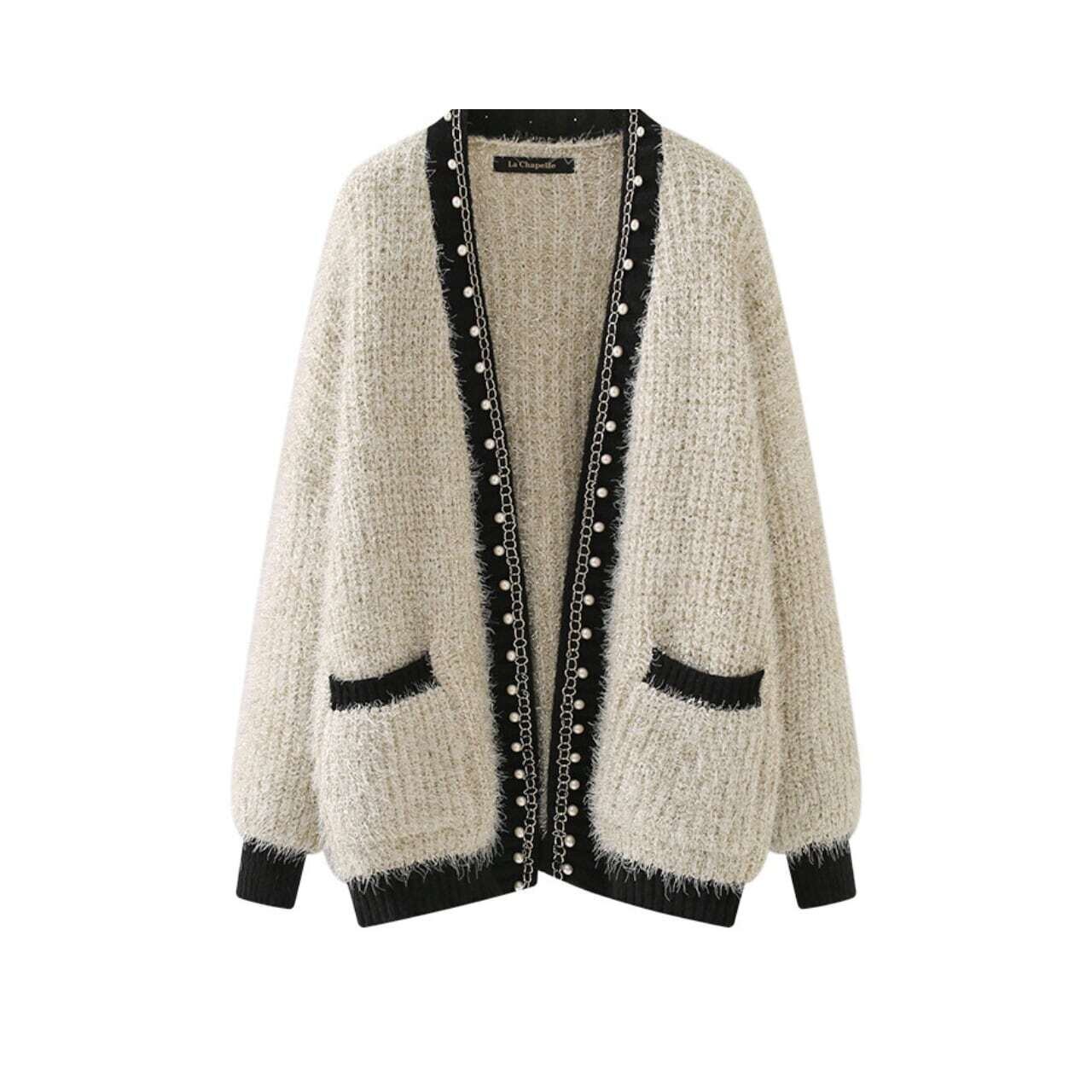 Bicolor shaggy knit pearl cardigan バイカラーシャギーニットパールカーディガン