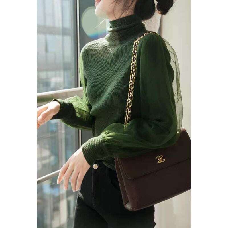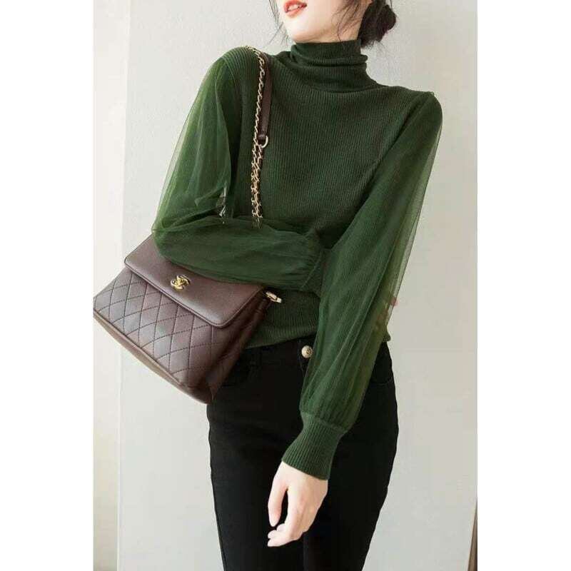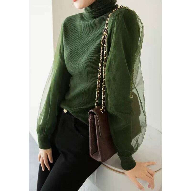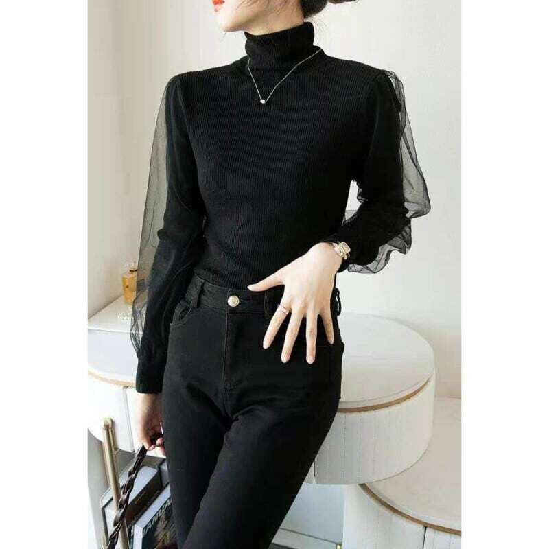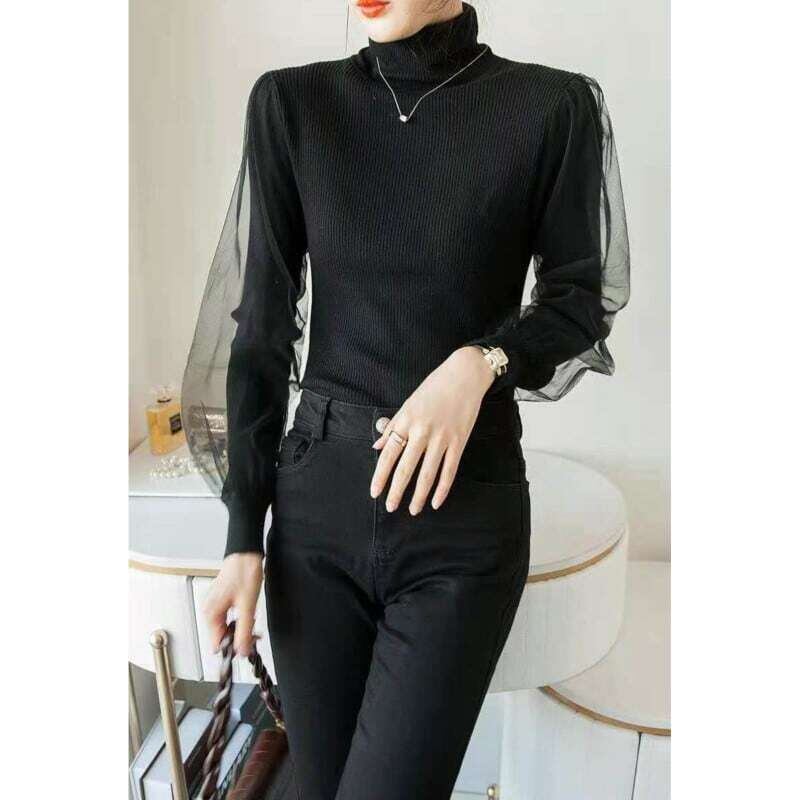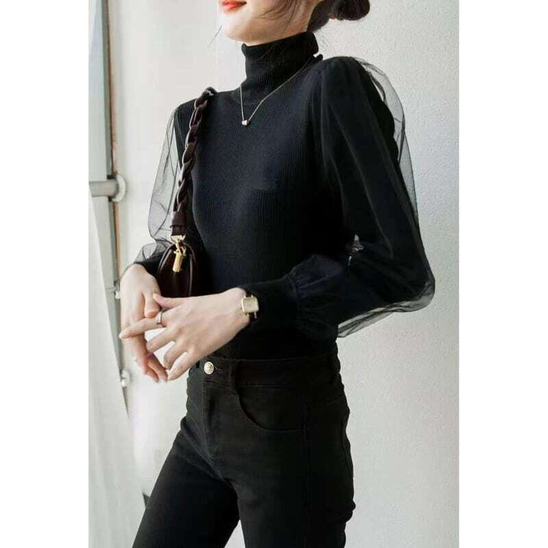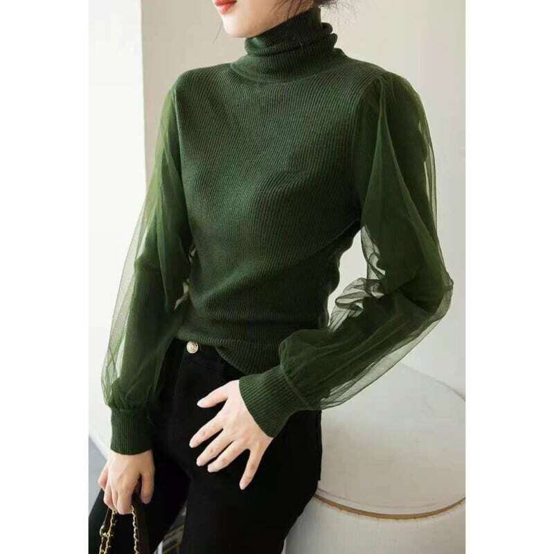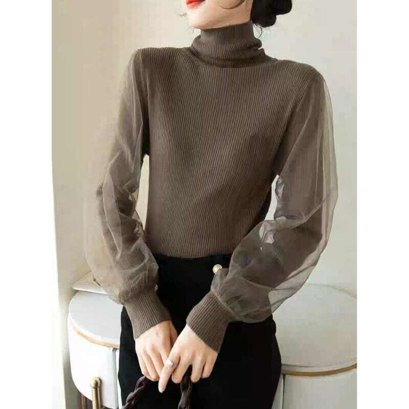 Tulle sleeve high-neck knit タートルネックチュールニット
