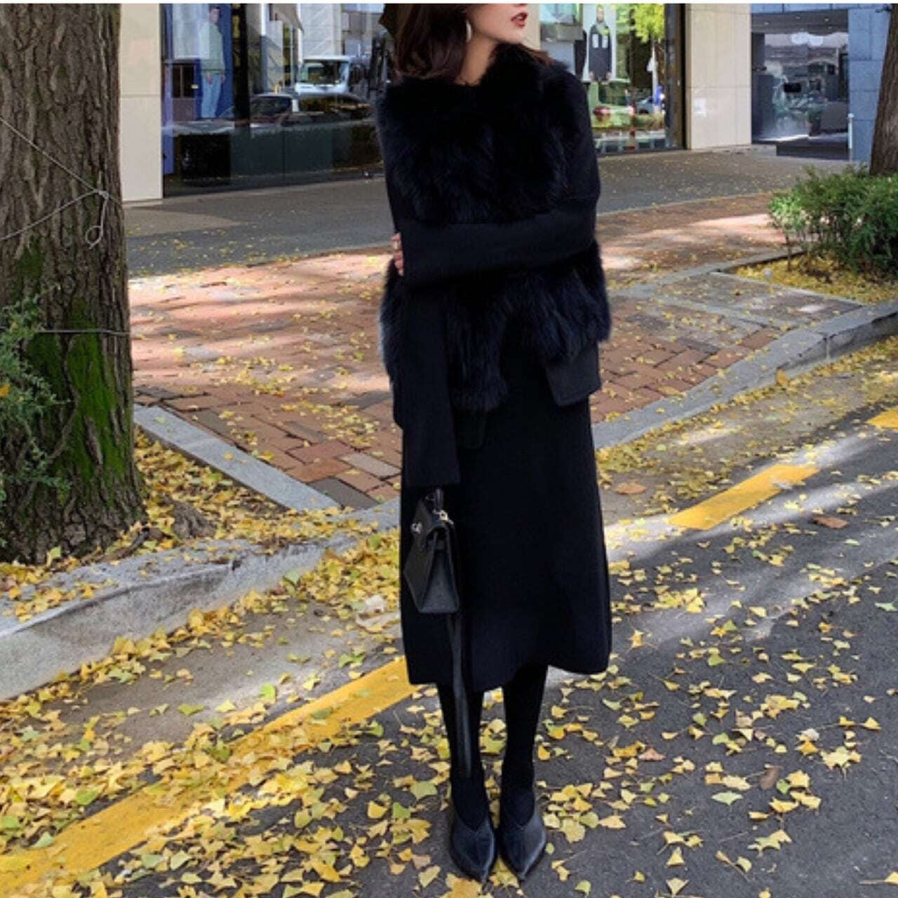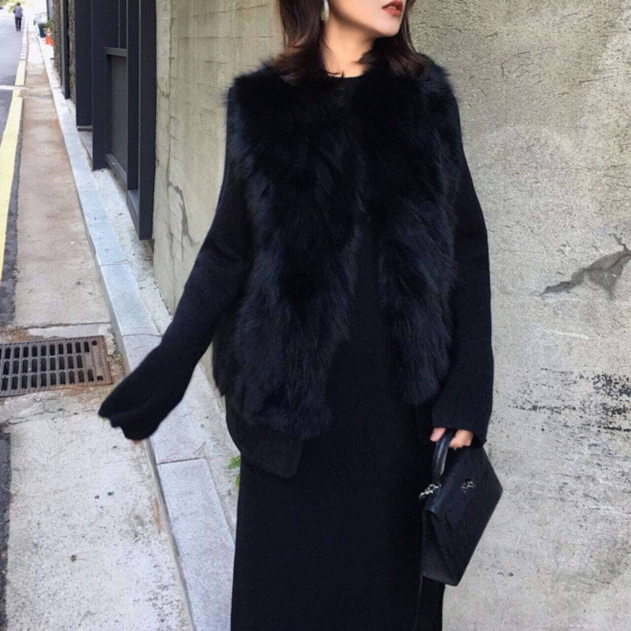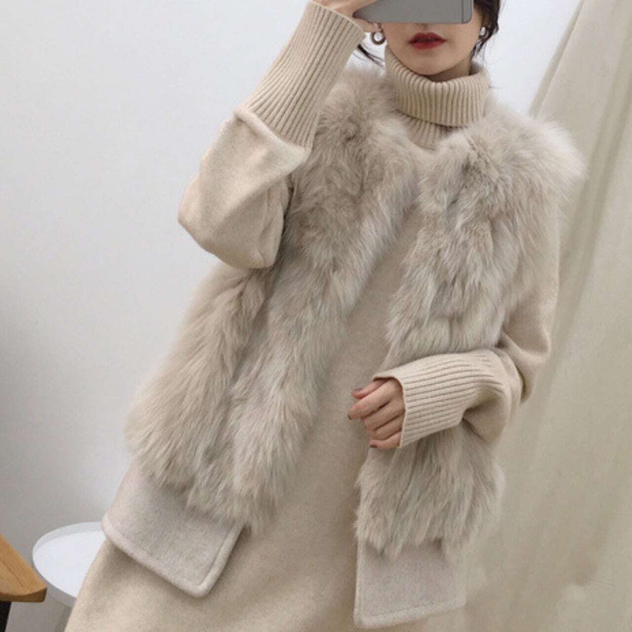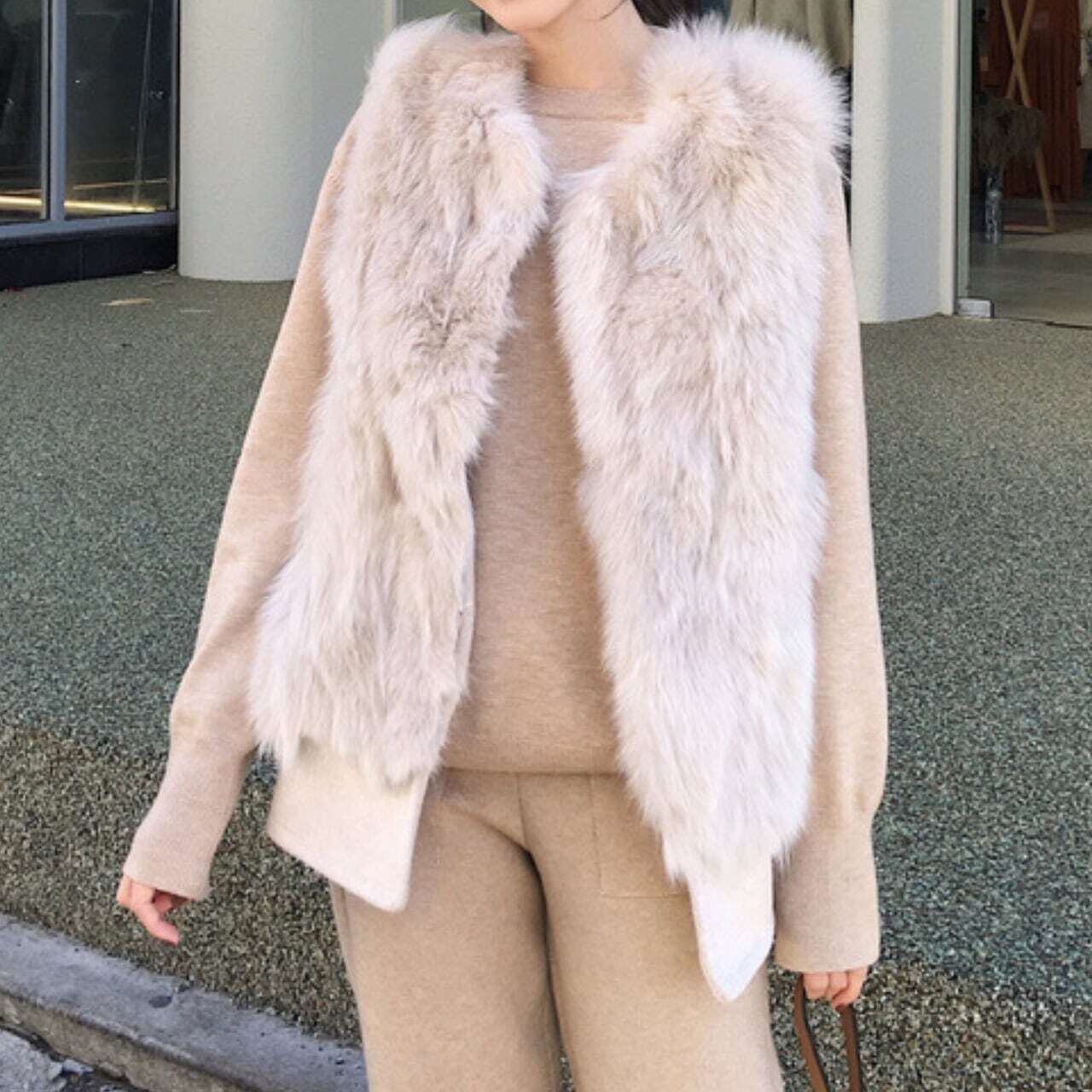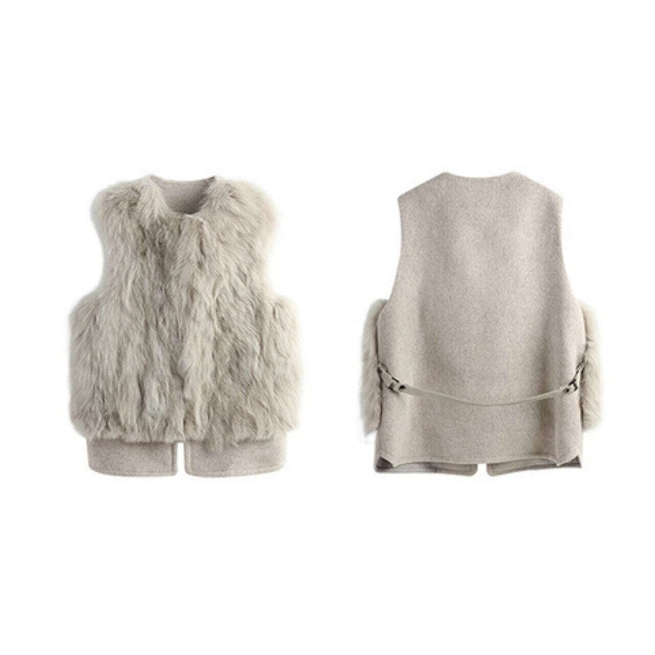 Back belt fake fur vest バックベルトフェイクファーベスト