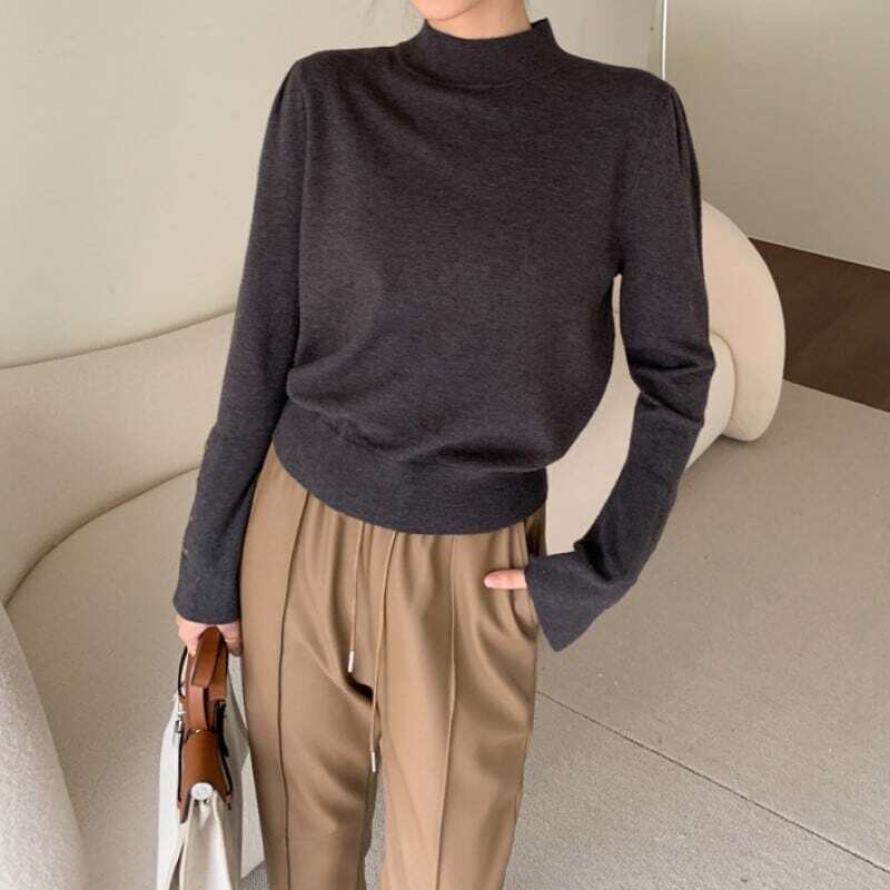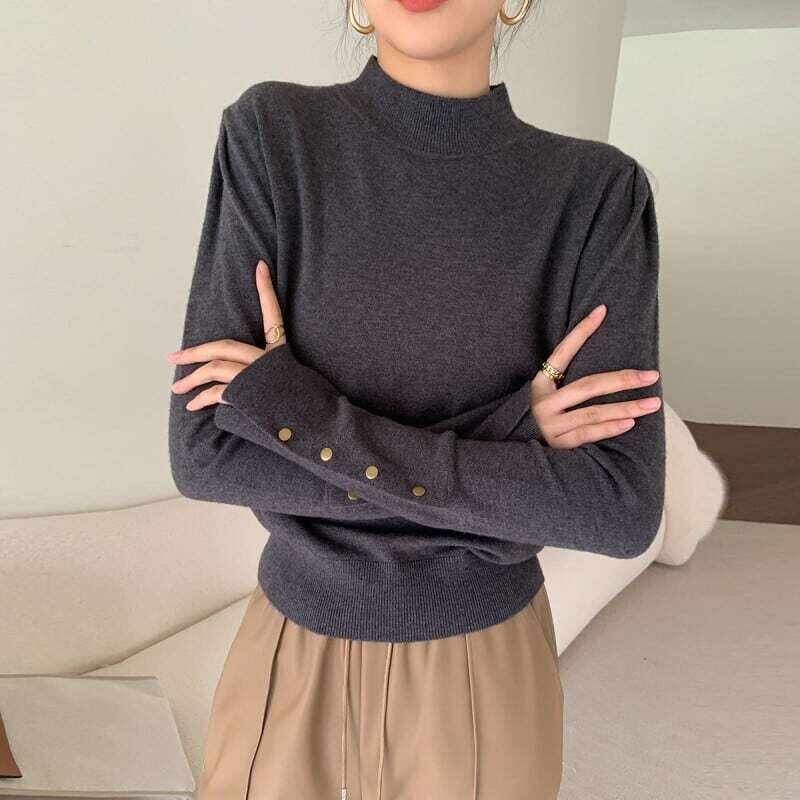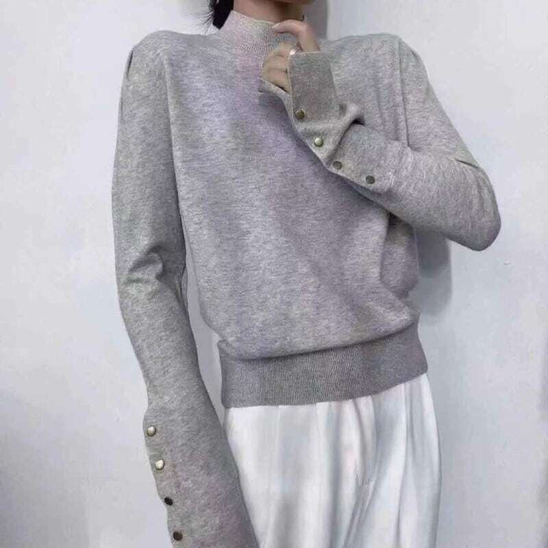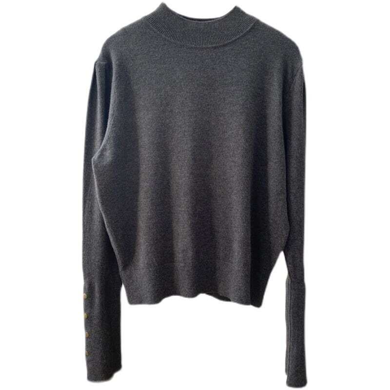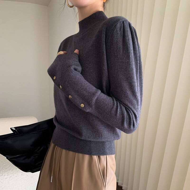 High neck loose button sleeve knit ハイネックルーズボタンスリーブニット