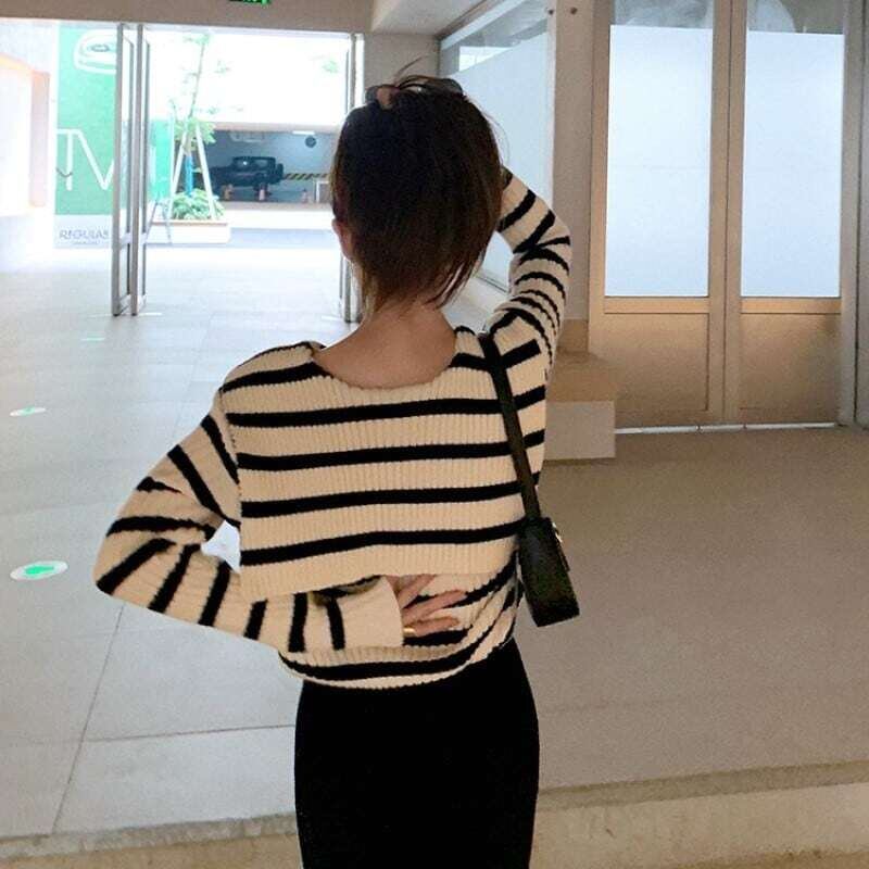 Striped retro layered sweater ストライプレトロレイヤードセーター