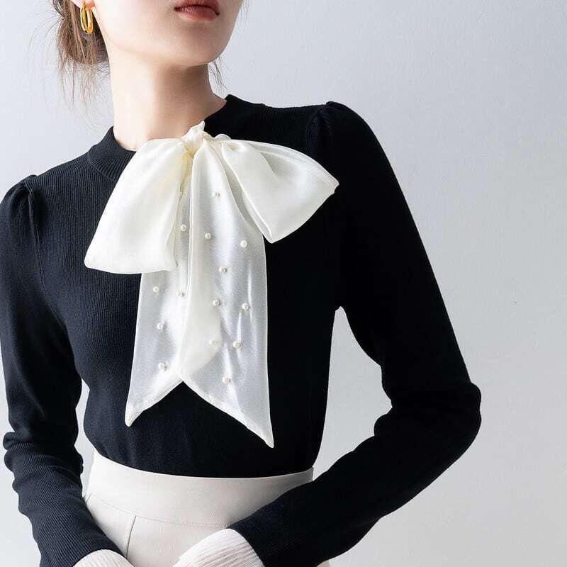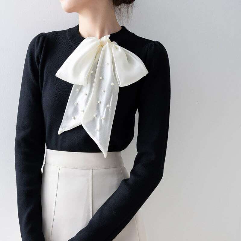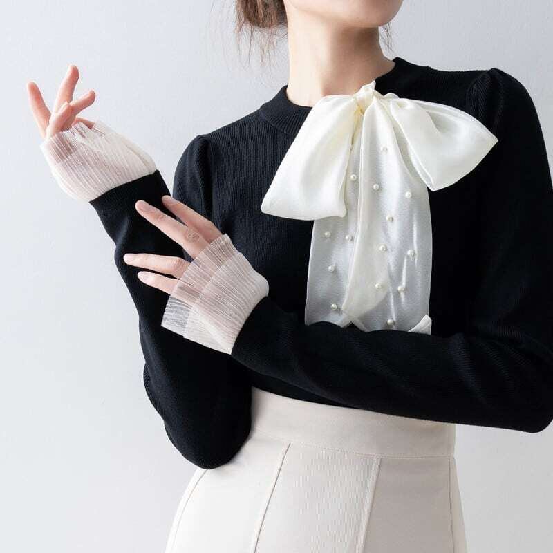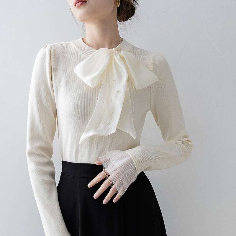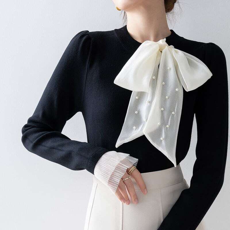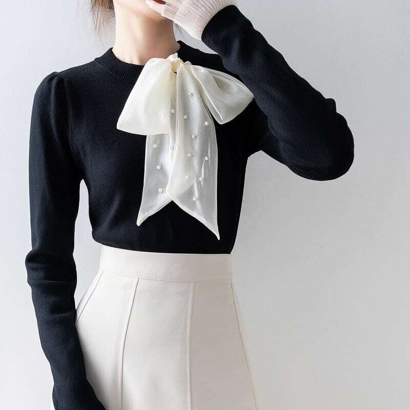 Pearl ribbon slim knit sweater パールリボンスリムニットセーター