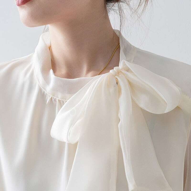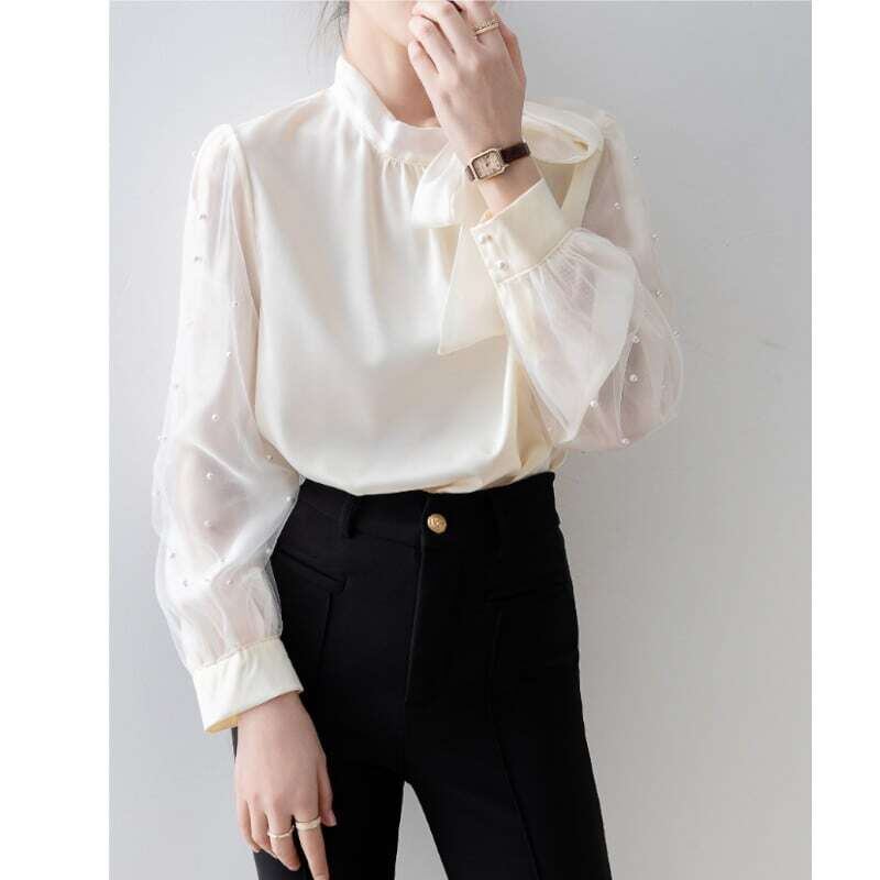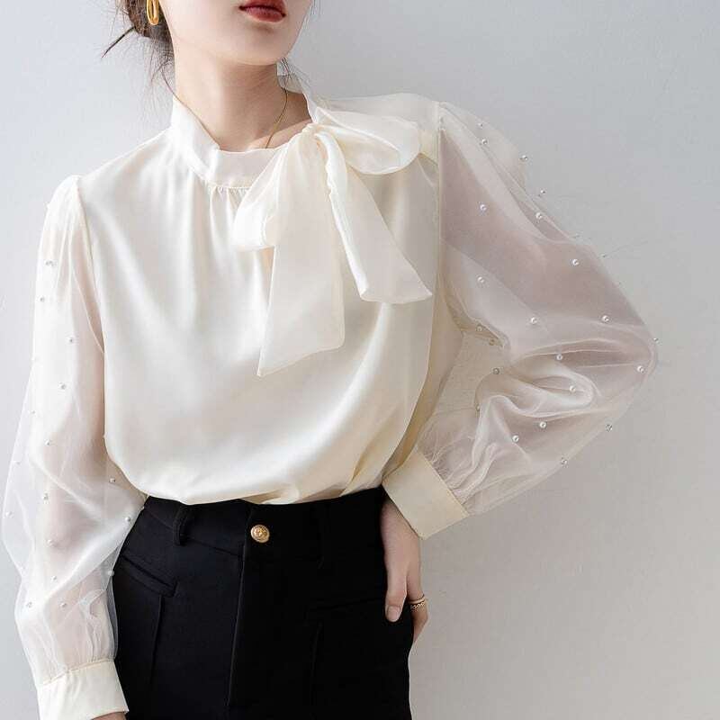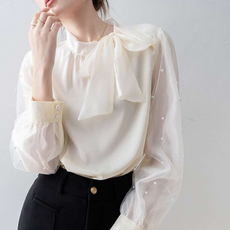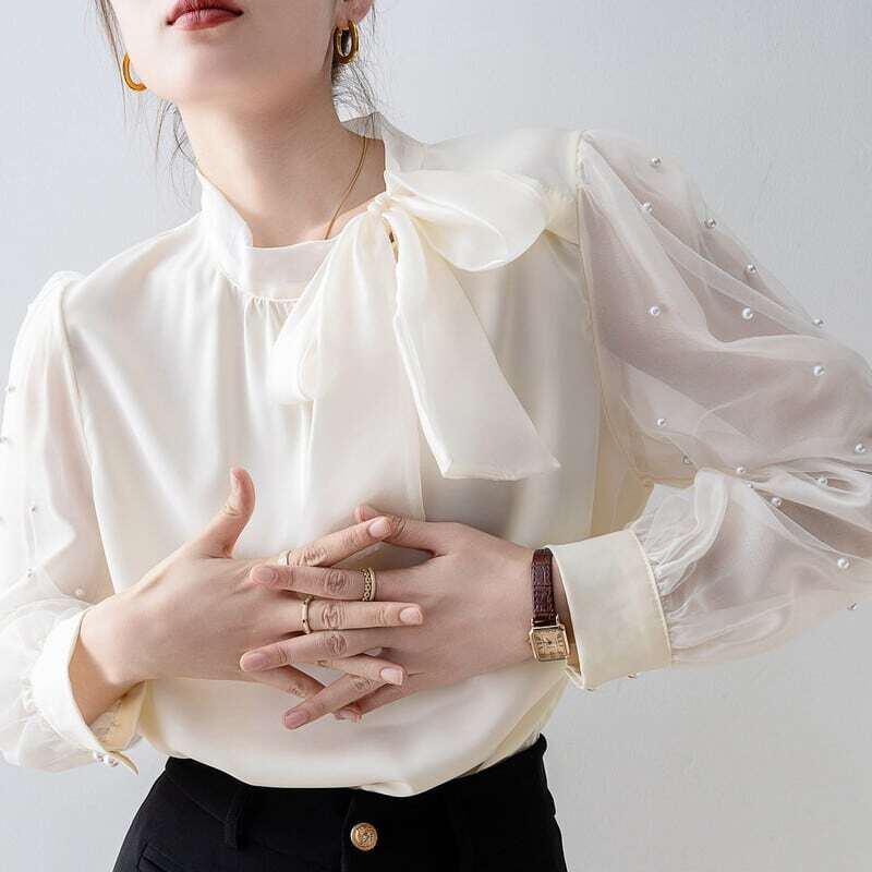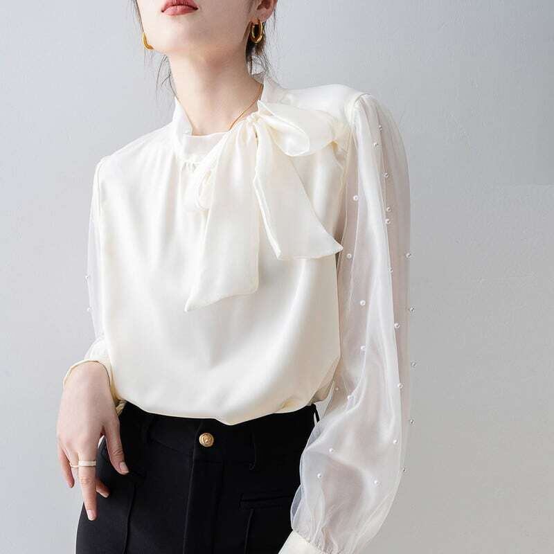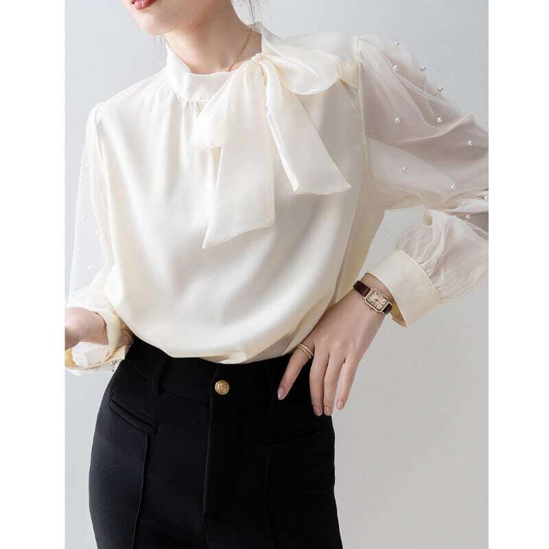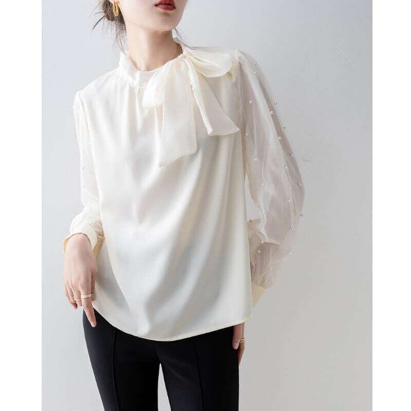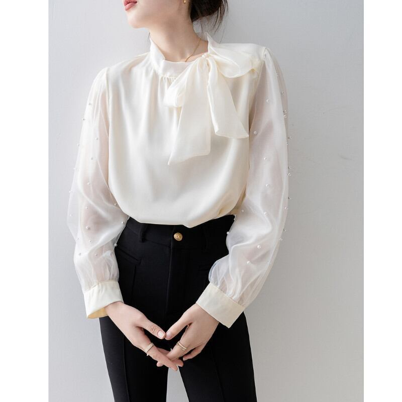 Pearl sleeve ribbon blouse パールスリーブリボンブラウス
