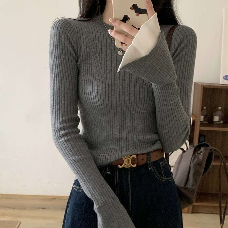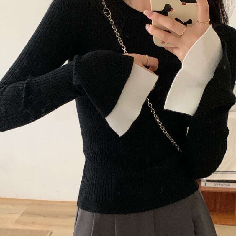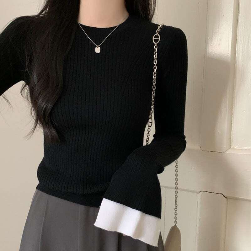 Bell sleeve rib knit ベルスリーブリブニット