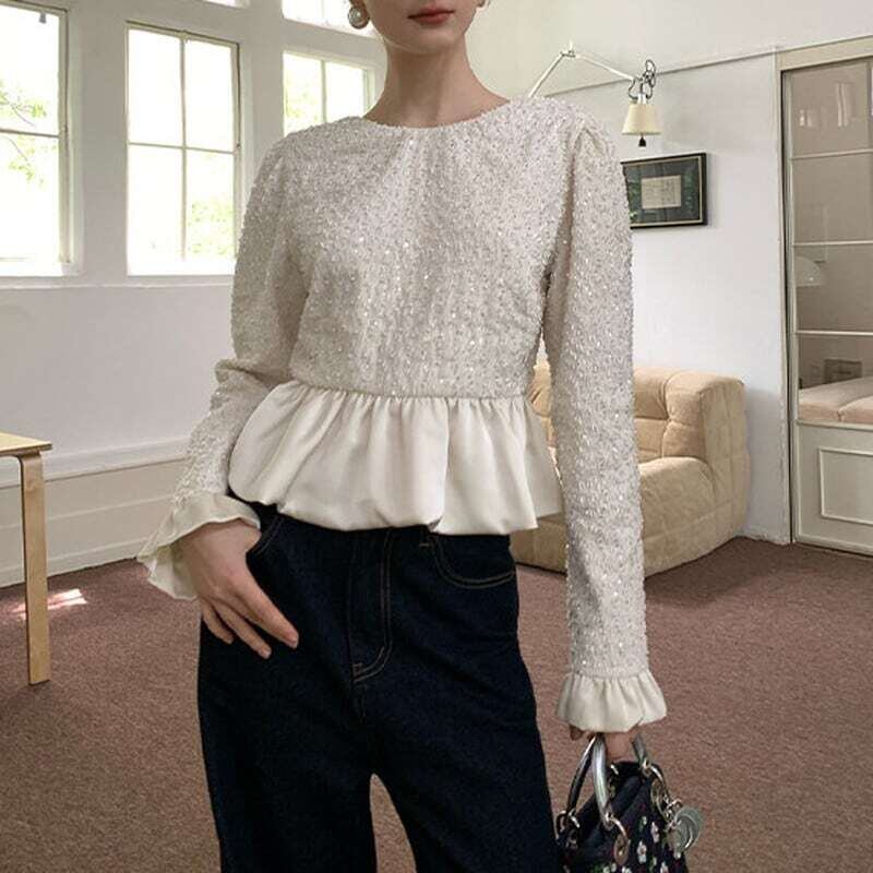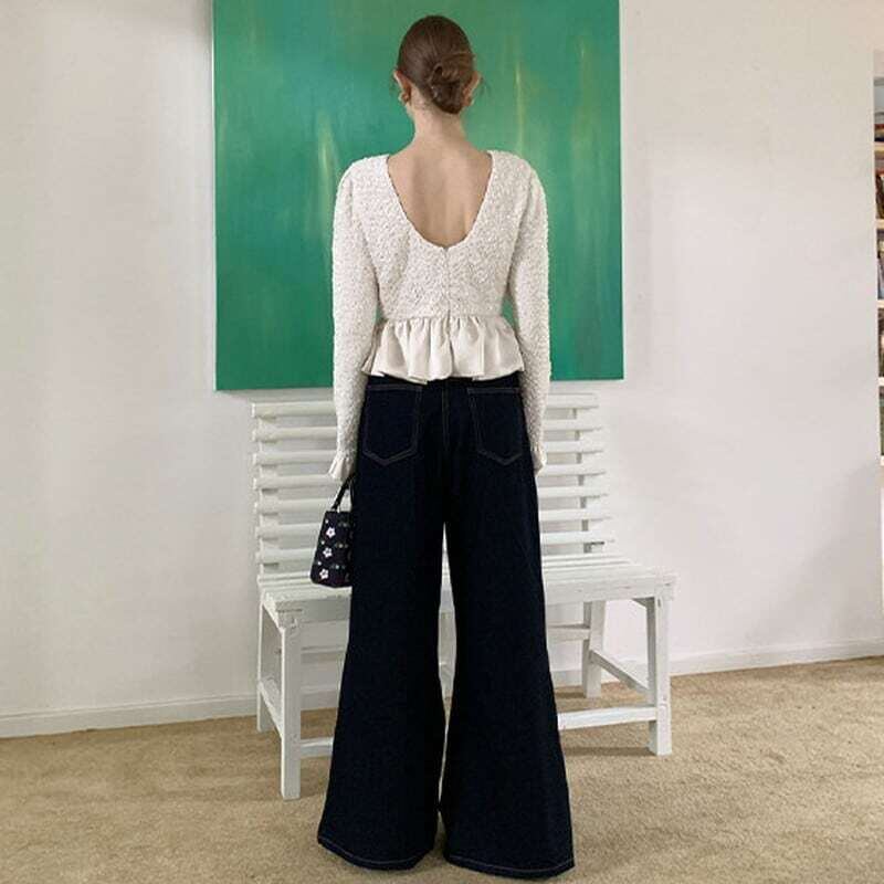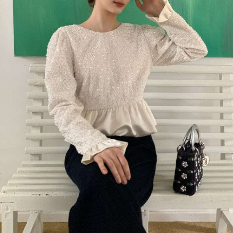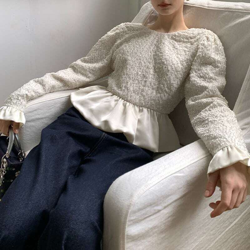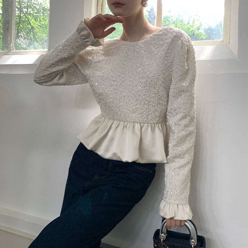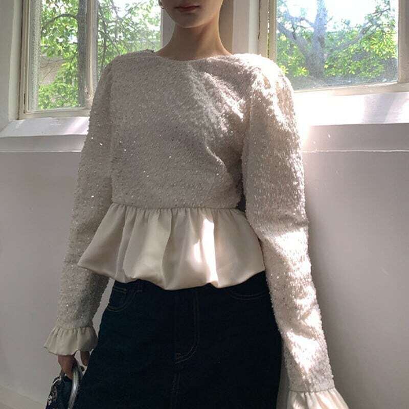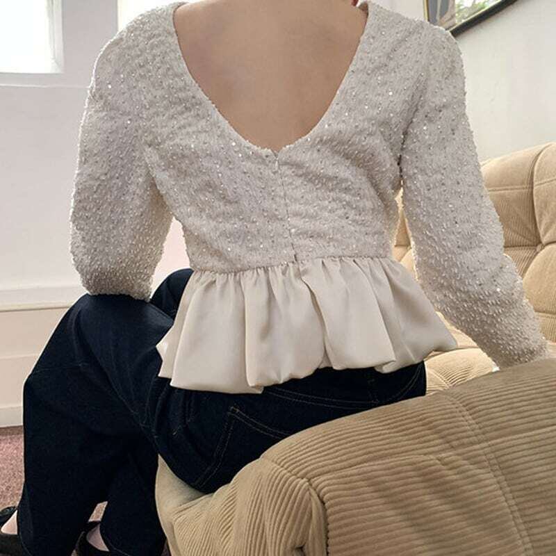 Pearl decorative peplum tops パールデコラティブペプラムトップス