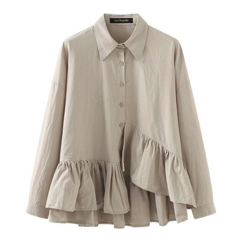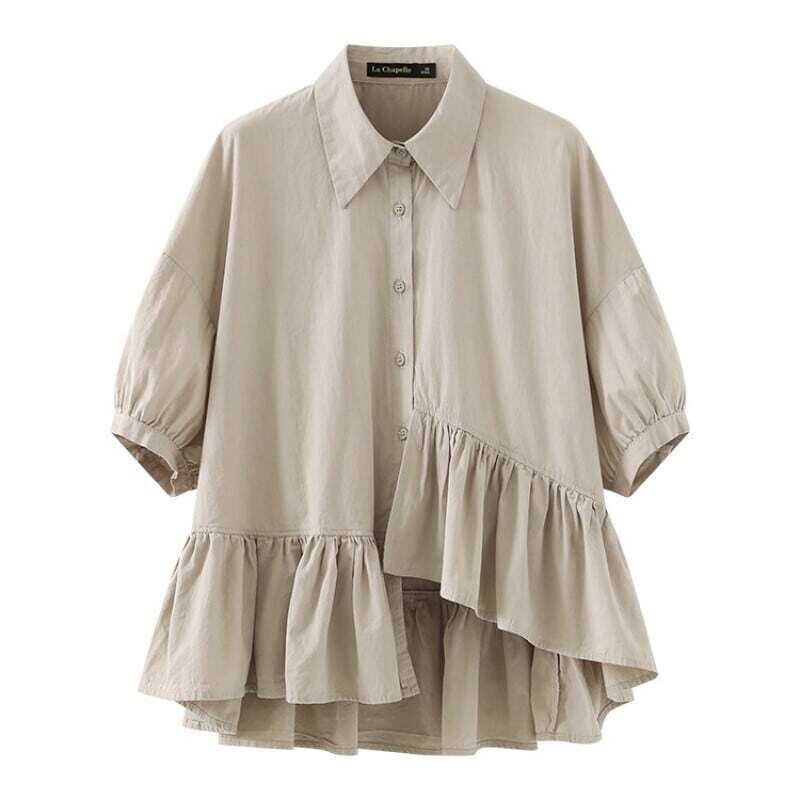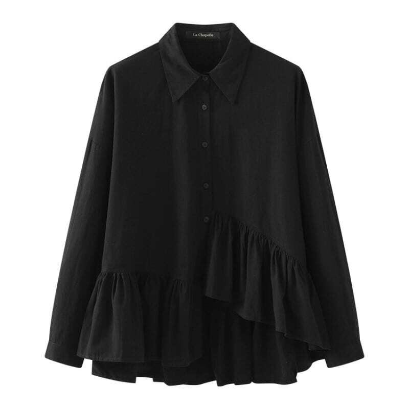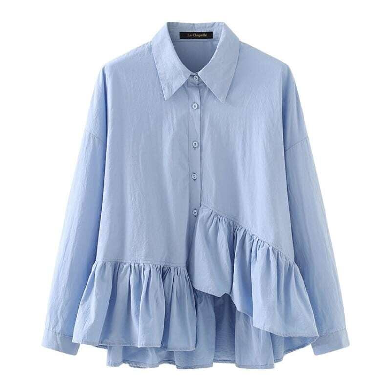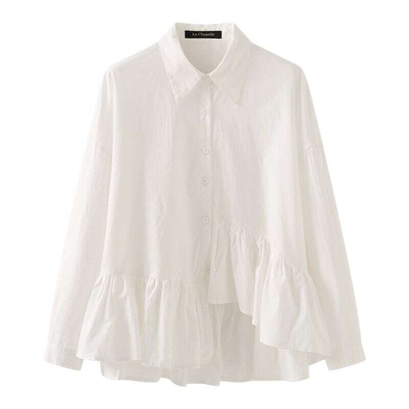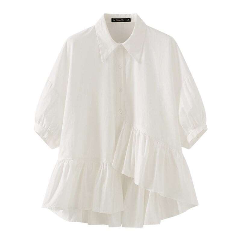 Asymmetric frill cotton blouse アシンメトリーフリルコットンブラウス