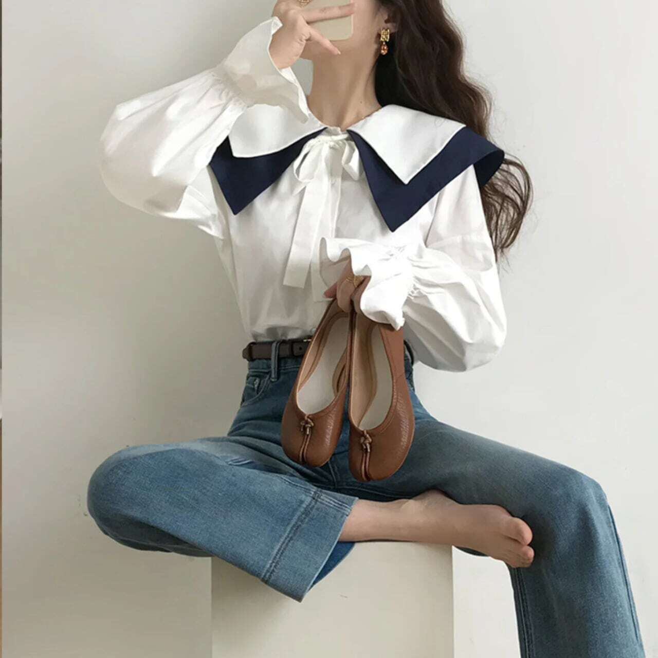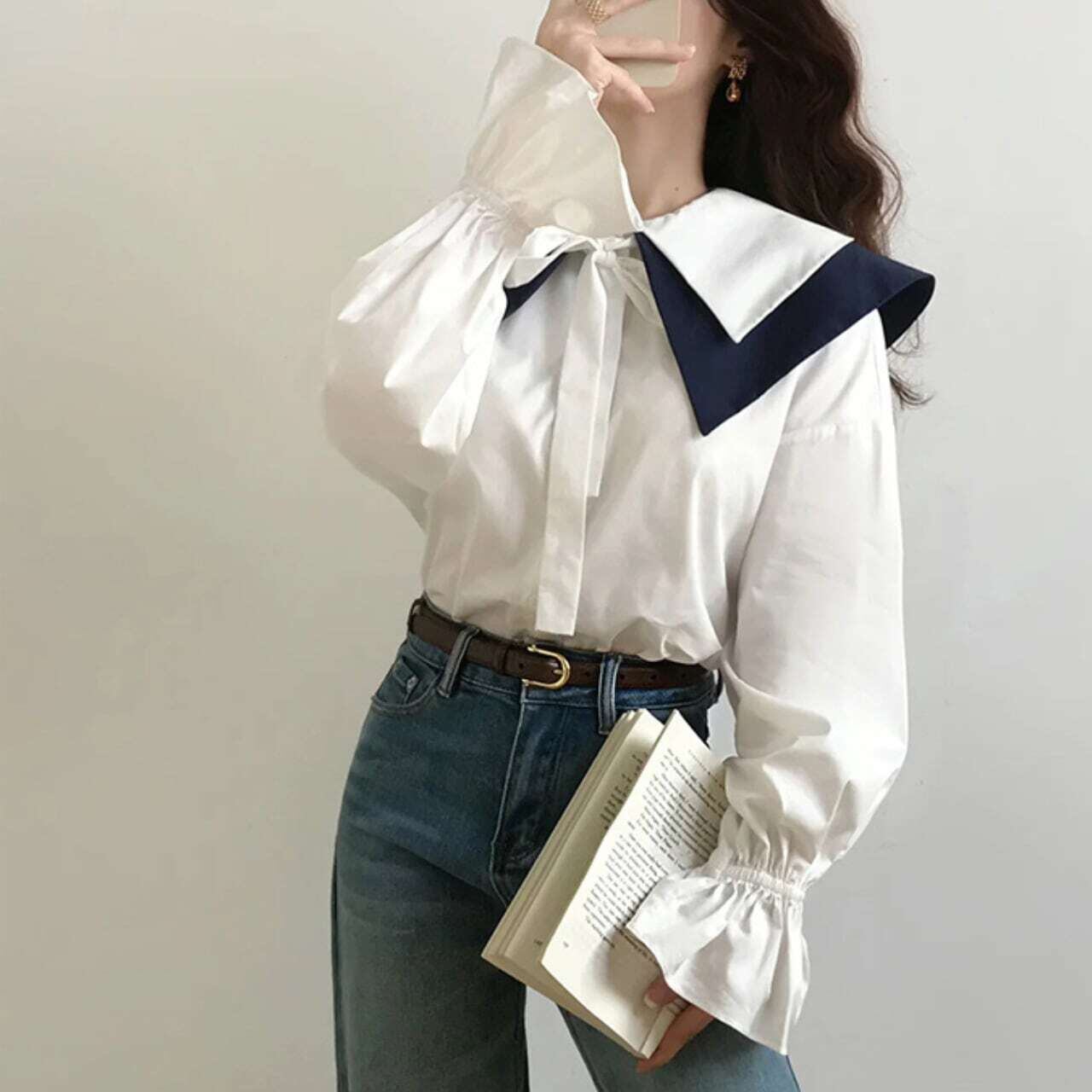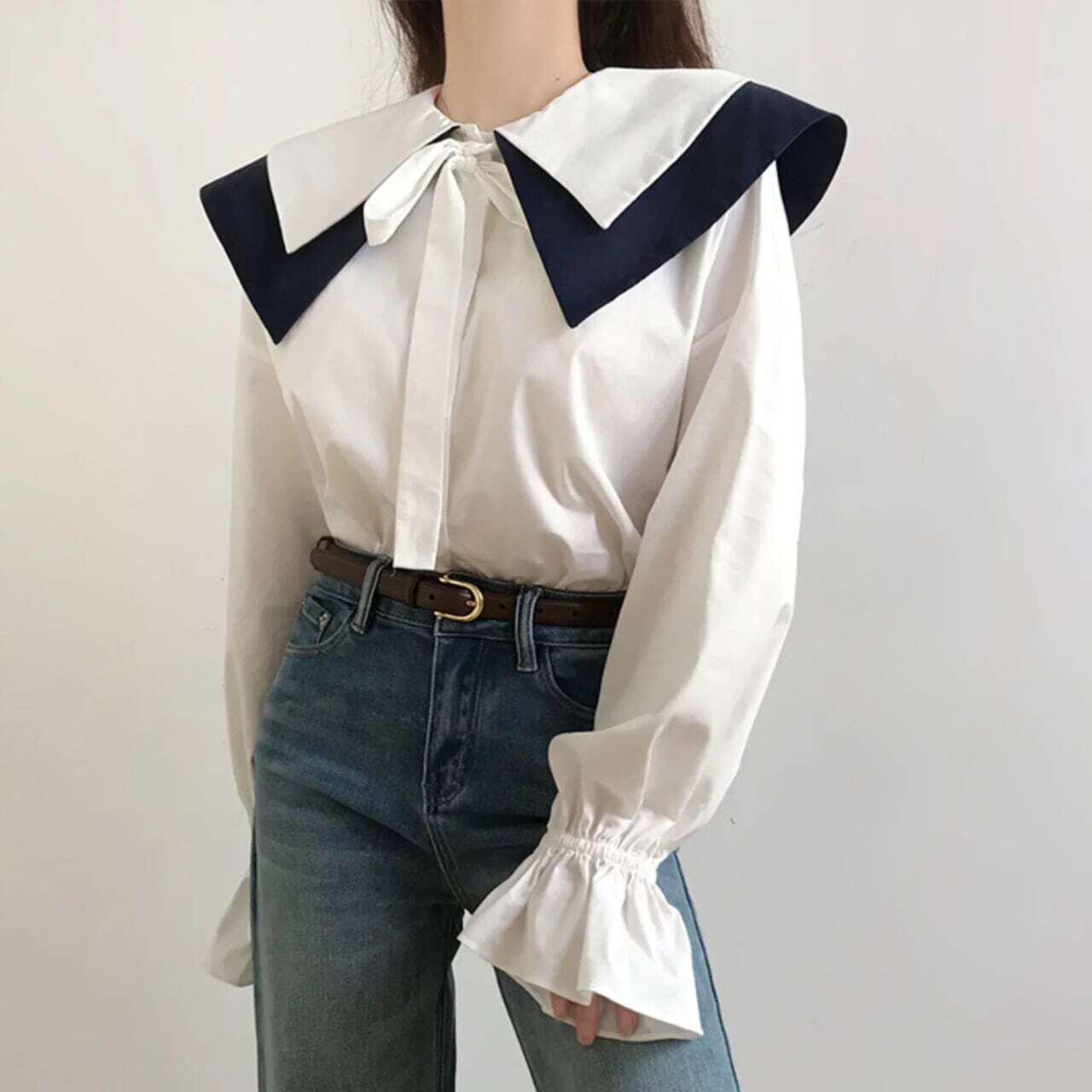 Double collar front ribbon shirt ダブルカラーフロントリボンシャツ