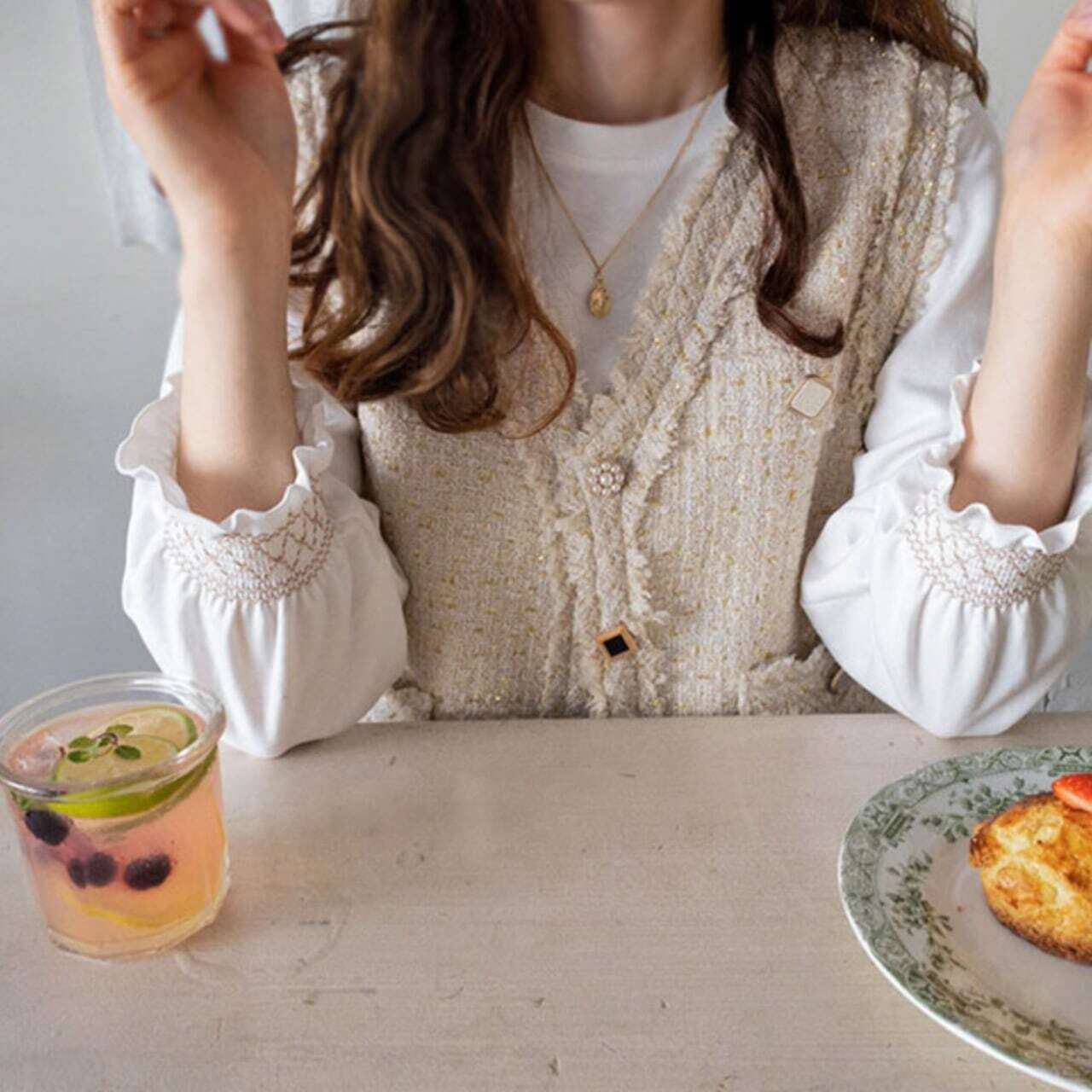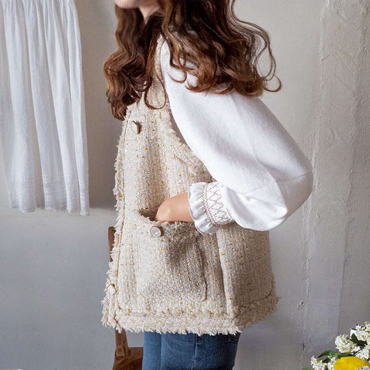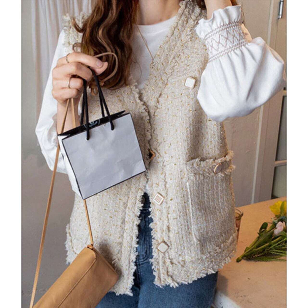 Decorative button tweed gilet デコラティブボタンツイードジレ