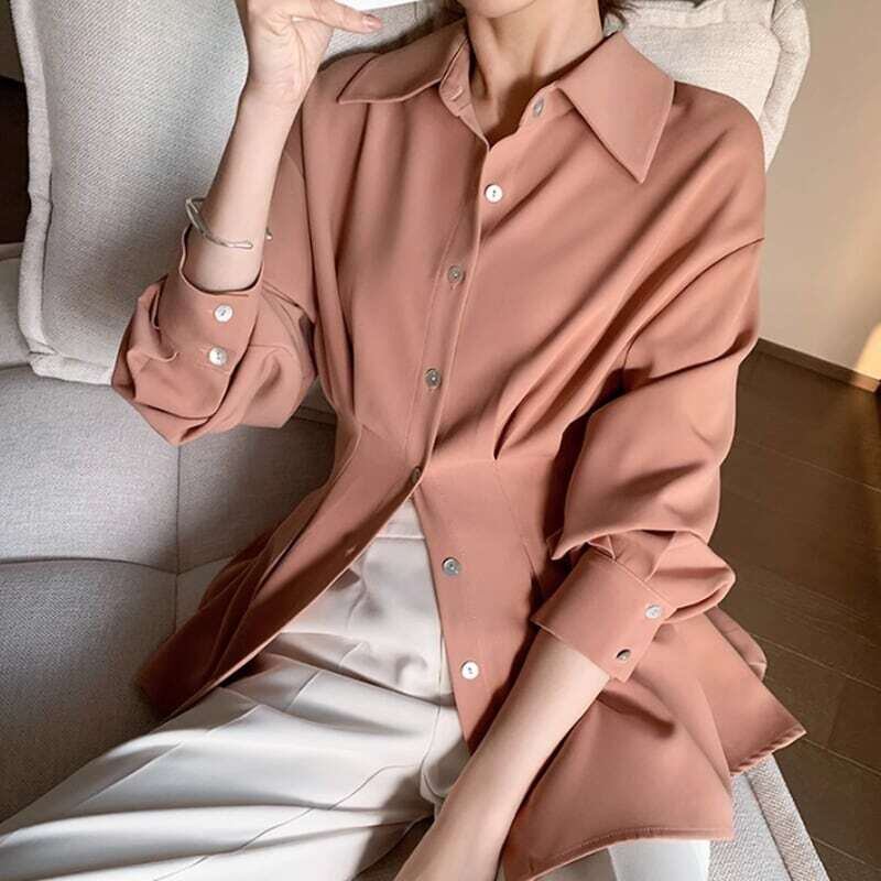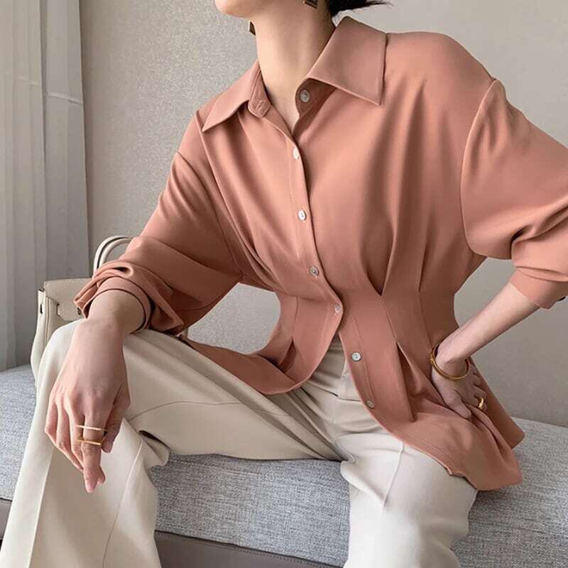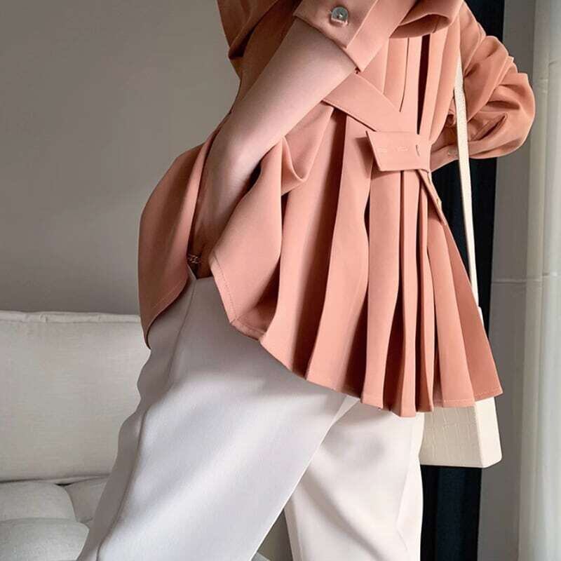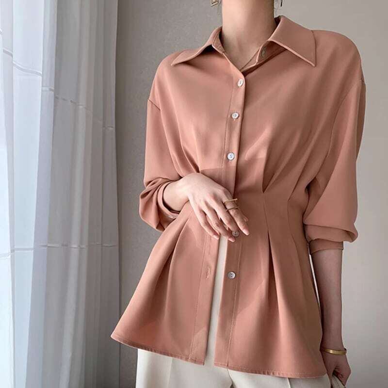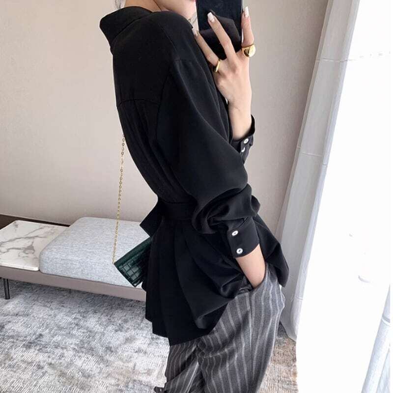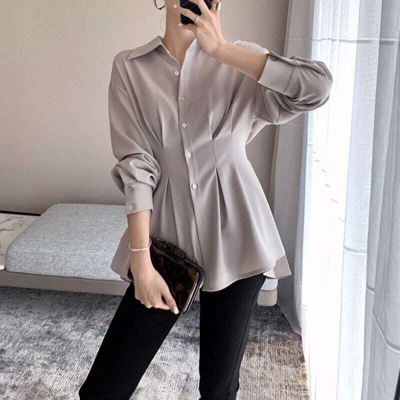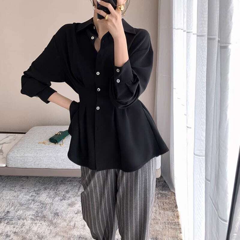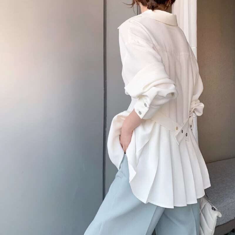 Back pleated high waist slim fit shirt バックプリーツハイウエストスリムフィットシャツ