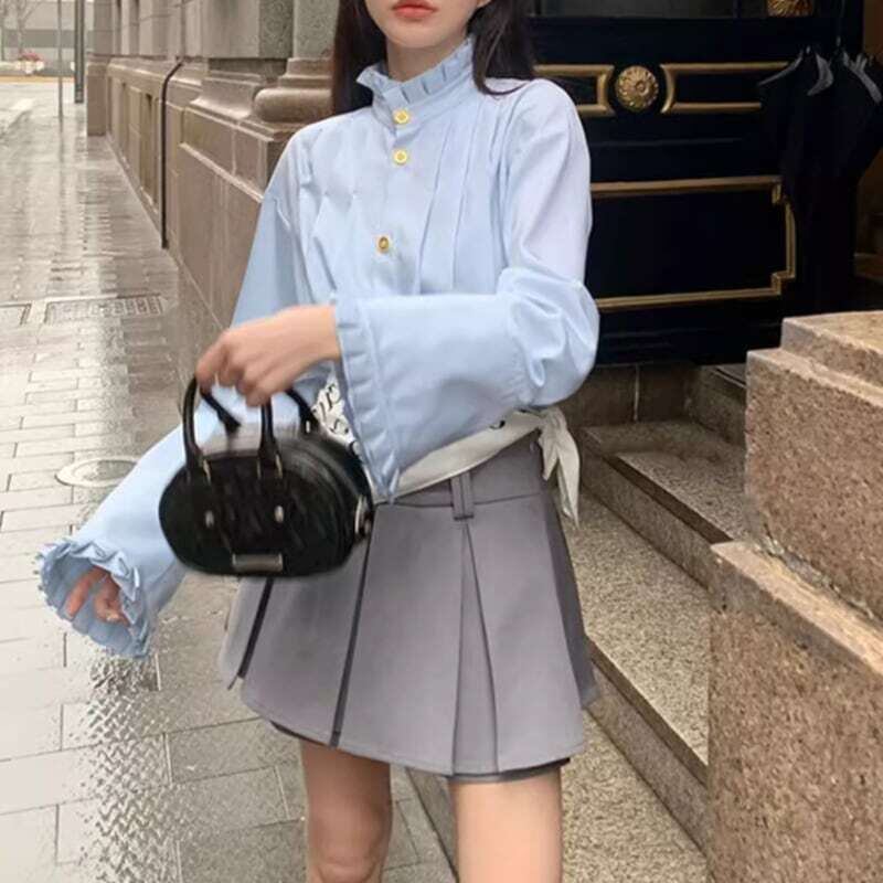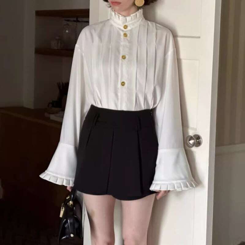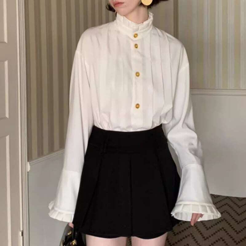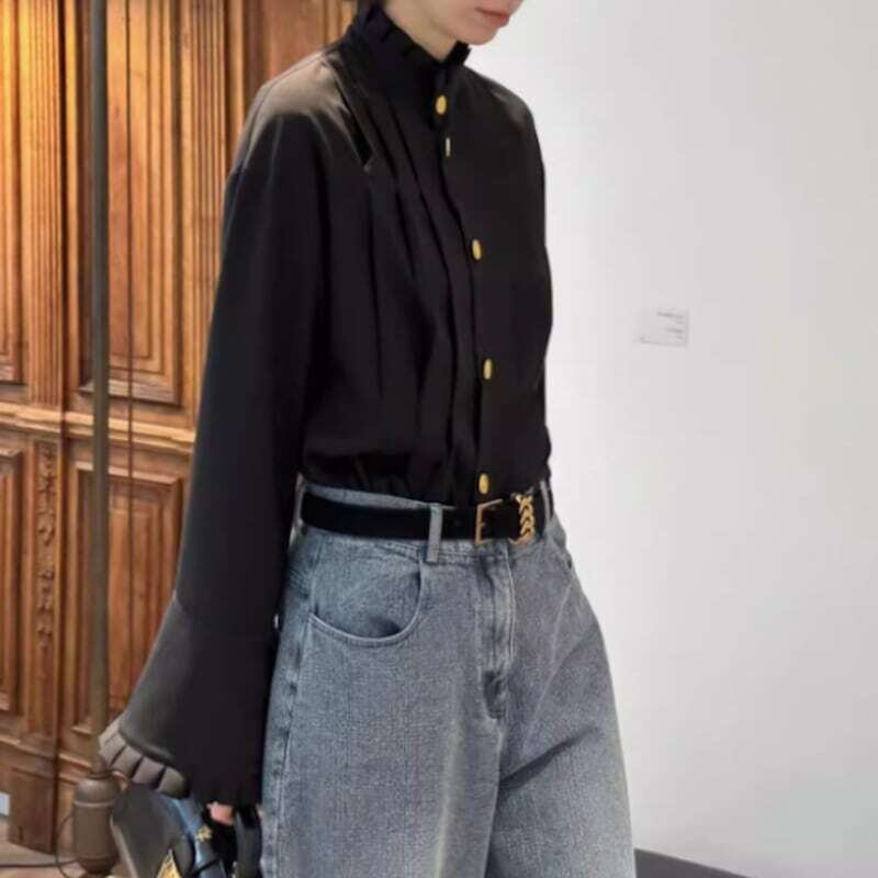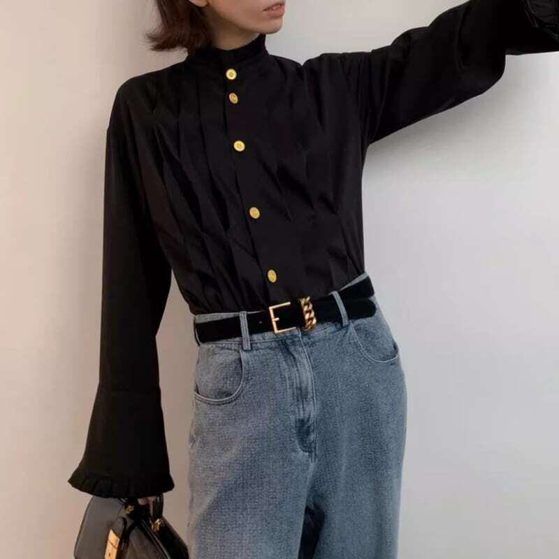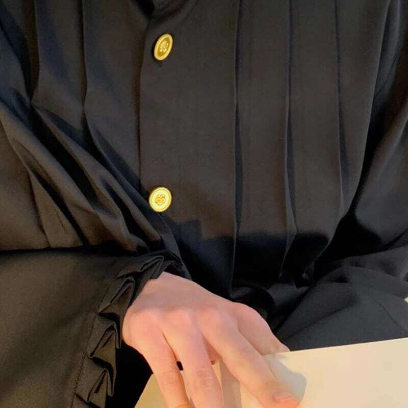Gold button pleated design shirt ゴールドボタンプリーツデザインシャツ