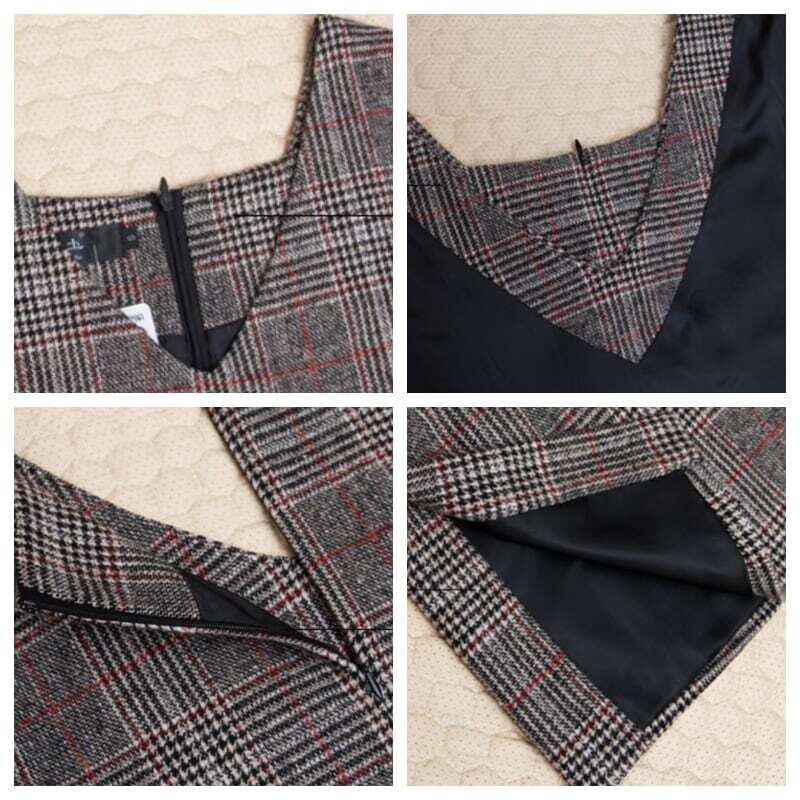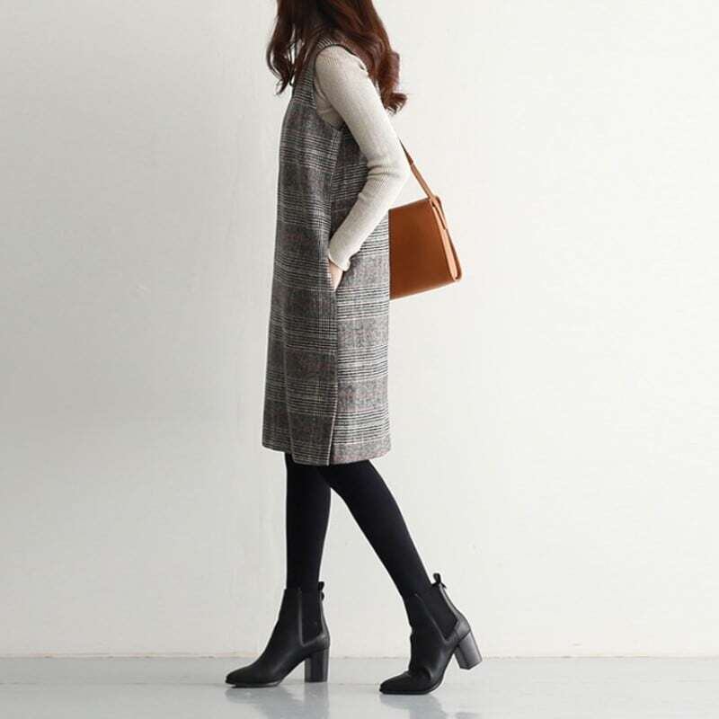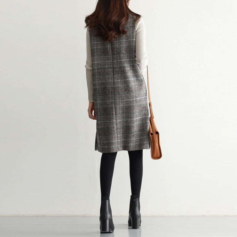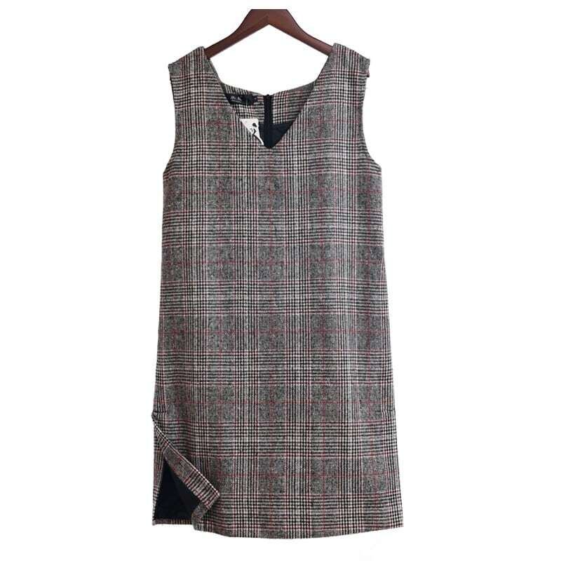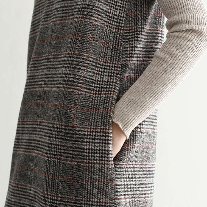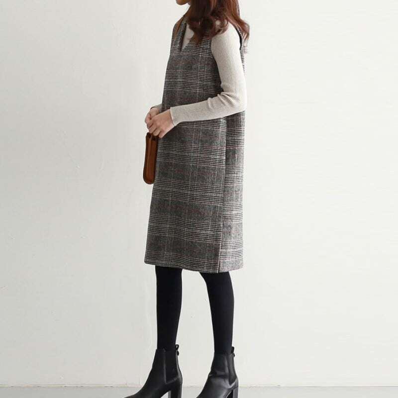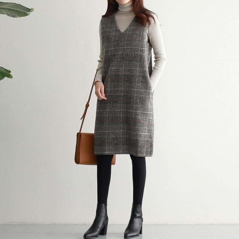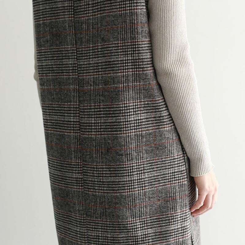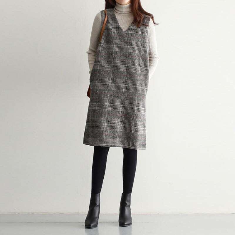 V neck plaid jumper dress Vネックチェックジャンパードレス