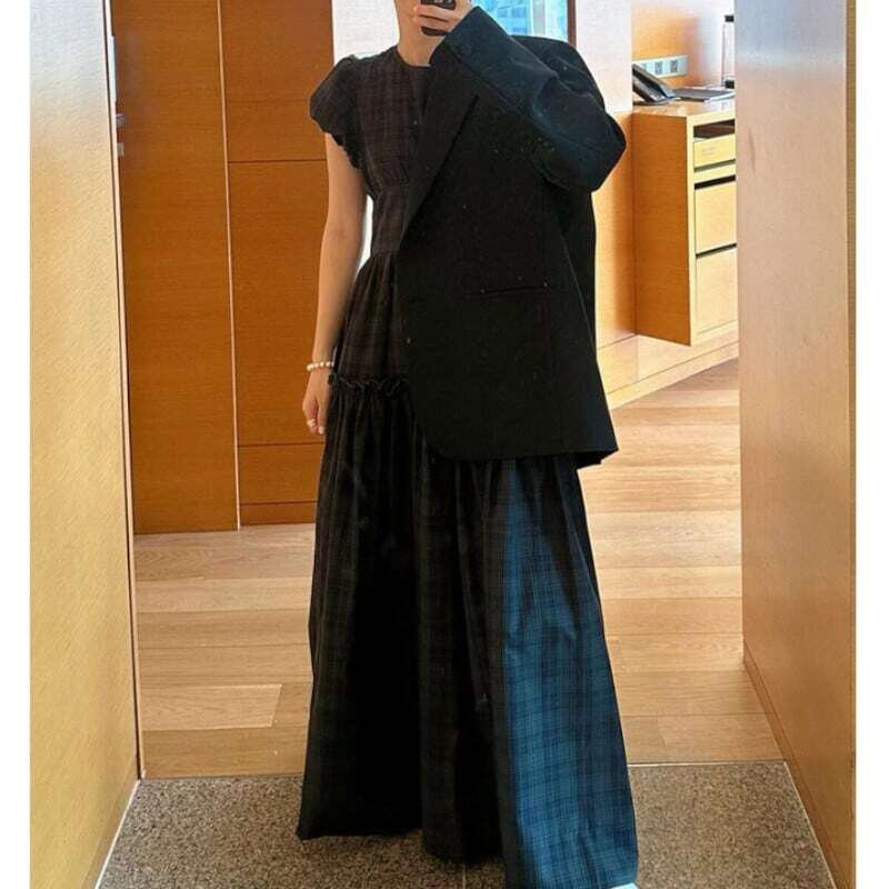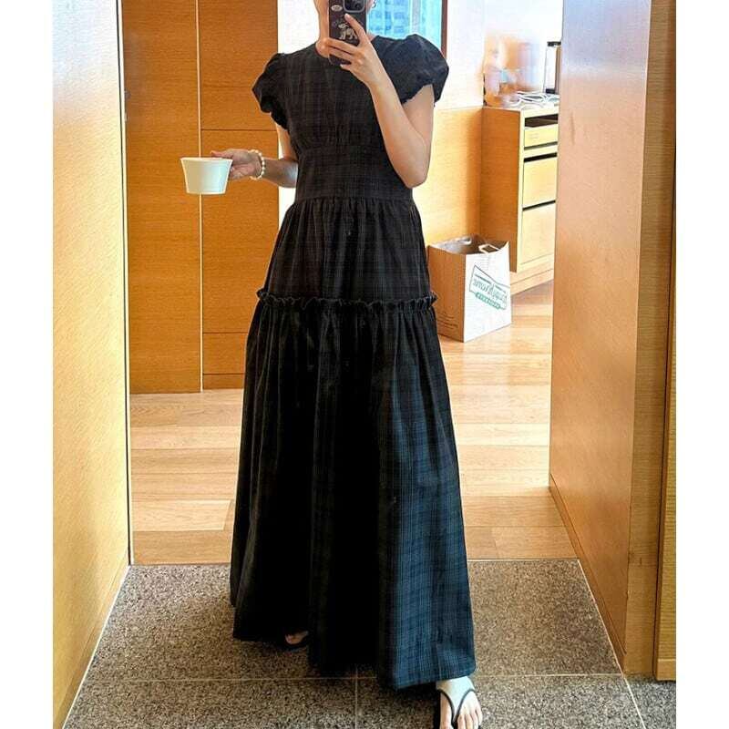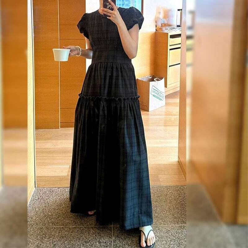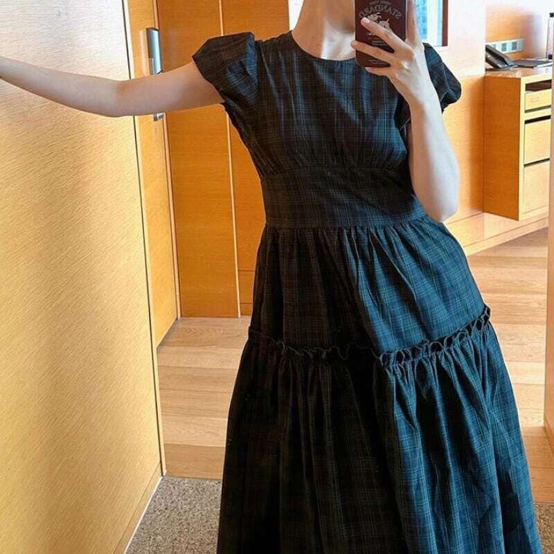 Puff sleeve tartan check dress パフスリーブタータンチェックワンピース