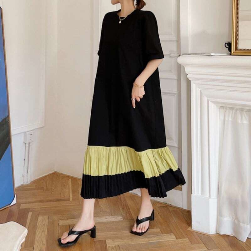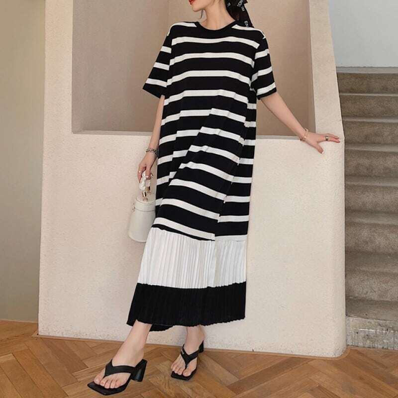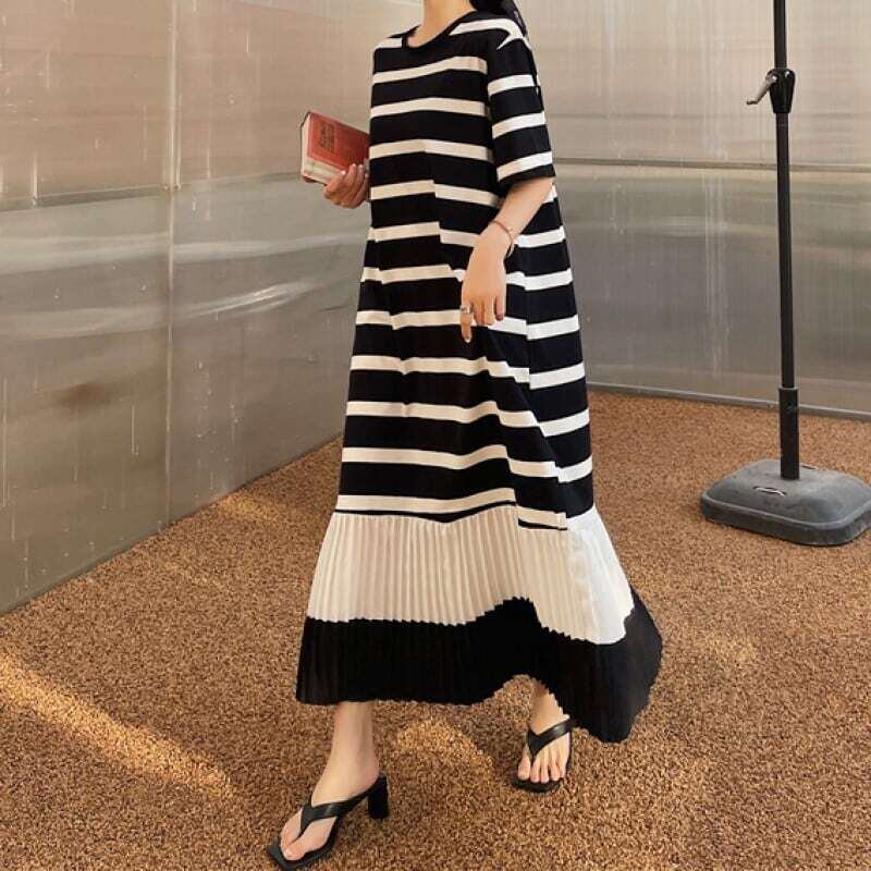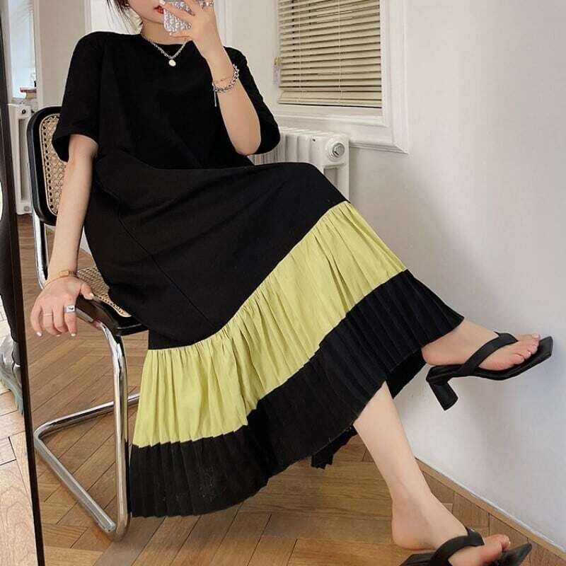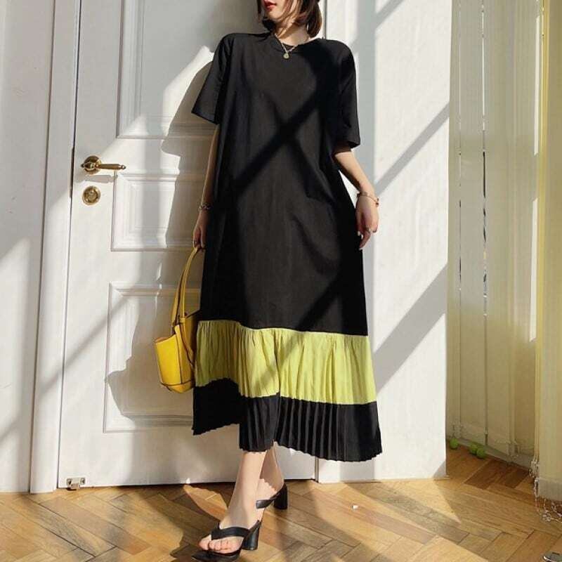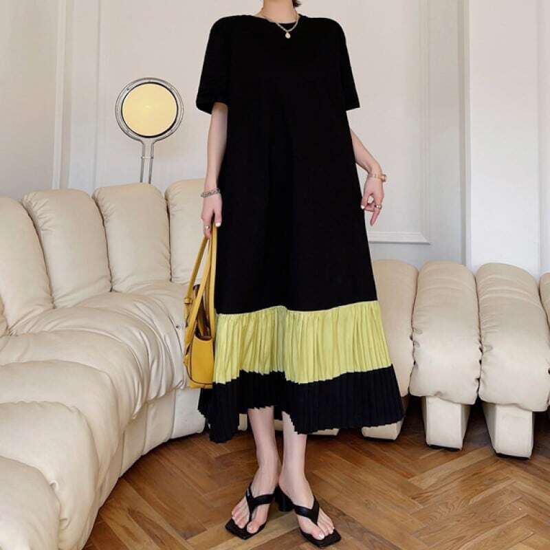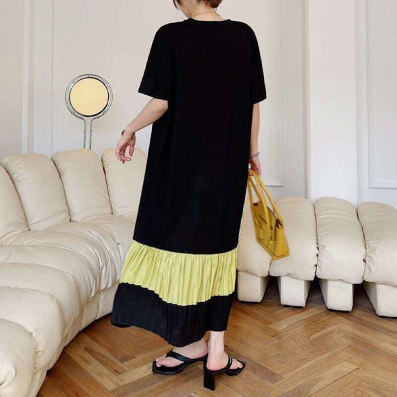 Hem pleated T-shirt long dress ヘムプリーツTシャツロングワンピース