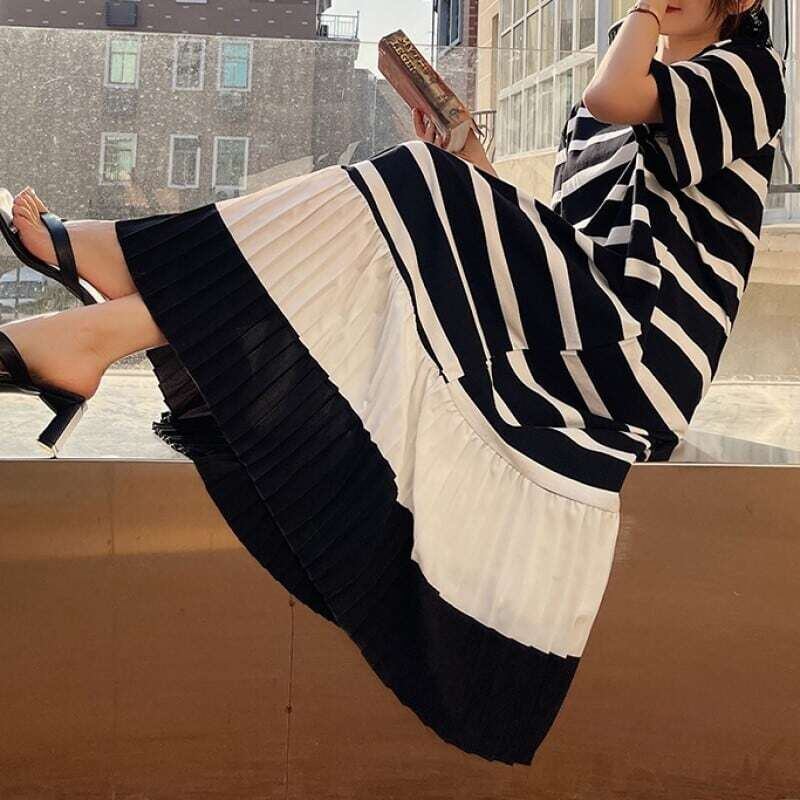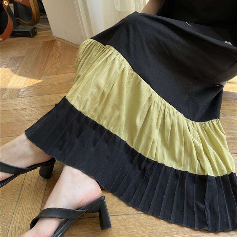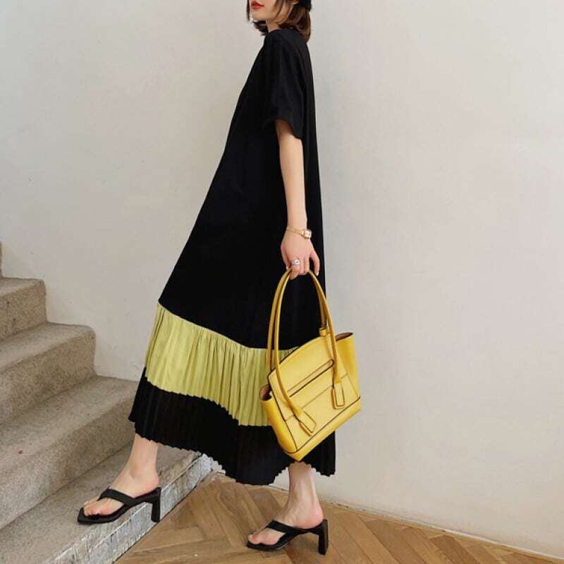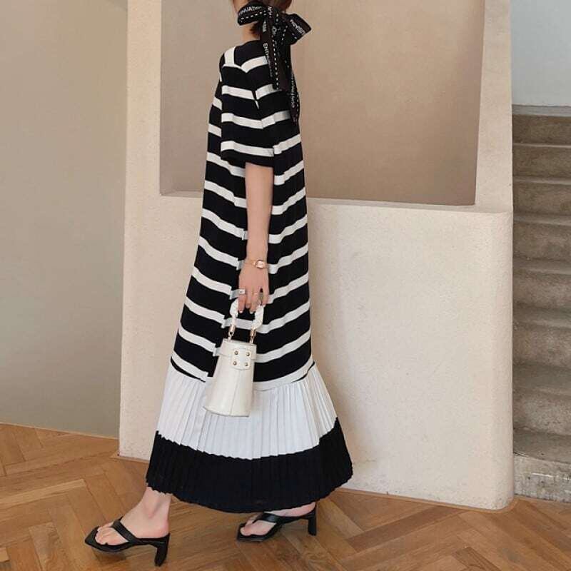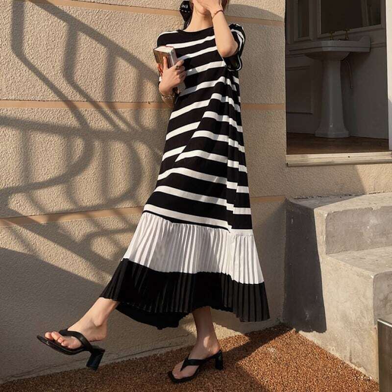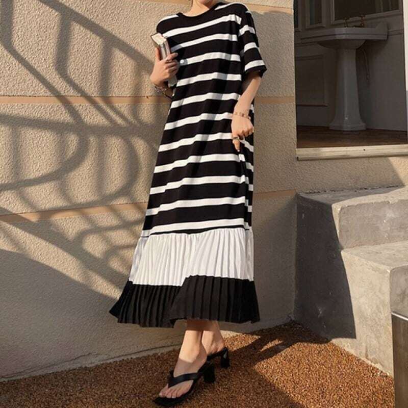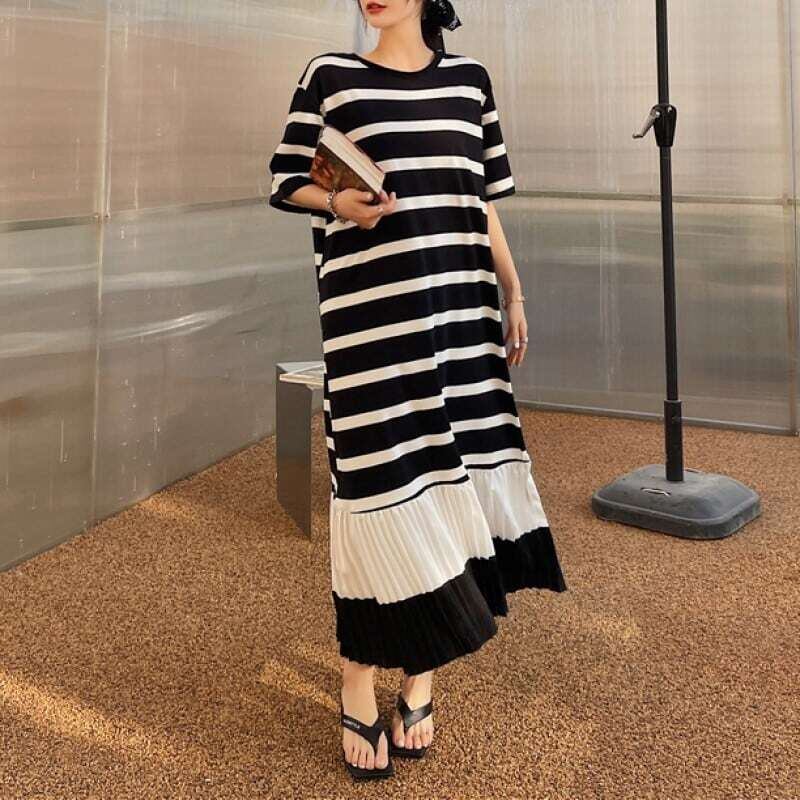 Hem pleated T-shirt long dress ヘムプリーツTシャツロングワンピース